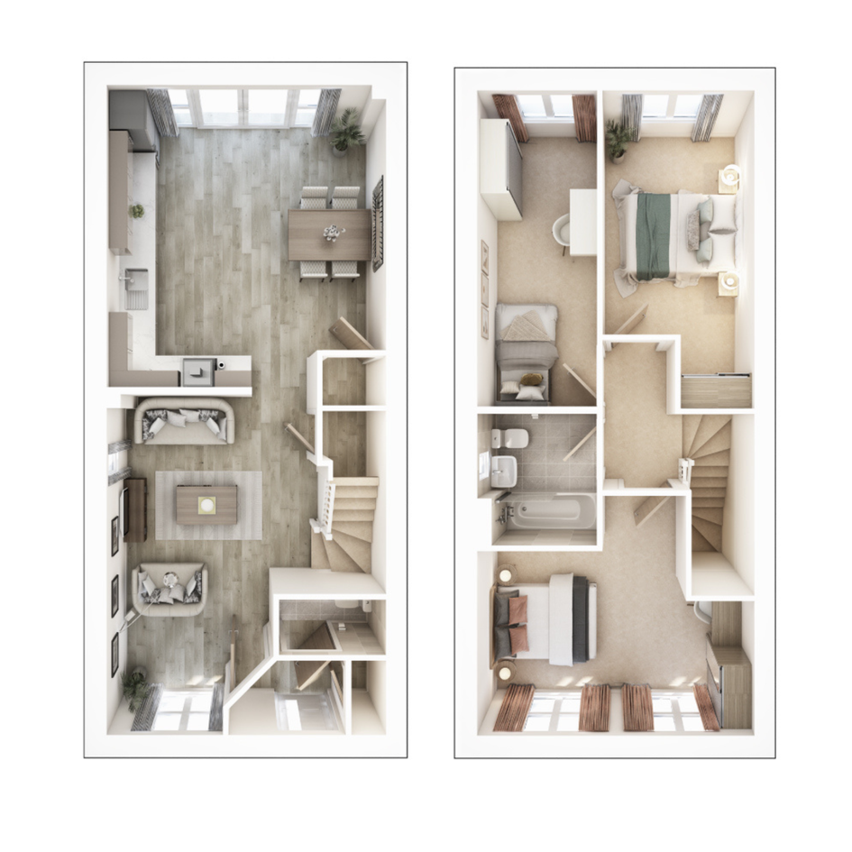 Upstairs, the spacious main bedroom creating the perfect retreat at the end of the day. Two additional bedrooms and a modern family bathroom offer flexible space for children, guests, or a home office—making The Greet a home that adapts to you. Perfectly positioned in a vibrant canalside community, The Leen is where modern living meets effortless style.