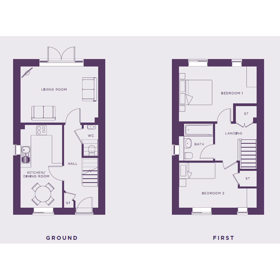 The ground floor offers a bright and spacious living room, ideal for relaxing or entertaining, alongside a well-designed kitchen/dining room that provides a practical space for everyday living. A convenient downstairs W/C and handy storage complete the layout.
