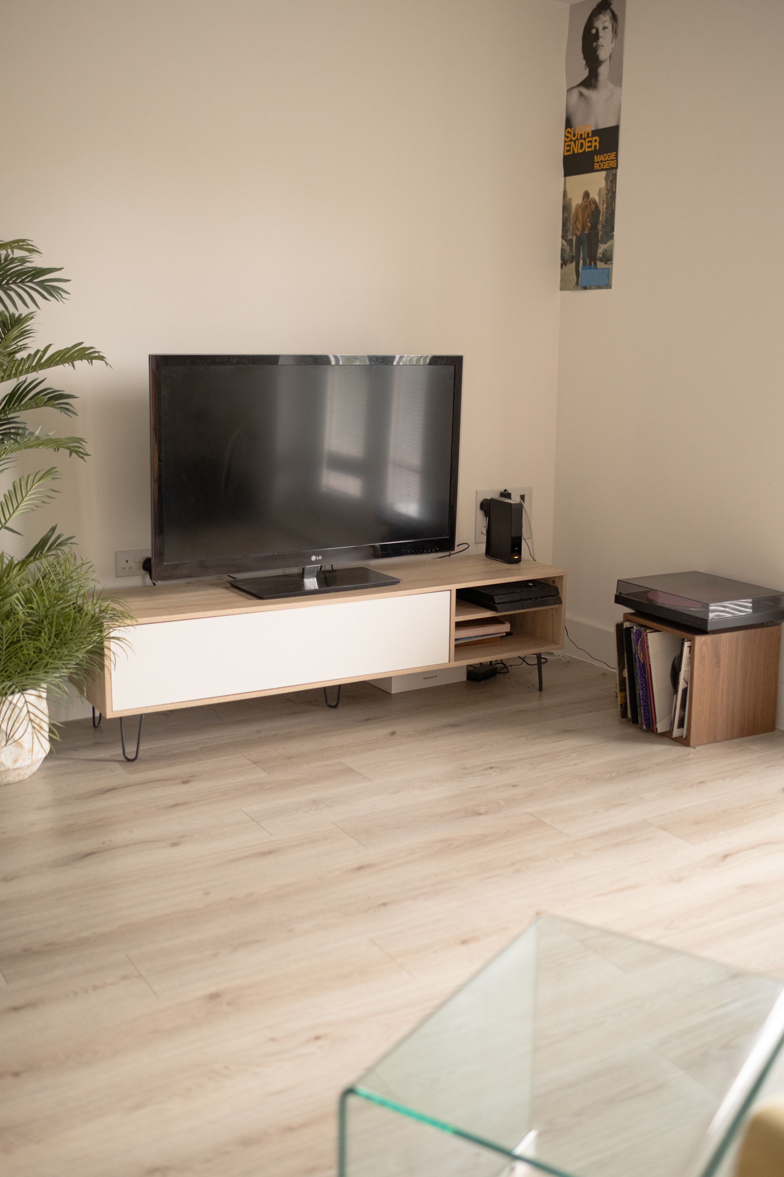The property features an open-plan living room and kitchen, which includes an integrated washing machine and dishwasher. There’s a good-sized bedroom, a separate storage cupboard, and one allocated parking space.