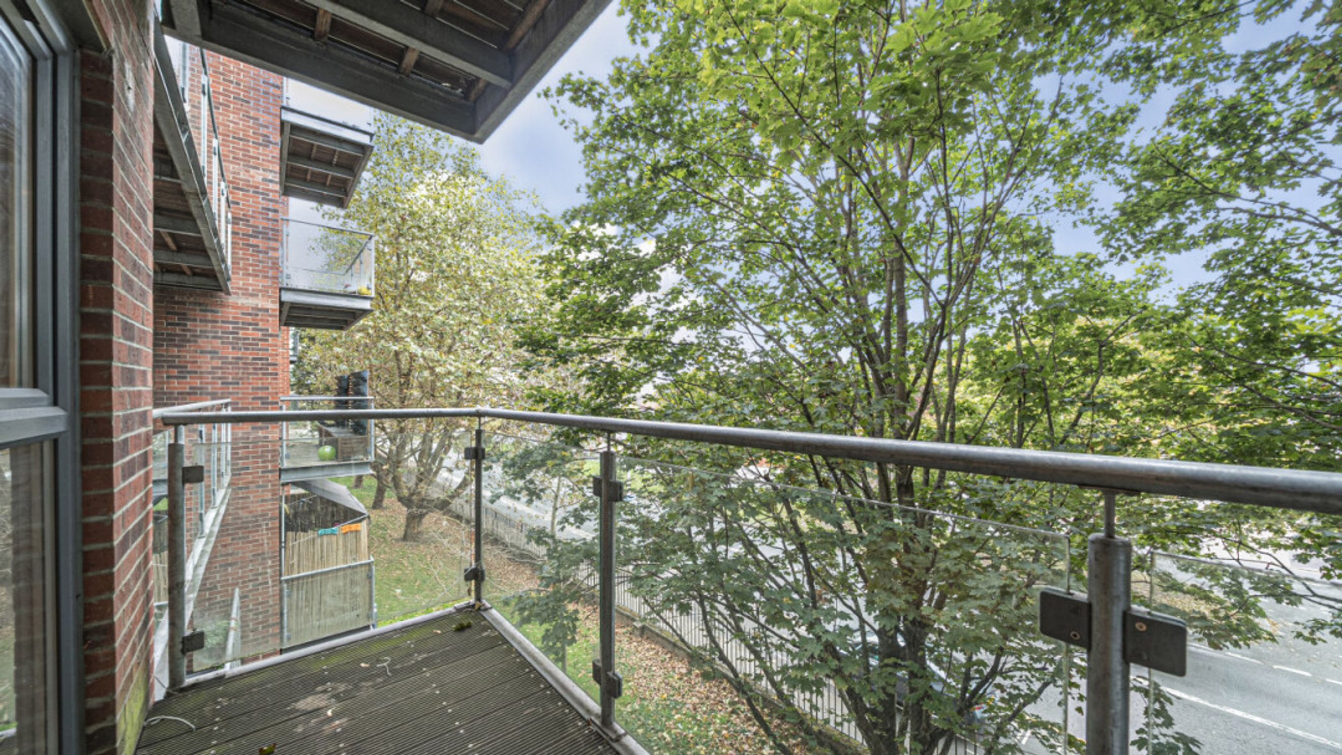 Enter this stylish apartment via a entrance hall with three storage cupboards. There are two well proportioned double bedrooms, the master with built in wardrobe and benefit of an en-suite shower room. A contemporary family bathroom serves the second bedroom. A generous plan living area, with room for a dining table opens onto a full width balcony for relaxing or entertaining. The modern kichen incorporates integrated appliances.