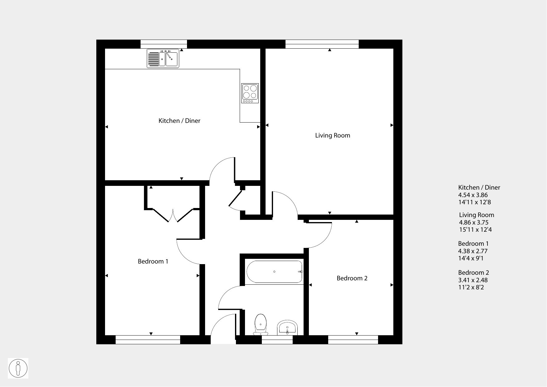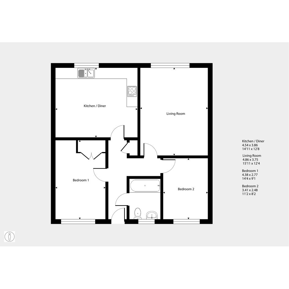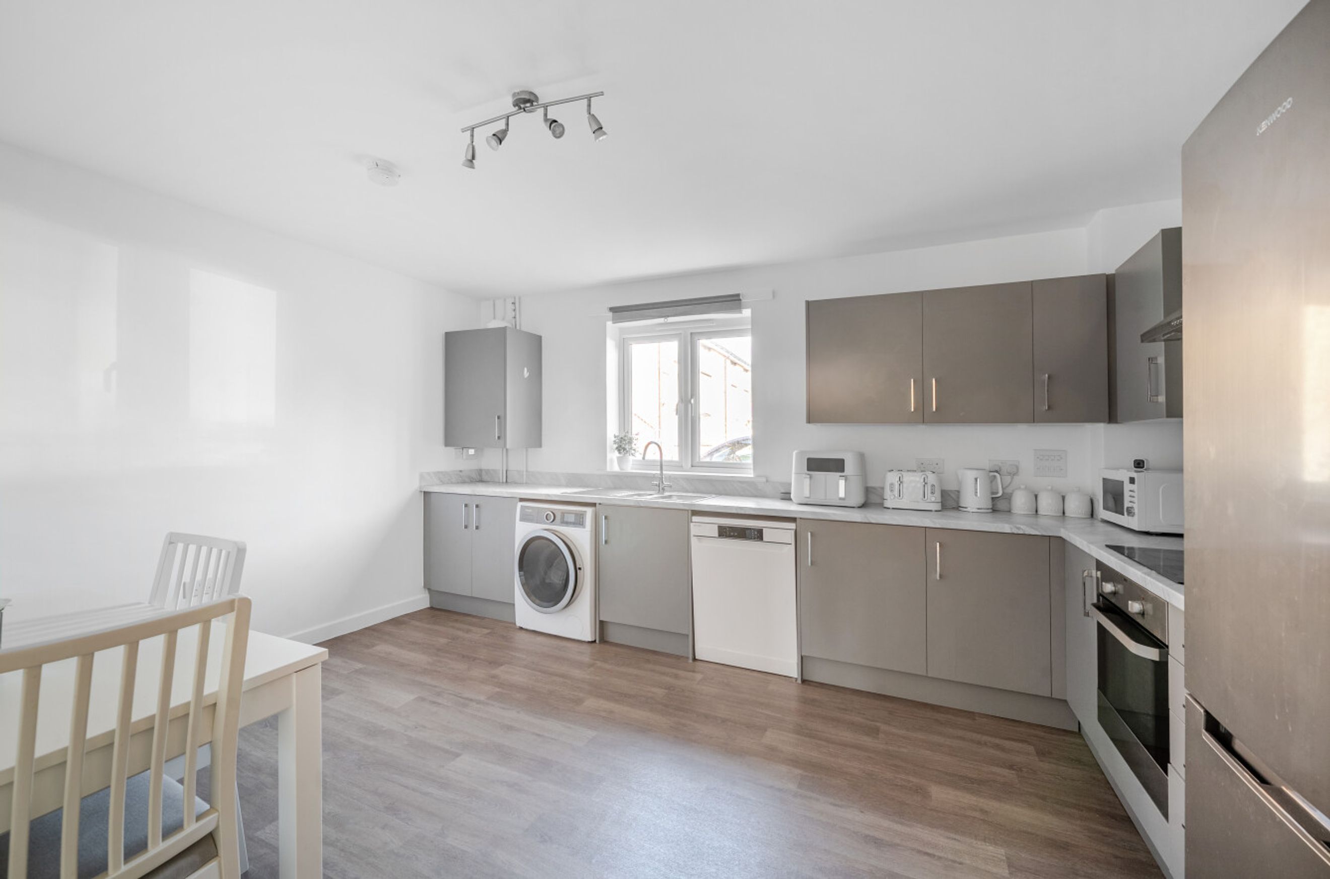 Featuring a spacious living room. The kitchen has an integrated oven, hob and hood. There are two spacious bedrooms, with built-in storage to the master. The bathroom has a modern, white suite.