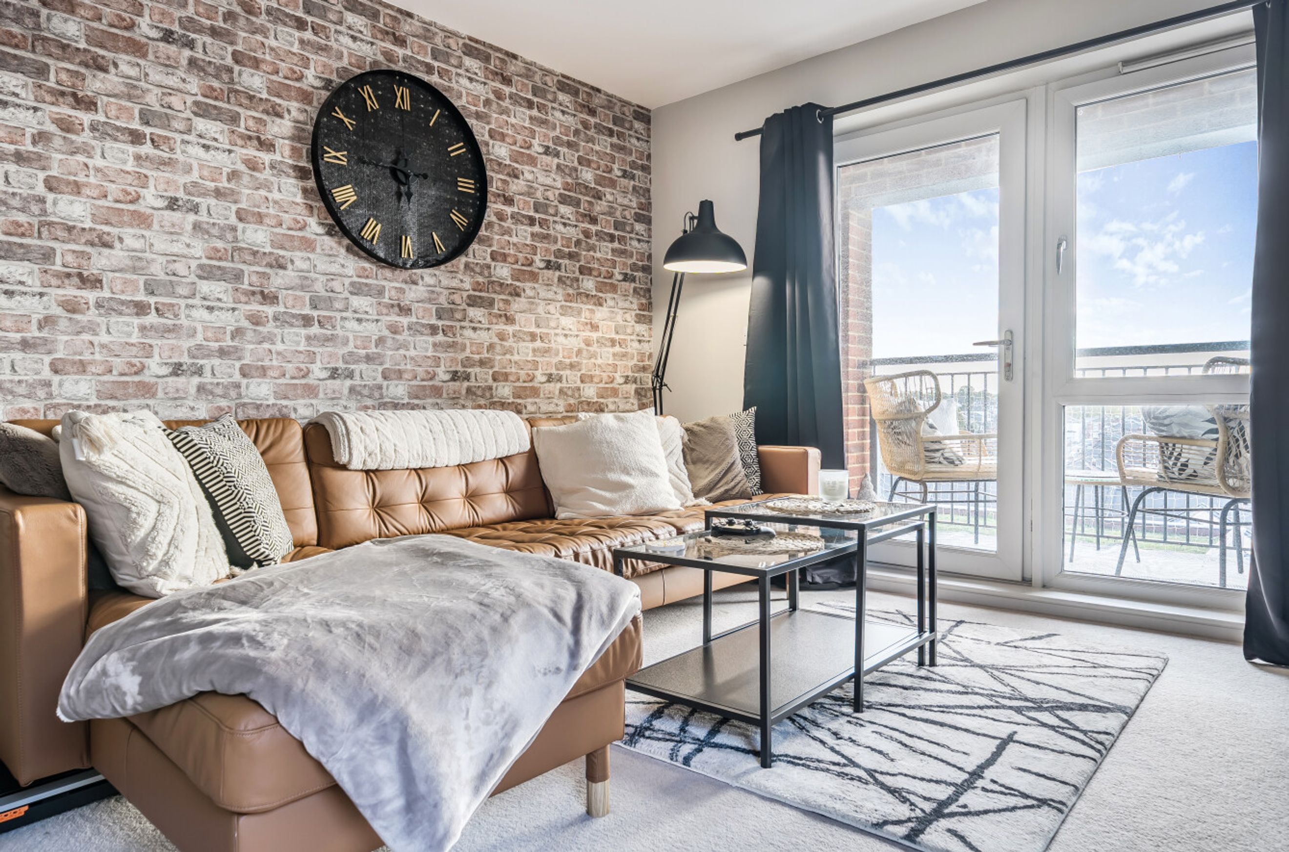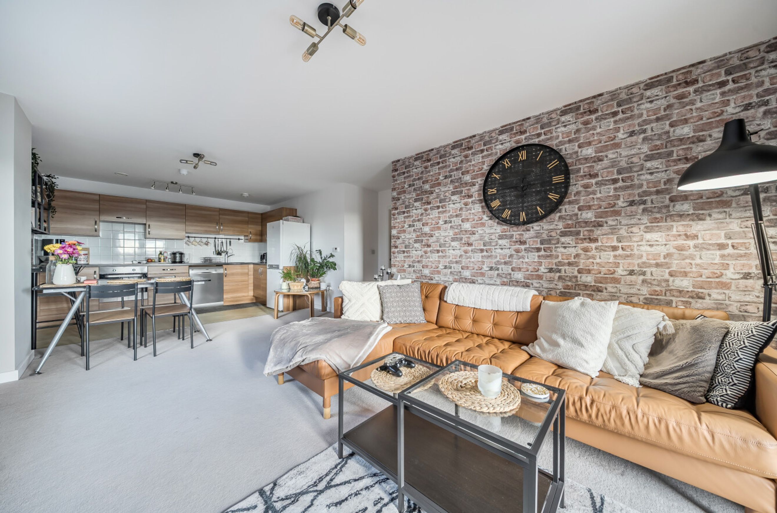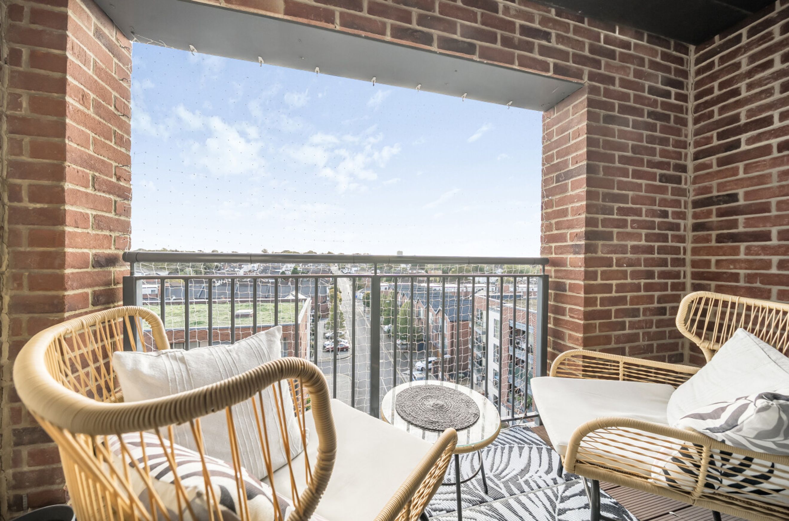 Featuring an open-plan living area with doors to your balcony. The kitchen has an integrated oven, hob and hood. There are two comfortable double bedrooms. The bathroom has a modern, white suite.