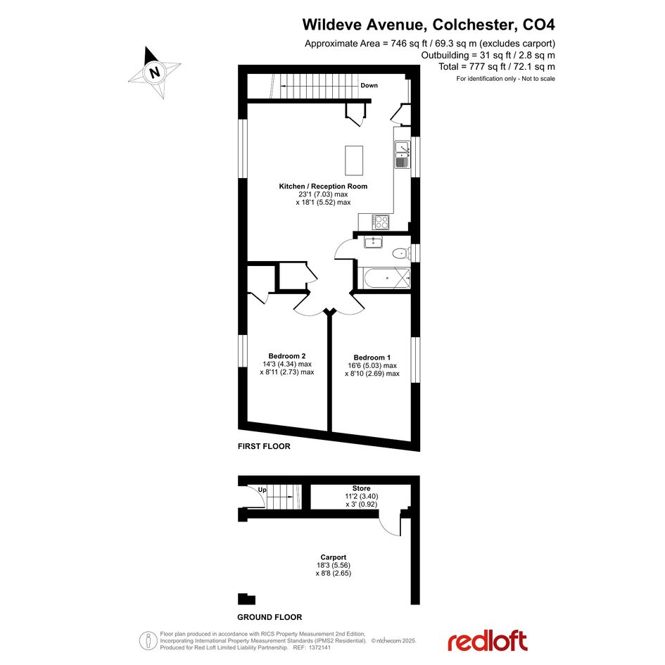 Additional highlights include a large loft with lighting and power sockets, a private storage shed, full fibre broadband, and efficient gas central heating with a modern combi boiler and wall-mounted controls. The property also benefits from two private parking spaces (one beneath the property in a carport) and access to communal green areas both to the front and rear.