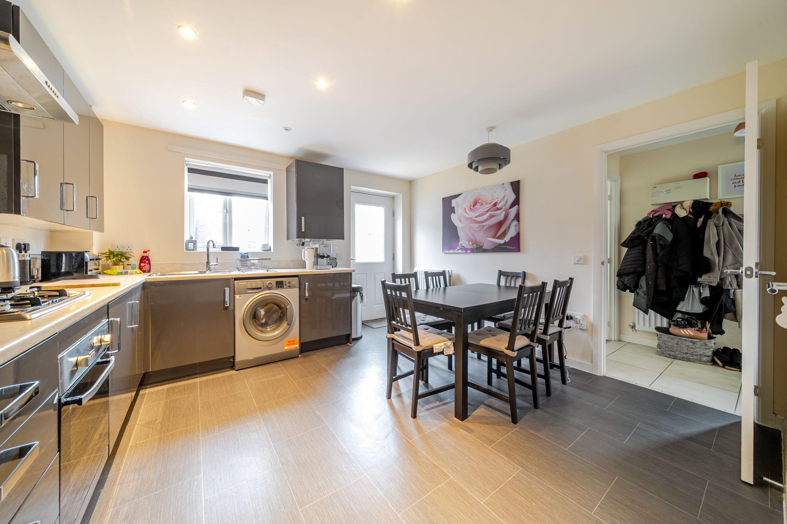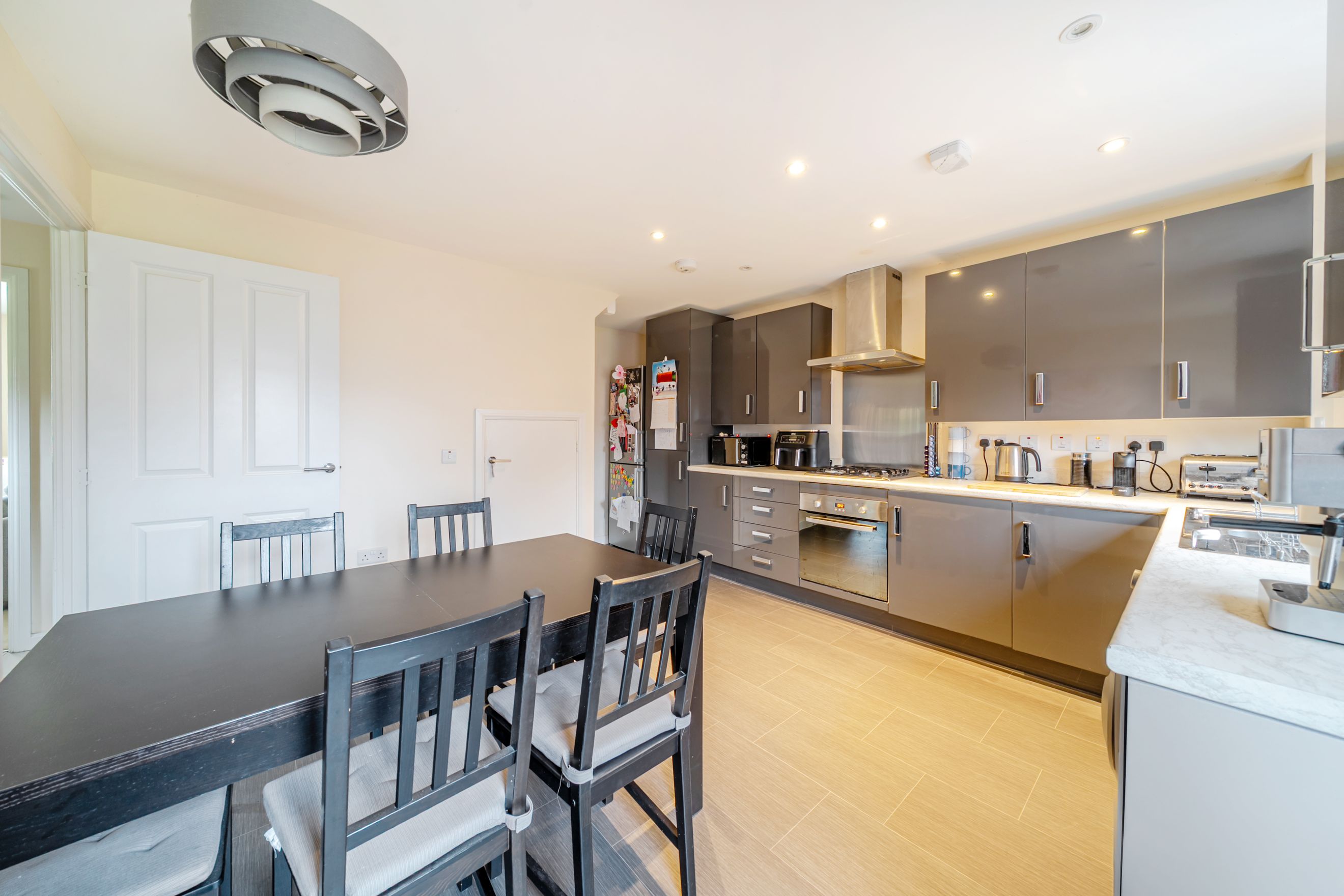 There is a large WC located on the ground floor, located next to a modern kitchen with room for dining area. Living room is also spacious, light and airy.