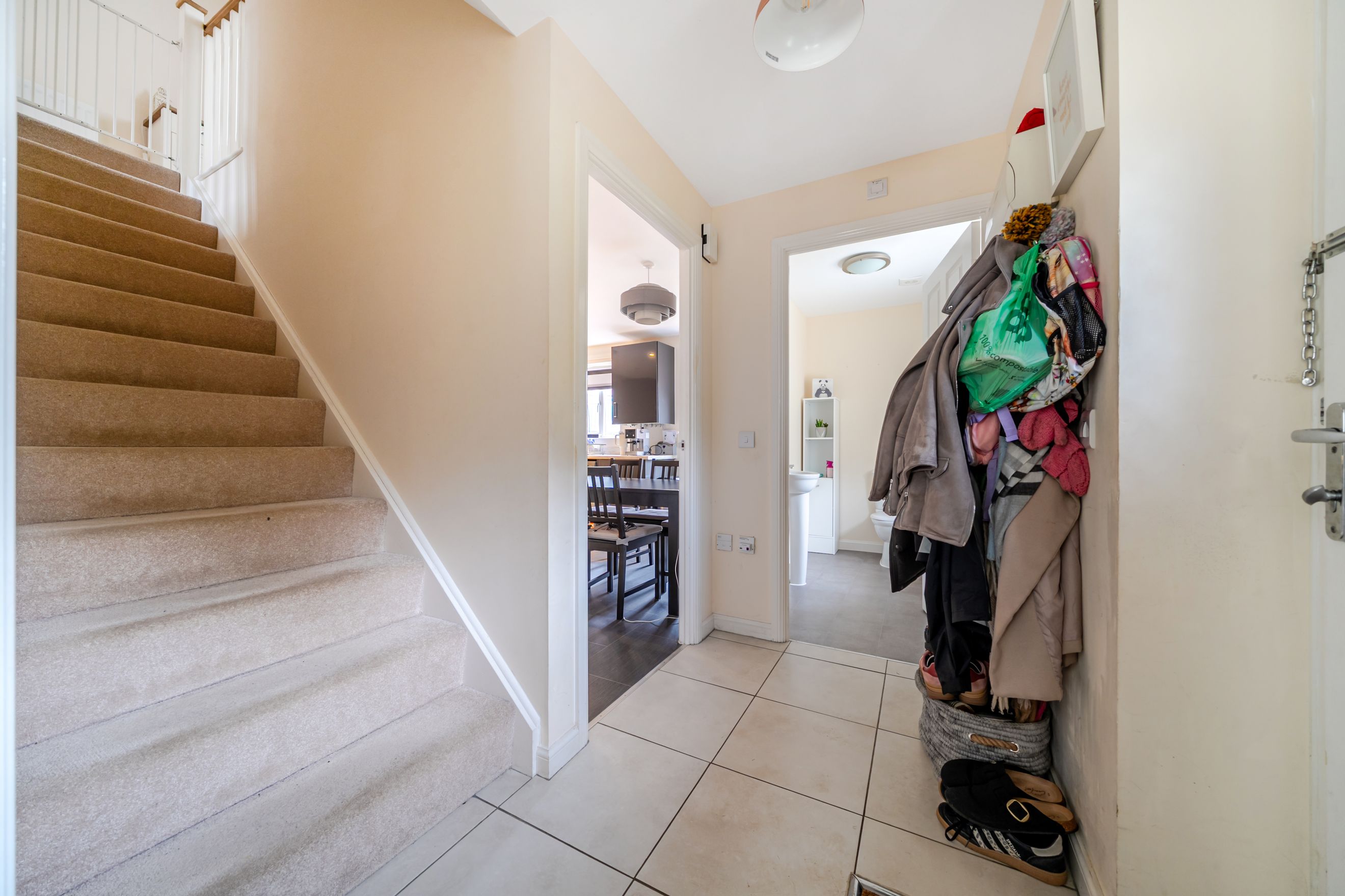 Upstairs you’ll find a generous landing area, 2 large bedrooms, a smaller bedroom and a good-sized family bathroom with a shower over the bath.