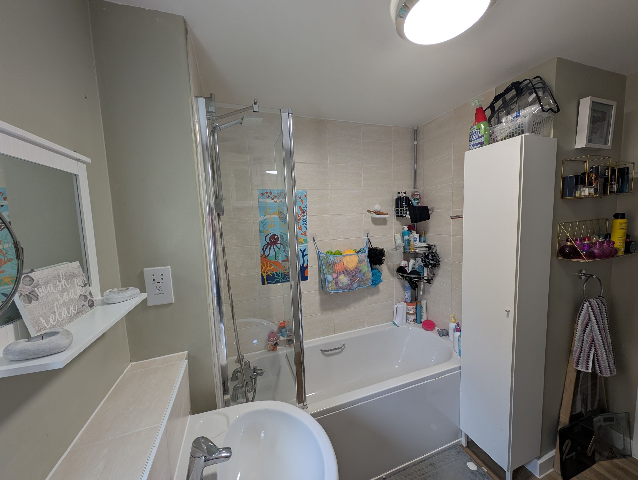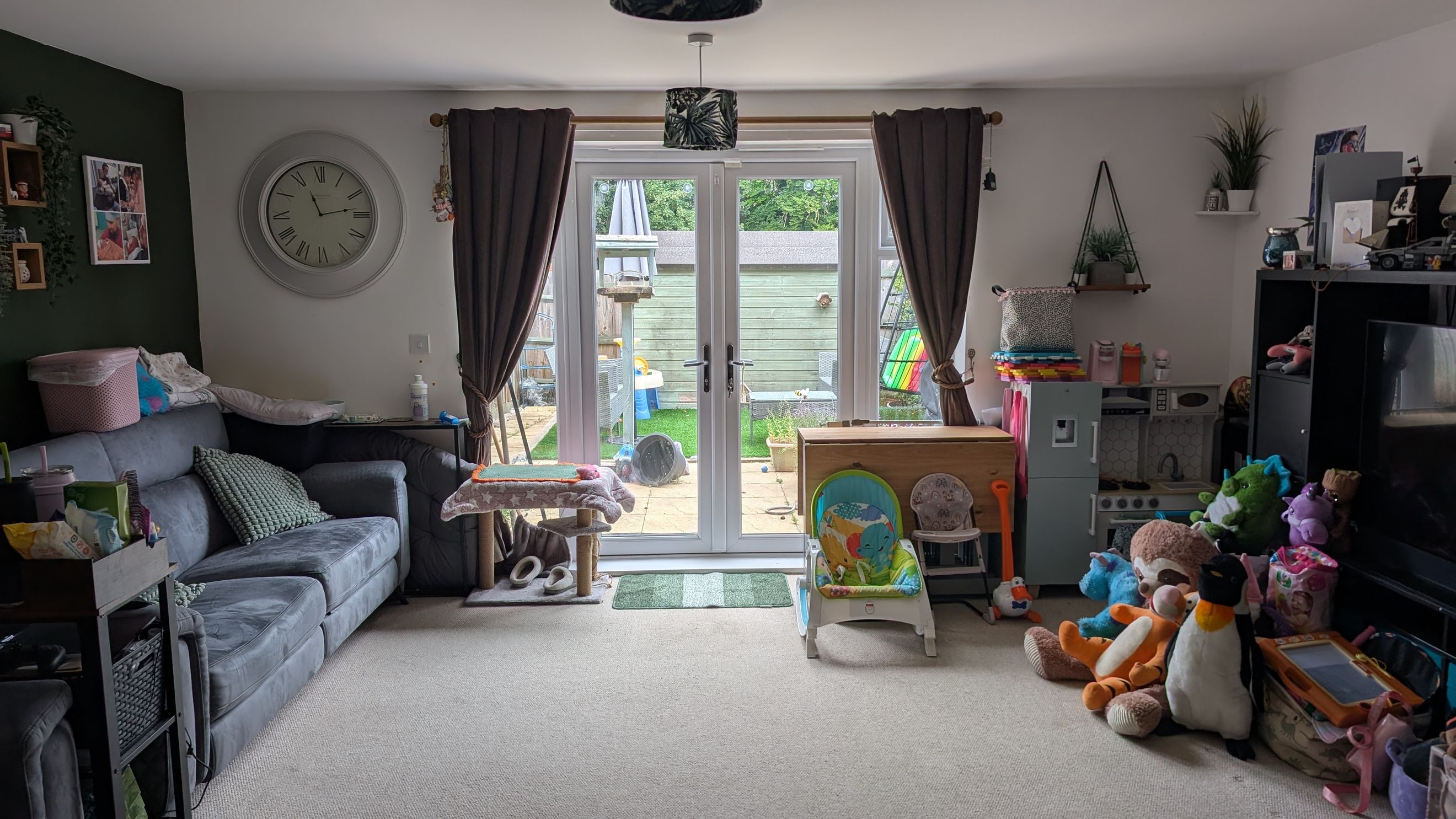 On the ground floor, a hallway with handy built-in storage and a convenient downstairs toilet. To the front of the property is a modern fitted kitchen offers plenty of worktop and cupboard space, with room for dining. To the rear, and direct access out to the garden a large living room, providing ample space for both seating and a separate TV or play area.