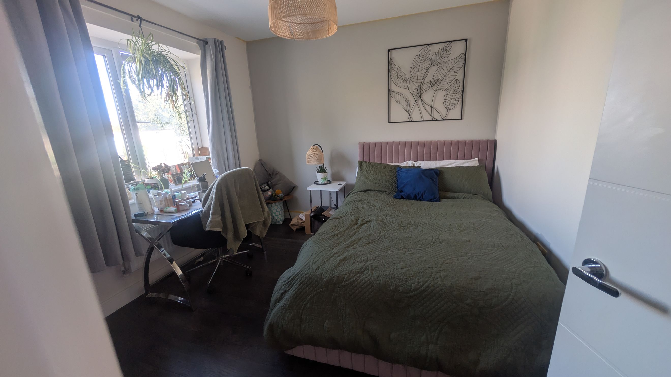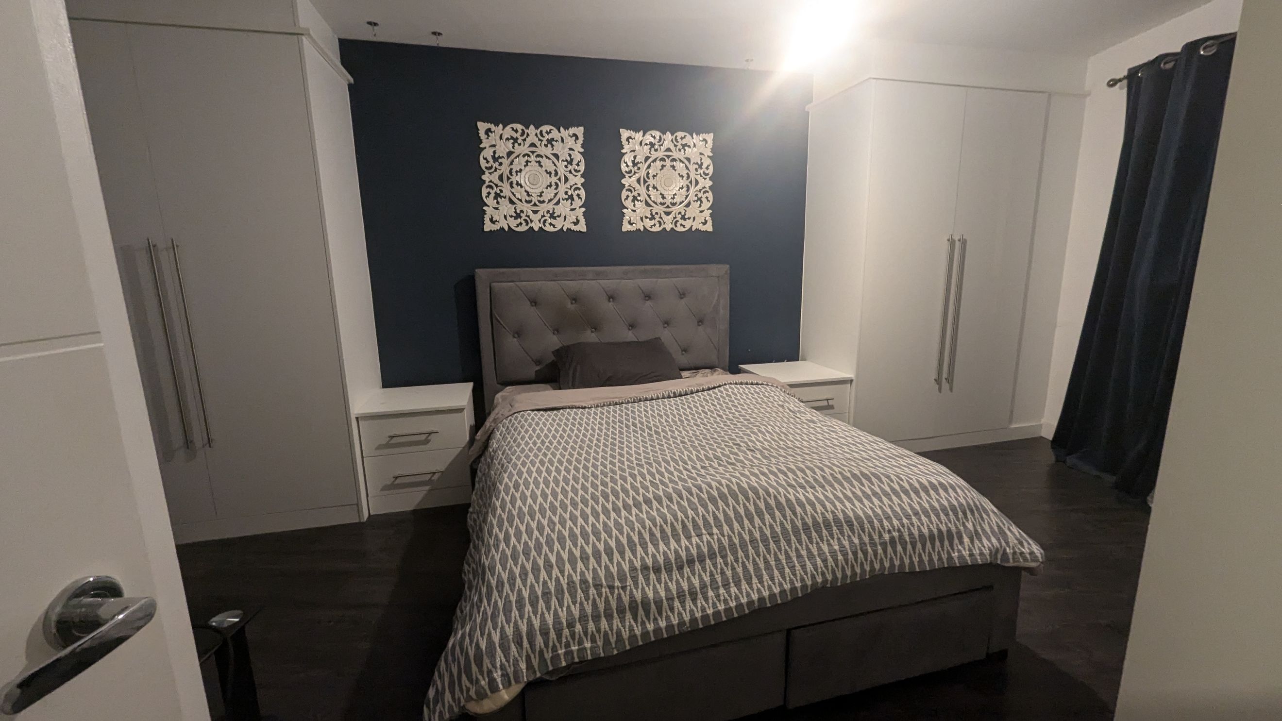 The master bedroom is welcoming with two large fitted wardrobes. A second double bedroom and smaller third.