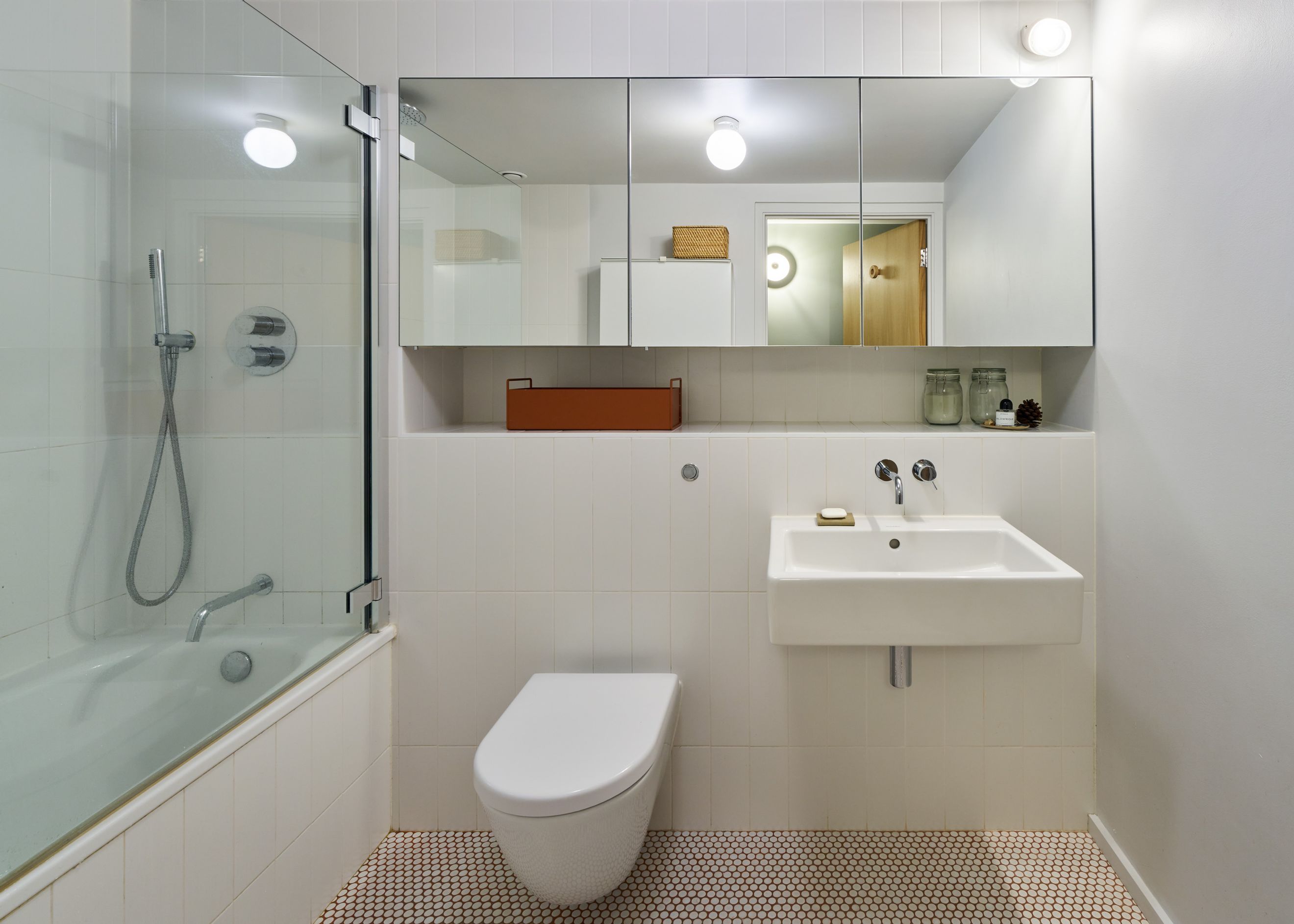 The recently renovated bathroom lies off the hallway, and a discreet storage cupboard is neatly concealed nearby.