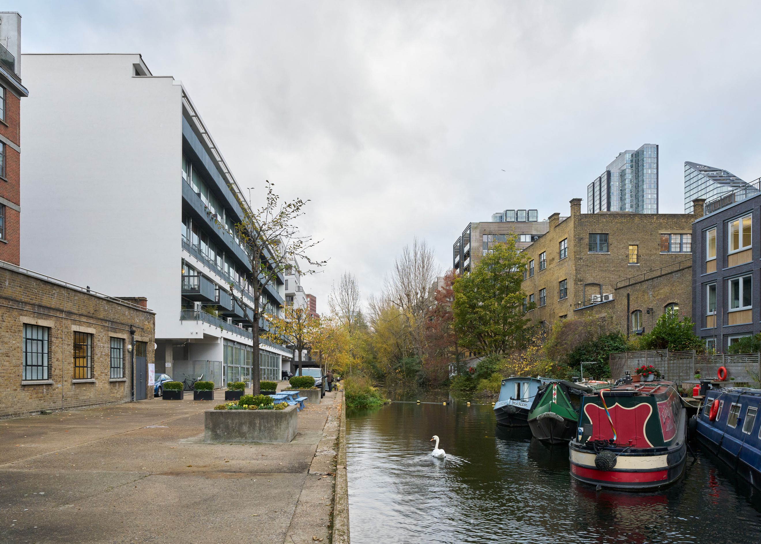 The building enjoys an excellent location next to the Regent’s Canal towpath, which leads towards Angel in one direction and Victoria Park in the other. The cultural hubs of Hoxton, Shoreditch, and Clerkenwell are all within a 20-minute walk to the east.