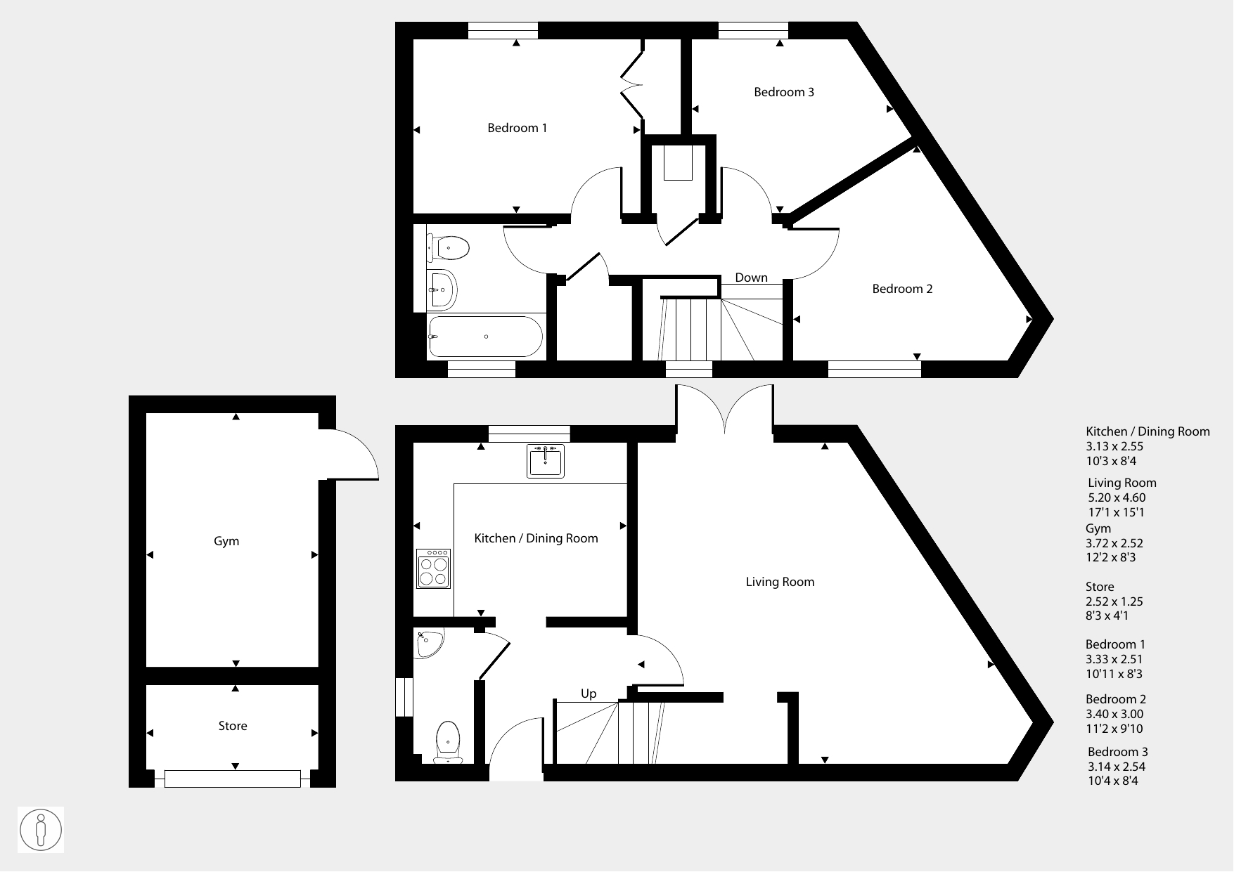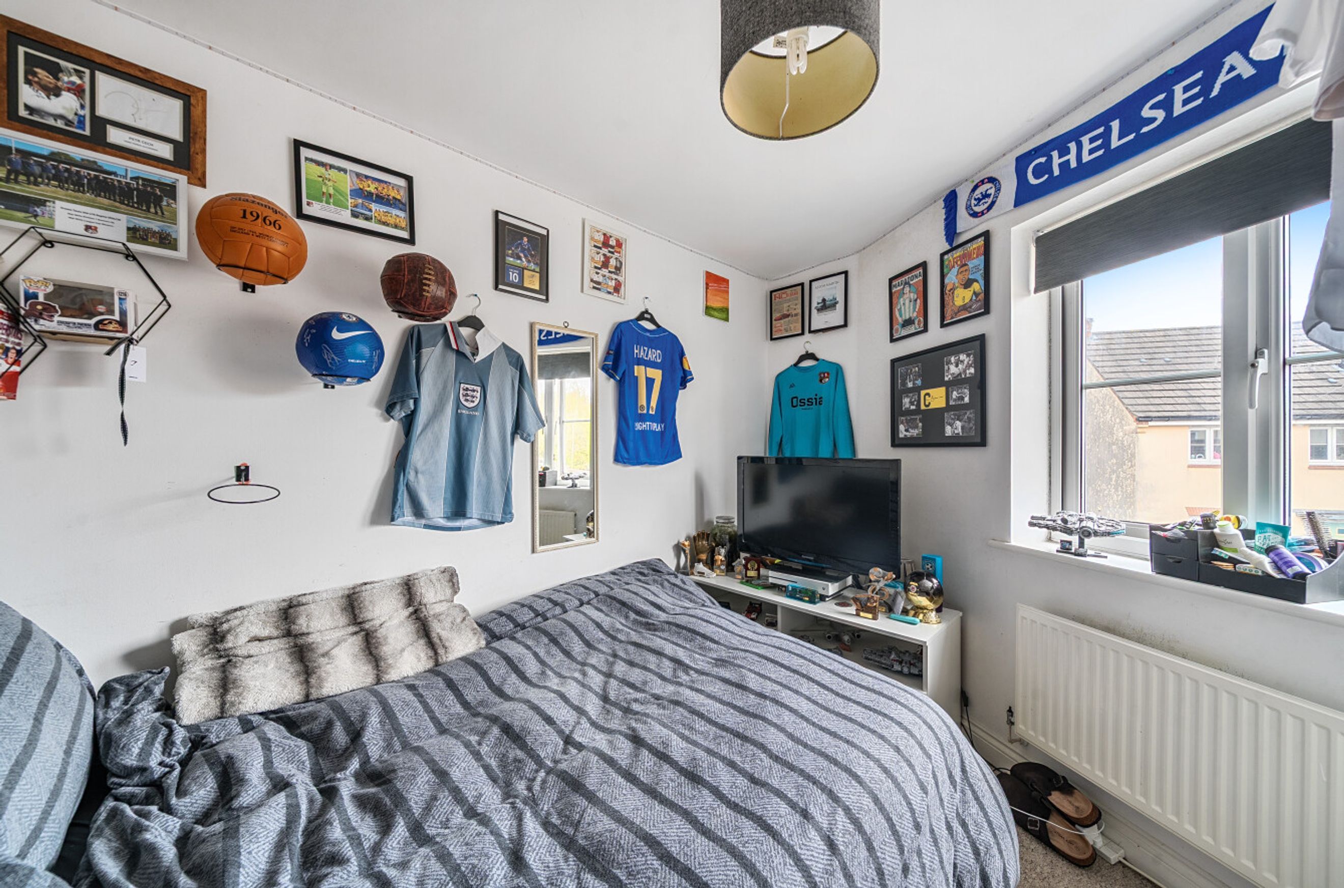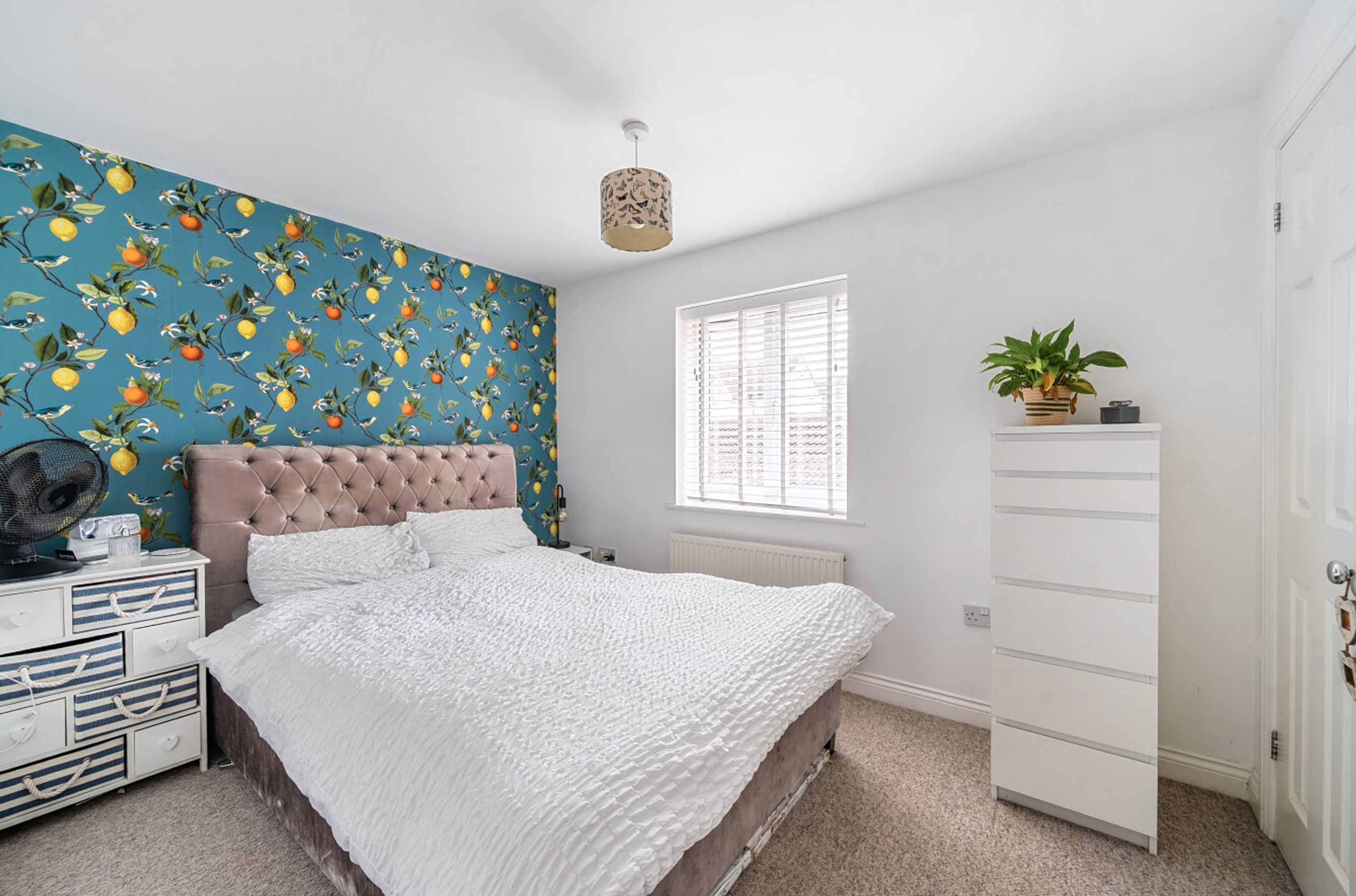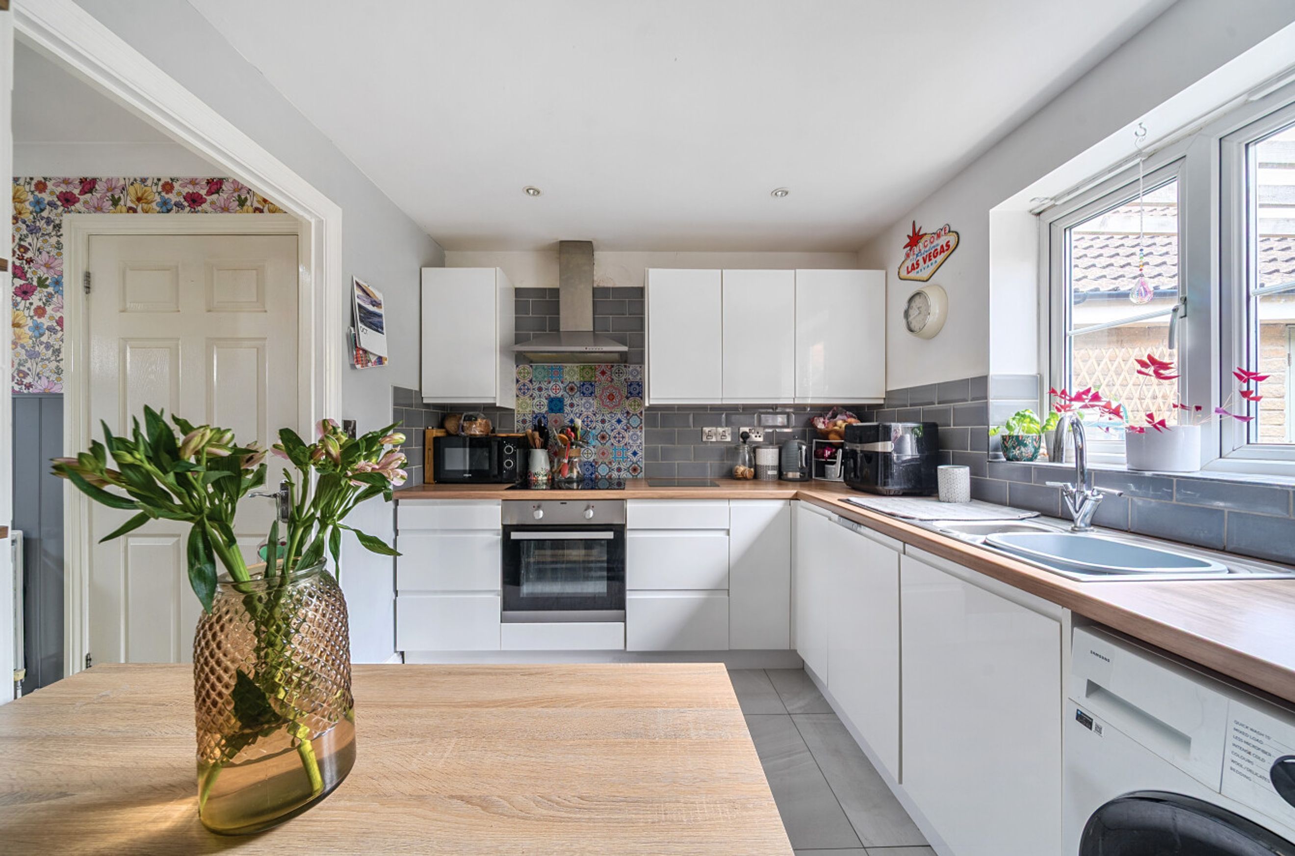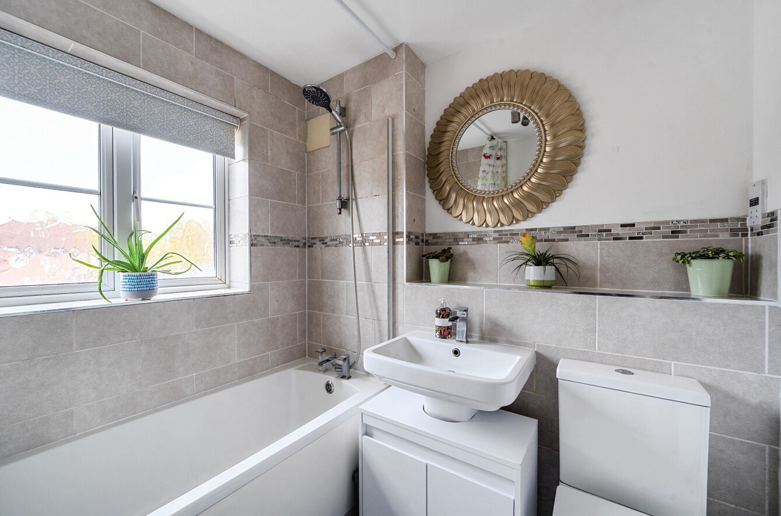 Upstairs, there are three comfortable bedrooms, with a built-in wardrobe to the master. The bathroom has a modern, white suite.