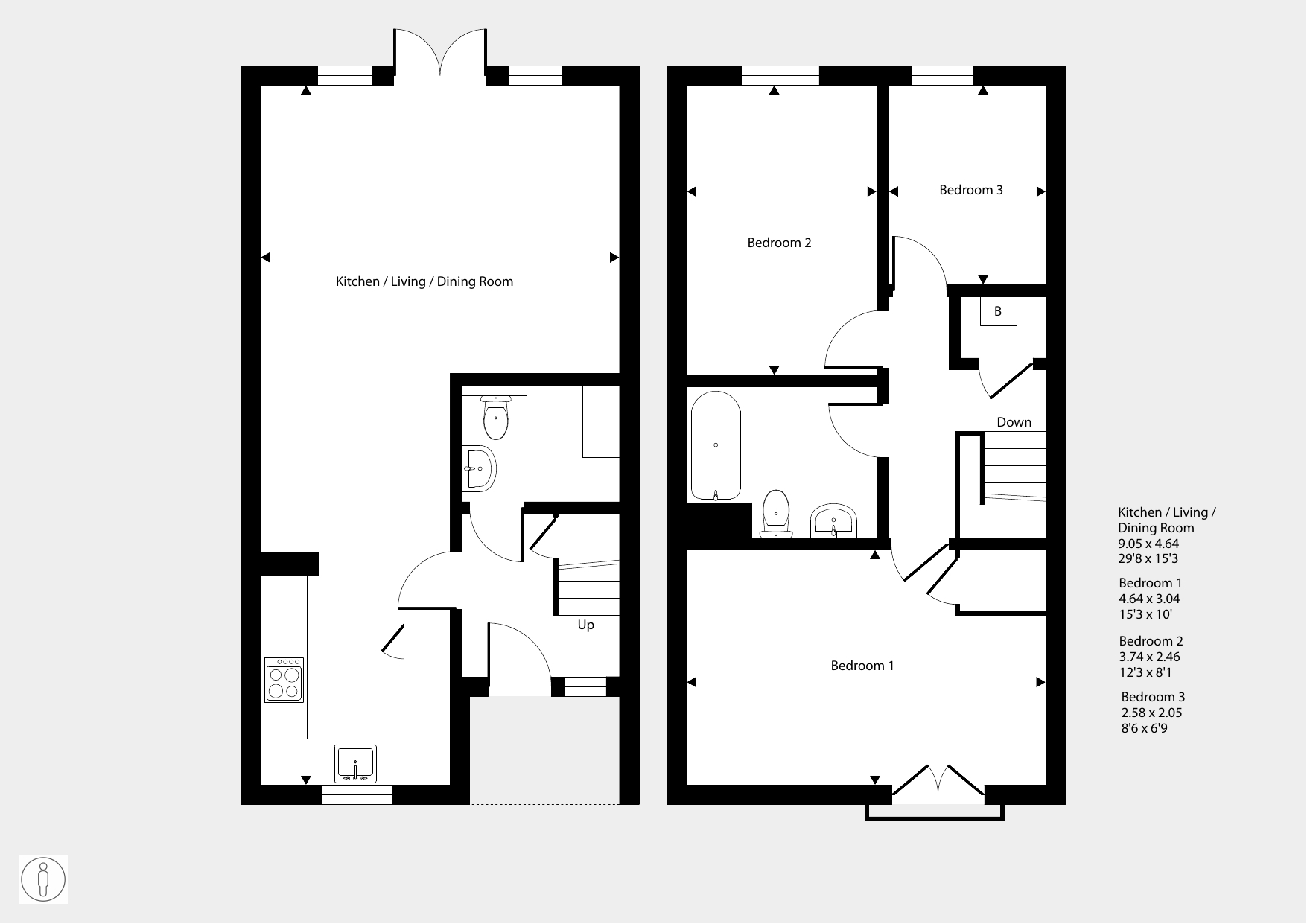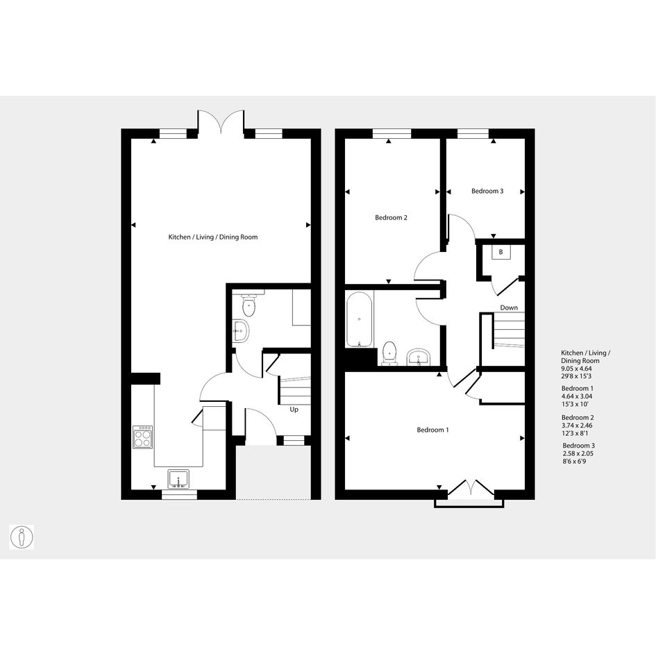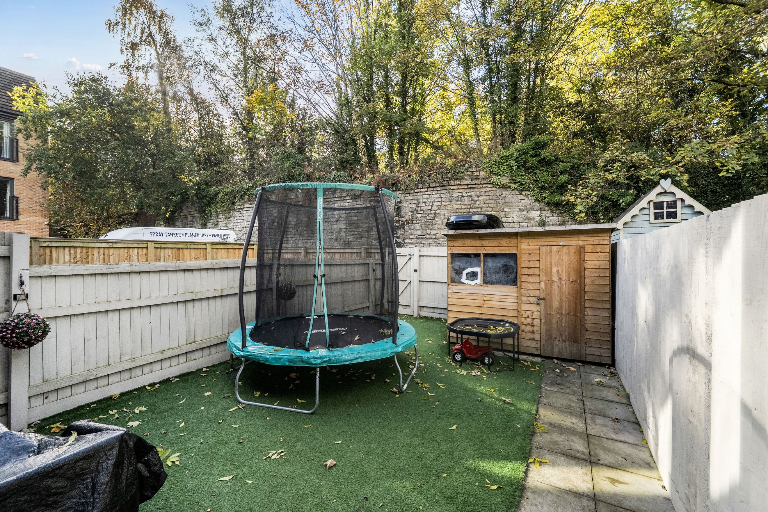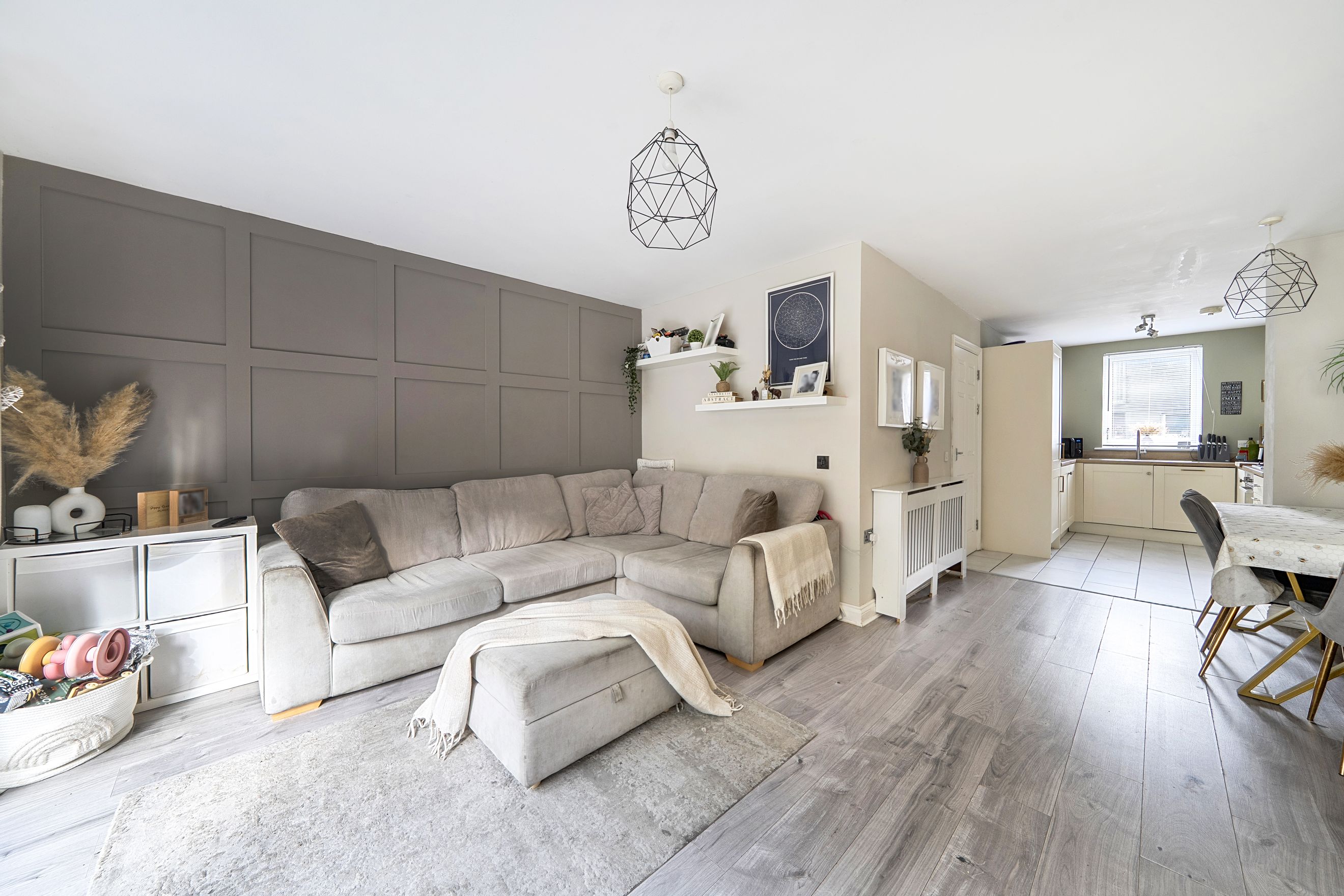 Upstairs, there are three comfortable bedrooms, with a Juliette balcony to the master. The bathroom has a modern, white suite. You'll also have two parking spaces and a back garden.