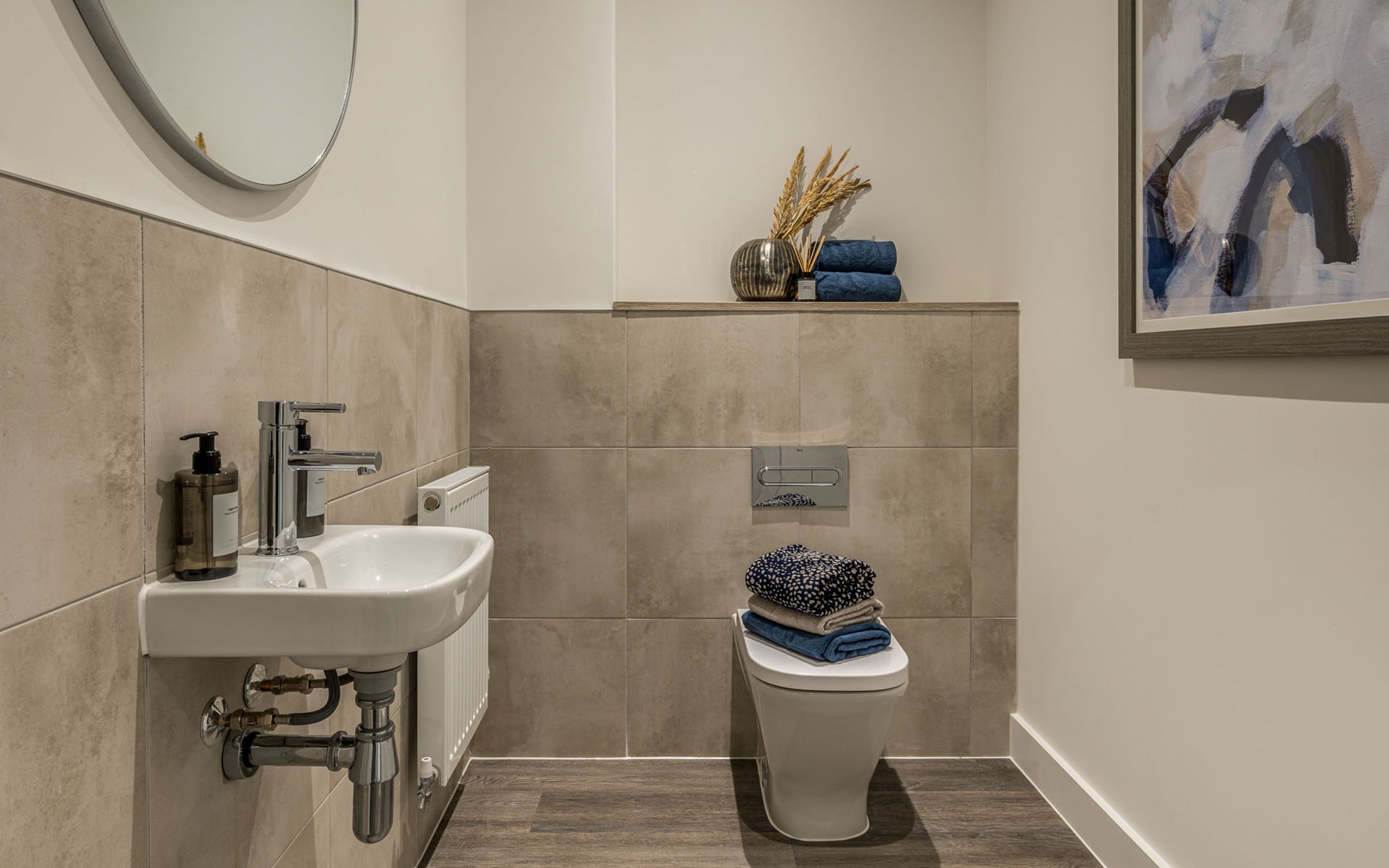 The second floor is home to bedrooms 2 and 3, both doubles. There are two storage cupboards on the landing and the bathroom, which is fitted with contemporary white sanitaryware, Diesse wall tiles and a heated towel radiator.