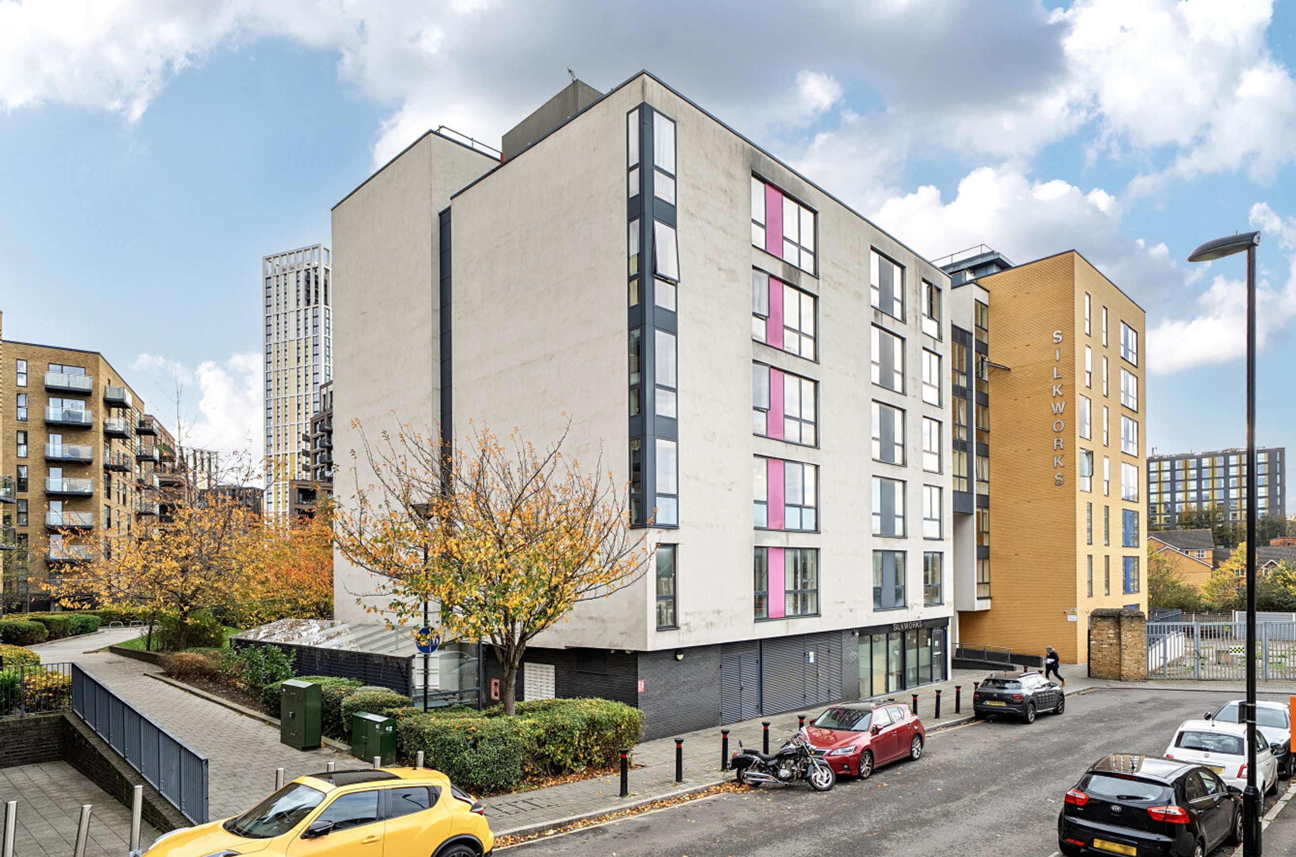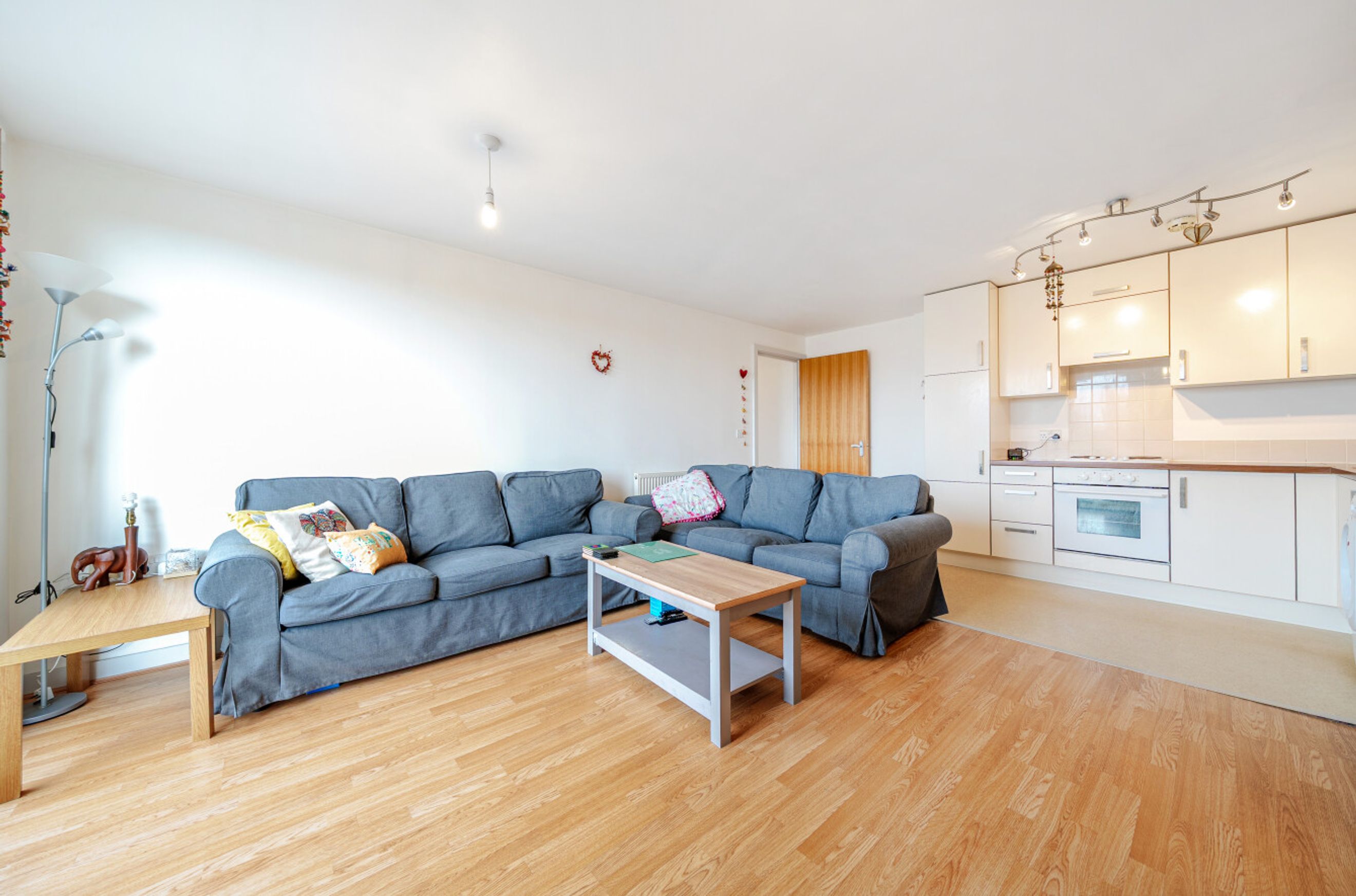 SHARED OWNERSHIP (Advertised price represents 25% share. Full market value £410,000). A spacious and well-presented apartment on the second floor (building has a lift). The property has a pair of built-in storage/utility cupboards just off the entrance hallway, along with a simple, white-tiled bathroom. There is an eighteen-foot, open-plan kitchen/reception room with a large window facing Conington Road. Both bedrooms are generously-sized doubles and the energy-efficiency rating is good, thanks well insulated walls, modern double glazing and a communal heating/hot water system. Nara Building is part of the Silkworks development and has a pleasant communal courtyard. Elverson Road DLR is the nearest station with Lewisham, for services into London Bridge/Waterloo East/Charing Cross/Cannon Street/Victoria, also only a short walk away.