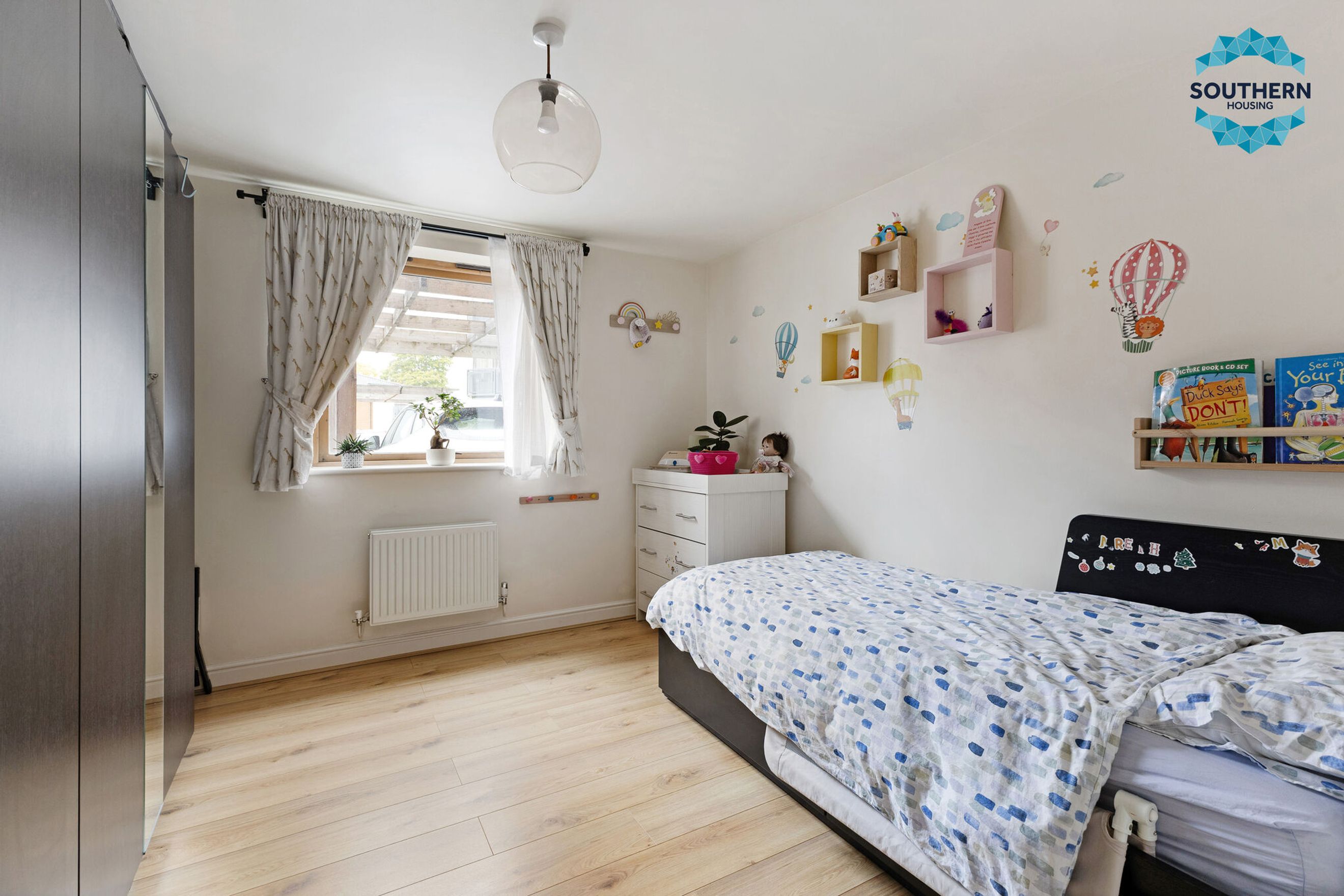 The apartment features two generously sized bedrooms, each offering a tranquil retreat with plenty of room for rest and relaxation. The second bedroom's square layout makes it especially versatile, perfect for guests, a home office or a cozy reading space.