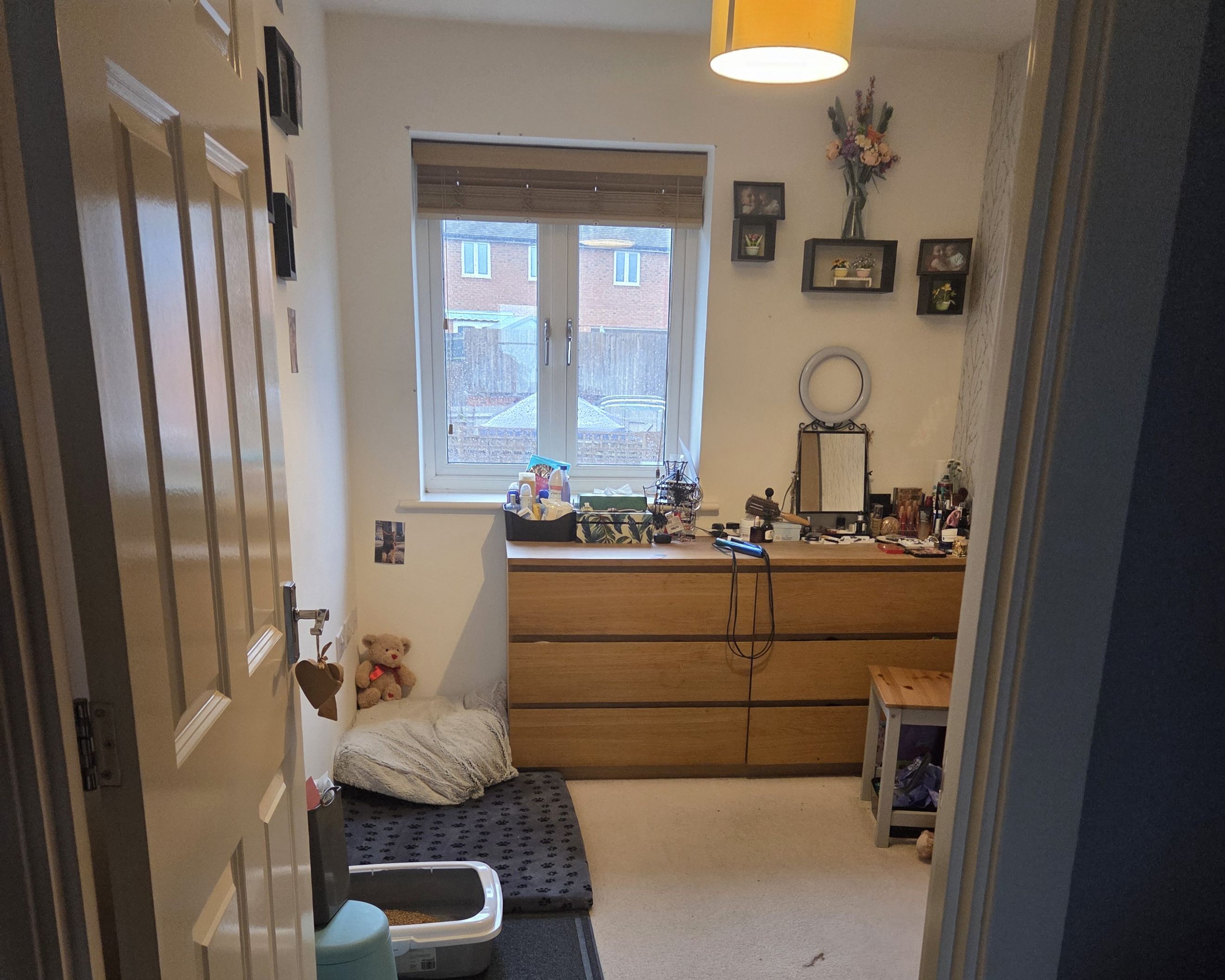Upstairs, you’ll find three generous bedrooms and the main bathroom. This is well-appointed with a contemporary design, complemented by a downstairs bathroom for added convenience. You will also find a large cupboard space on the landing with small heater to mimic an airing cupboard.