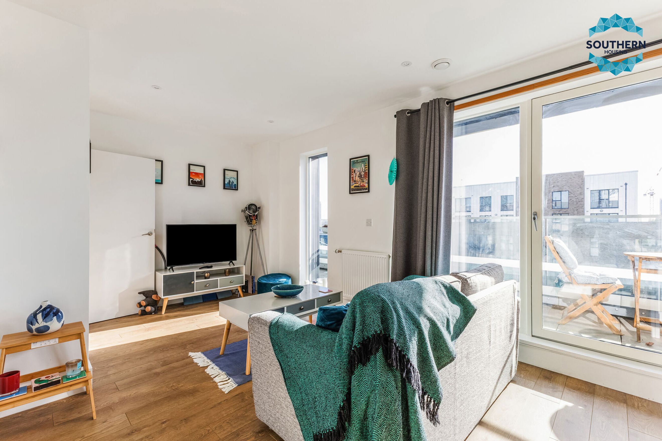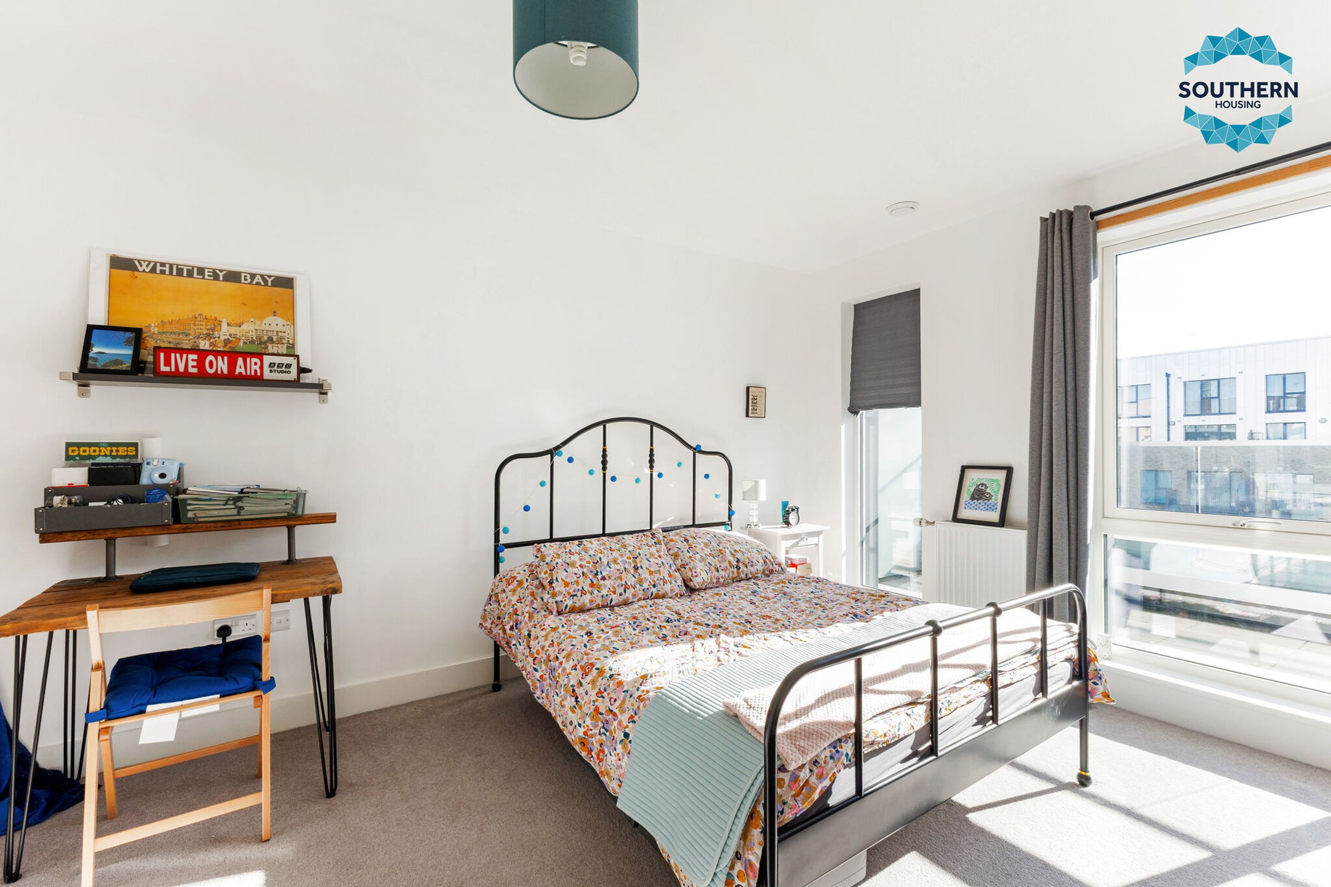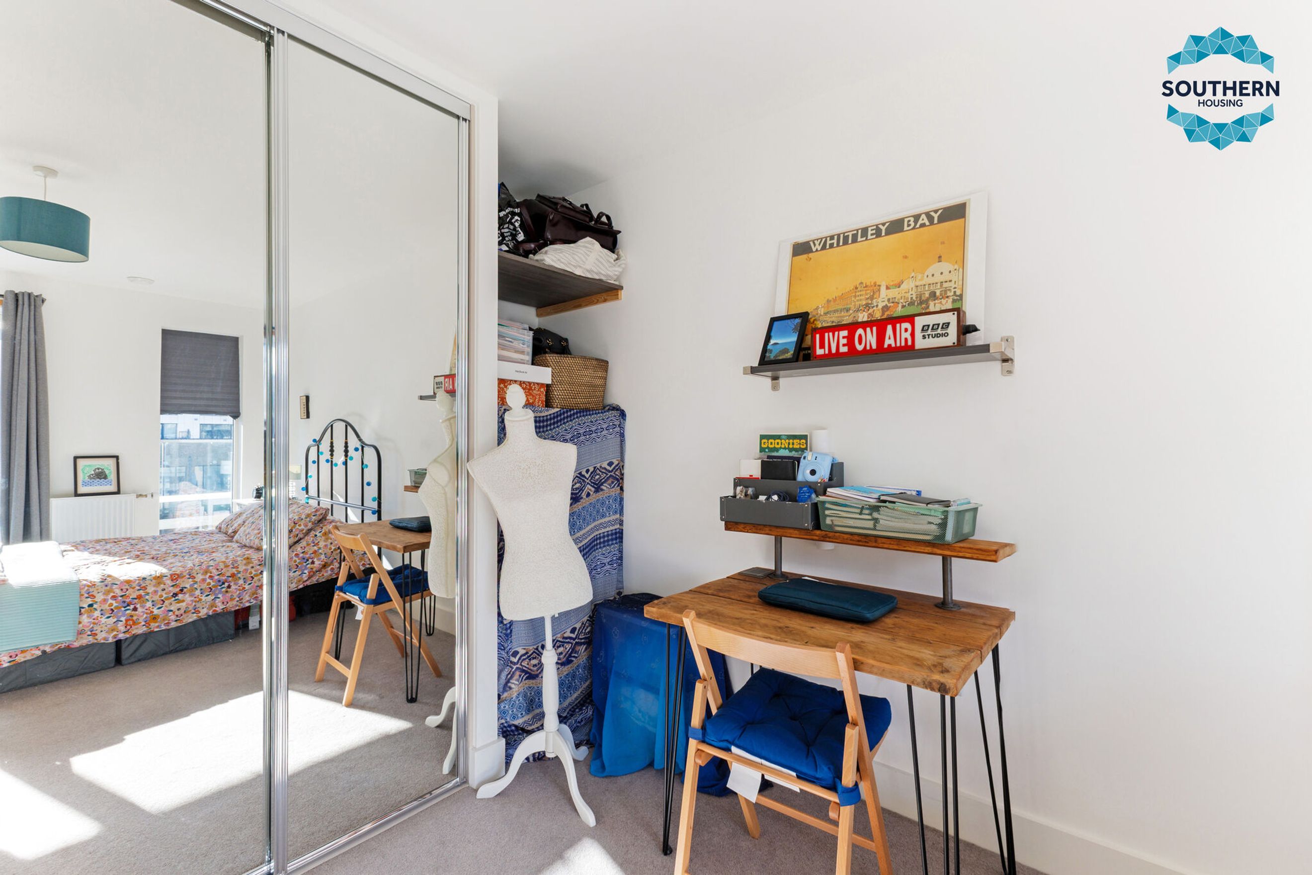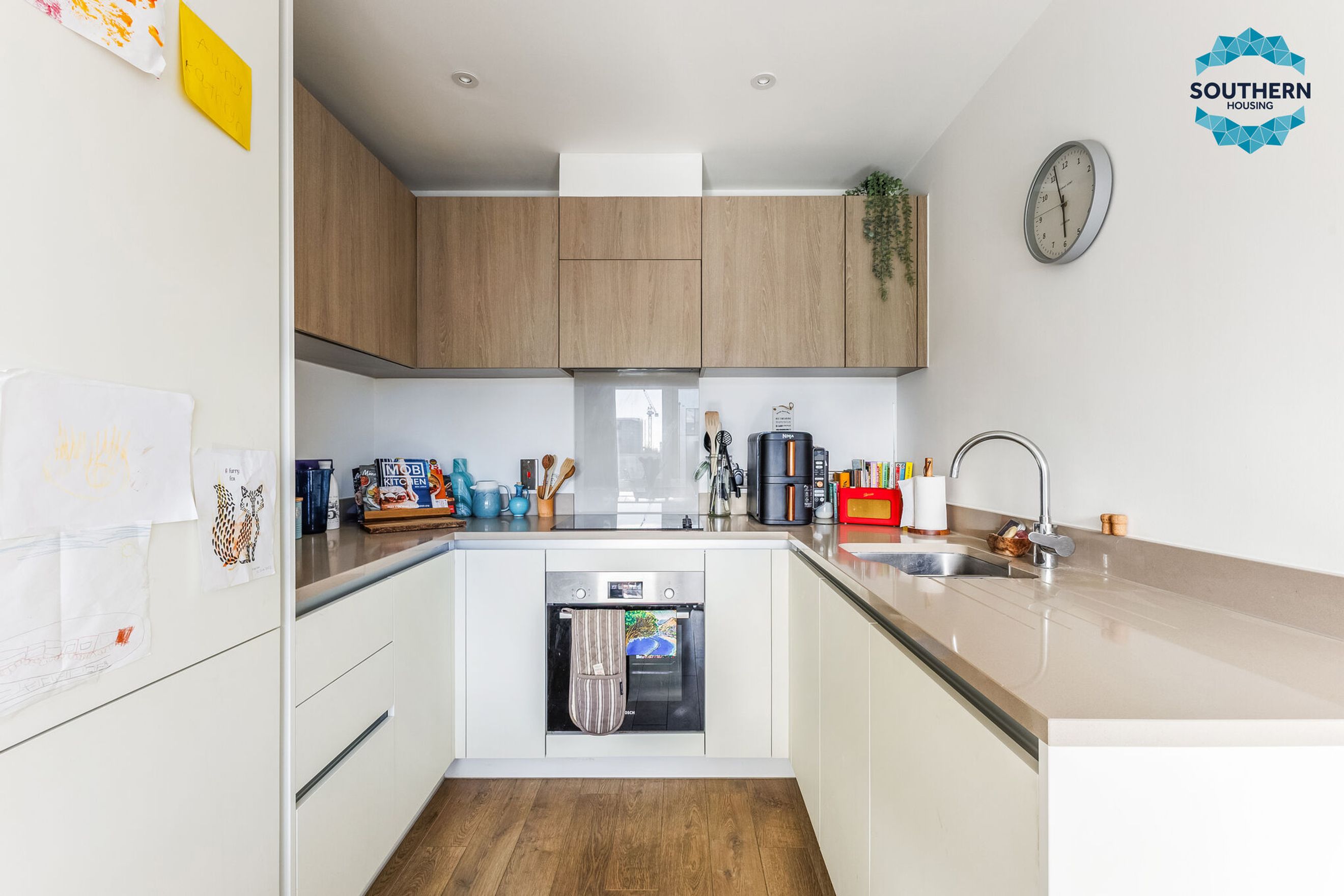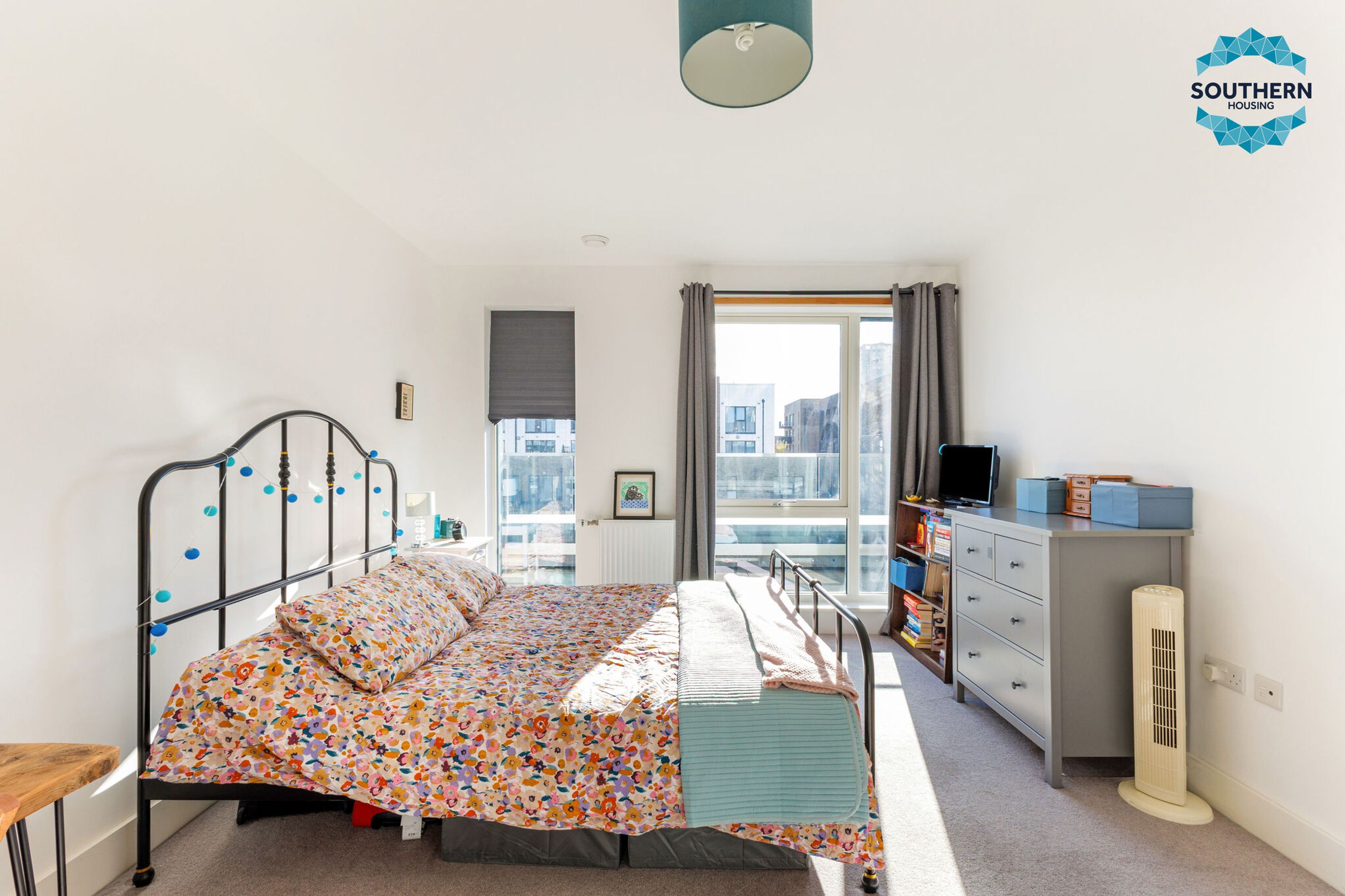 Step into a bright and welcoming entrance hall, complete with a handy storage cupboard. The heart of the home is a generous open-plan living area, thoughtfully laid out to combine the lounge, dining space, and kitchen. South-facing windows on the sixth floor provide elevated views and flood the space with natural light, creating a warm and inviting atmosphere.