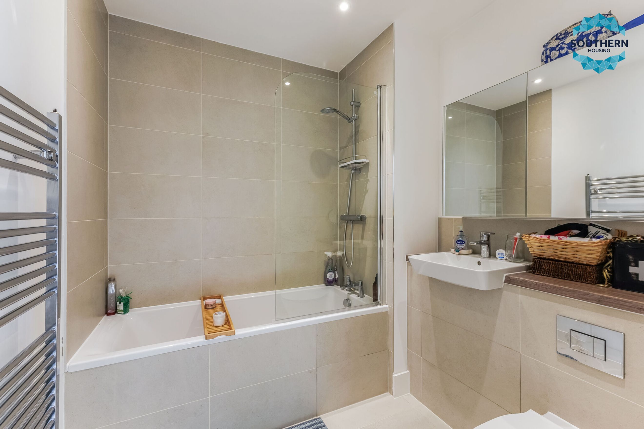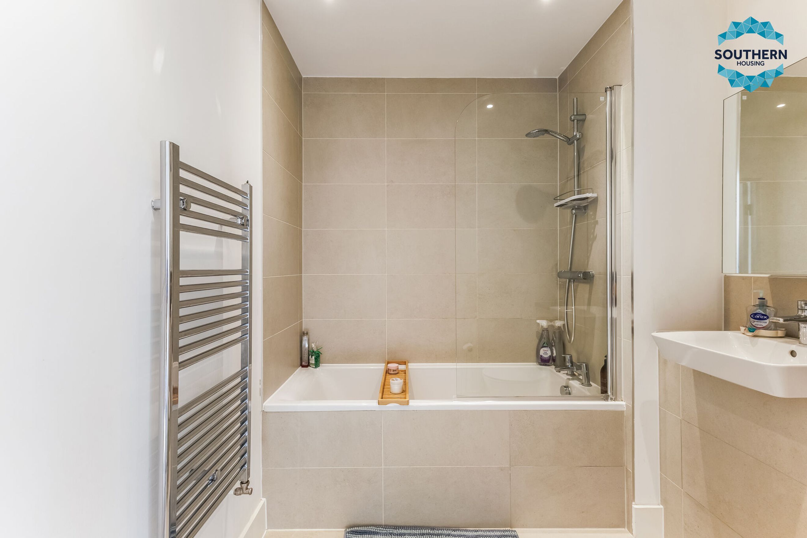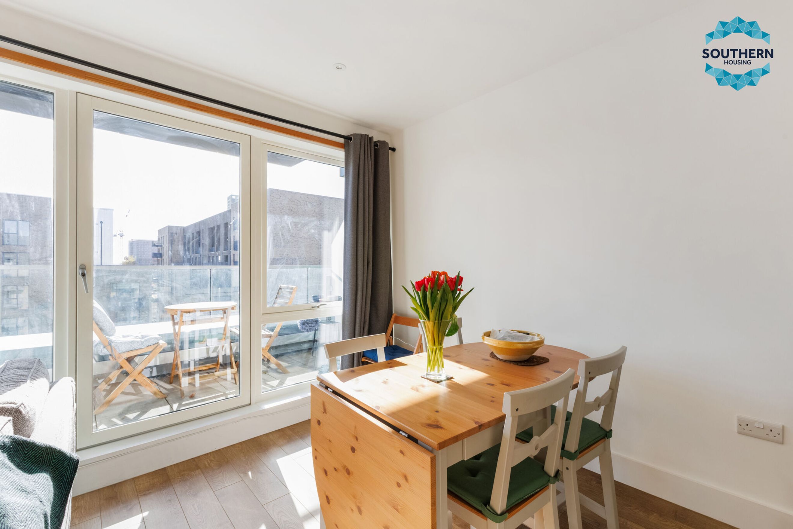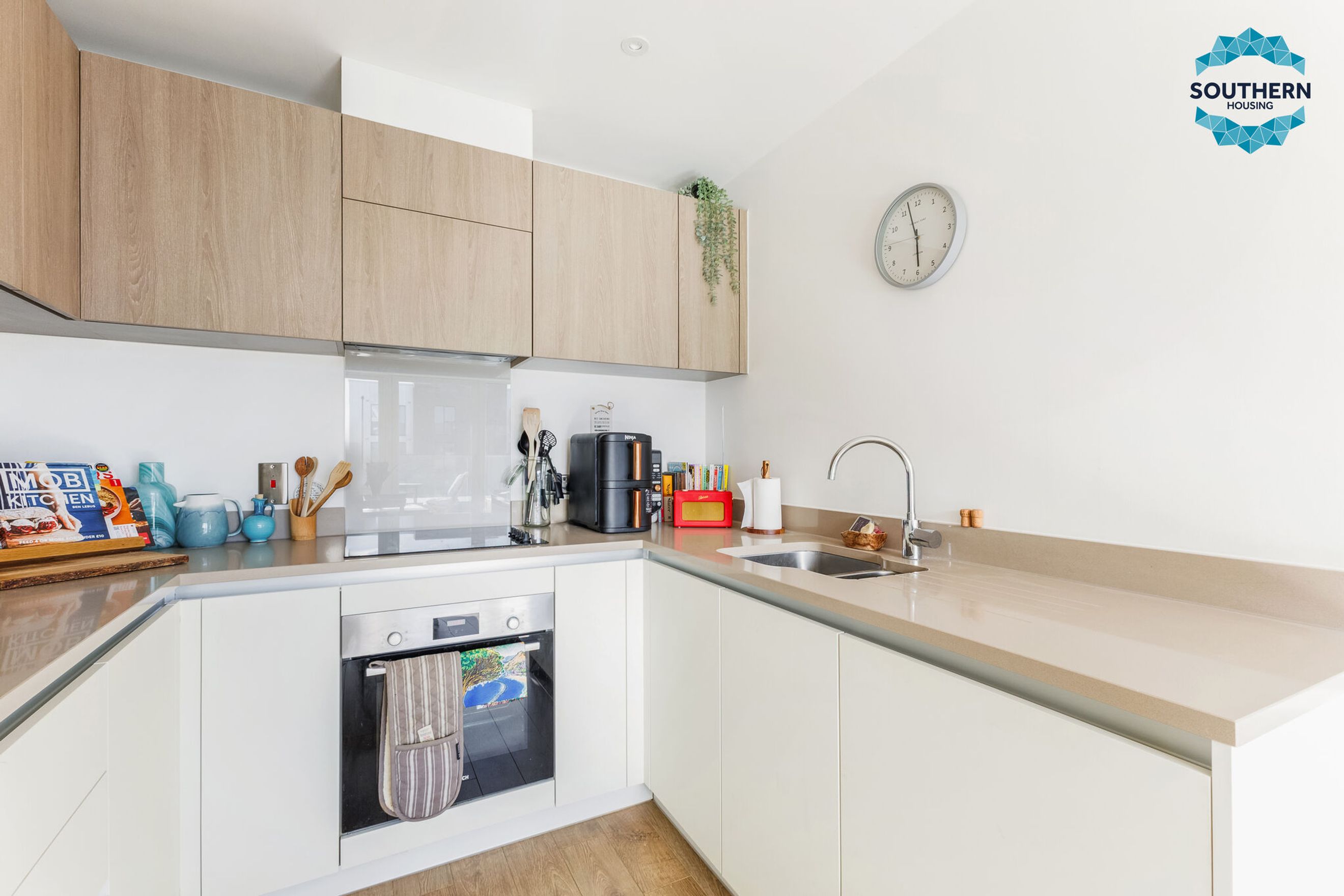 Step into a bright and welcoming entrance hall, complete with a handy storage cupboard. The heart of the home is a generous open-plan living area, thoughtfully laid out to combine the lounge, dining space, and kitchen. South-facing windows on the sixth floor provide elevated views and flood the space with natural light, creating a warm and inviting atmosphere.
