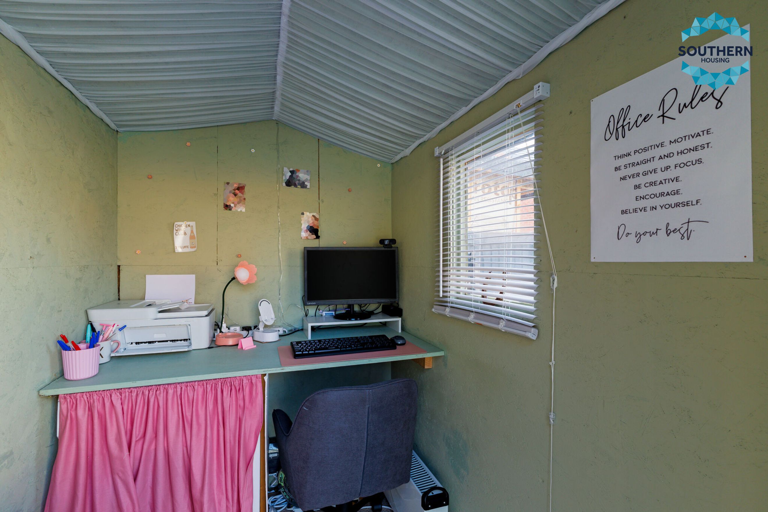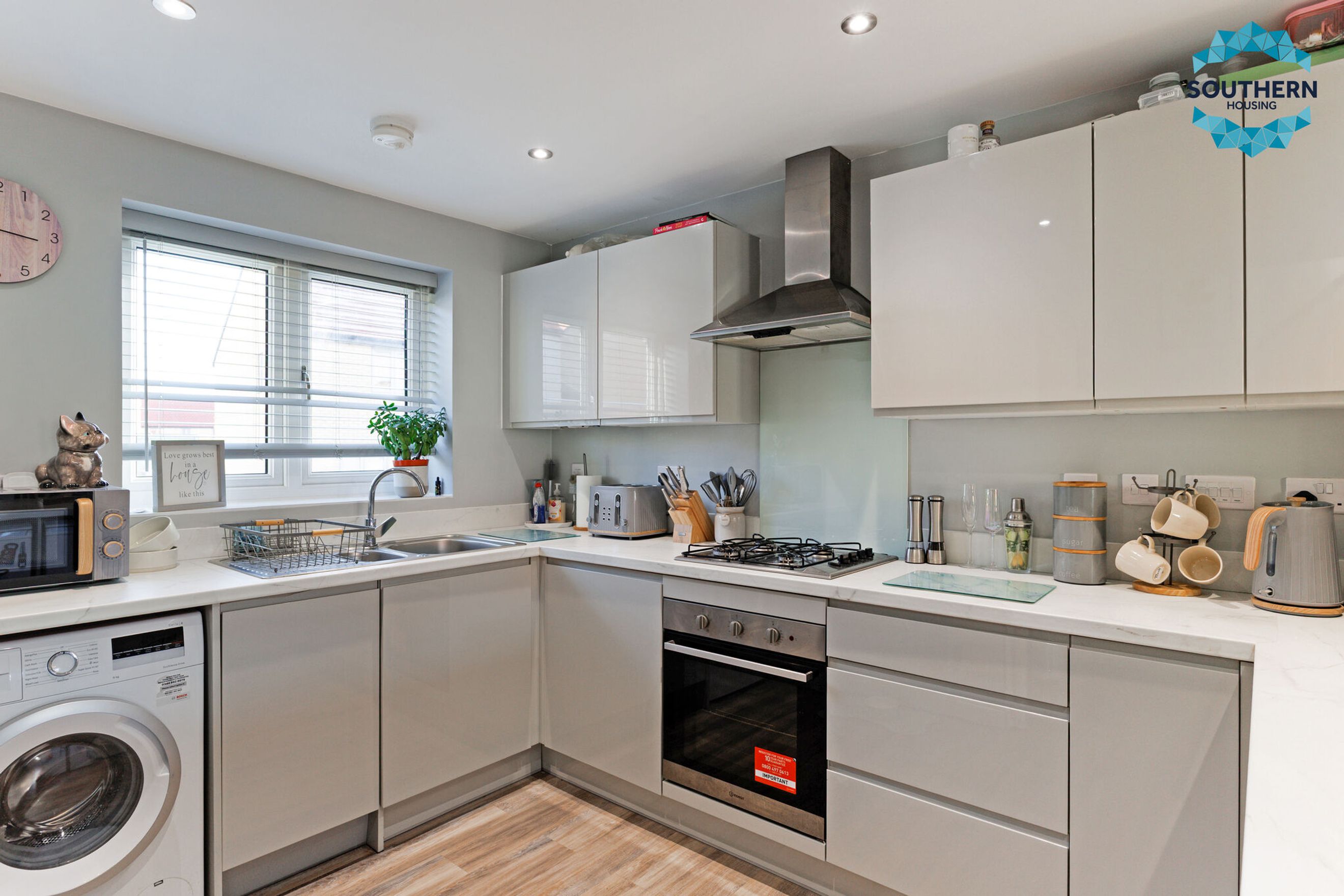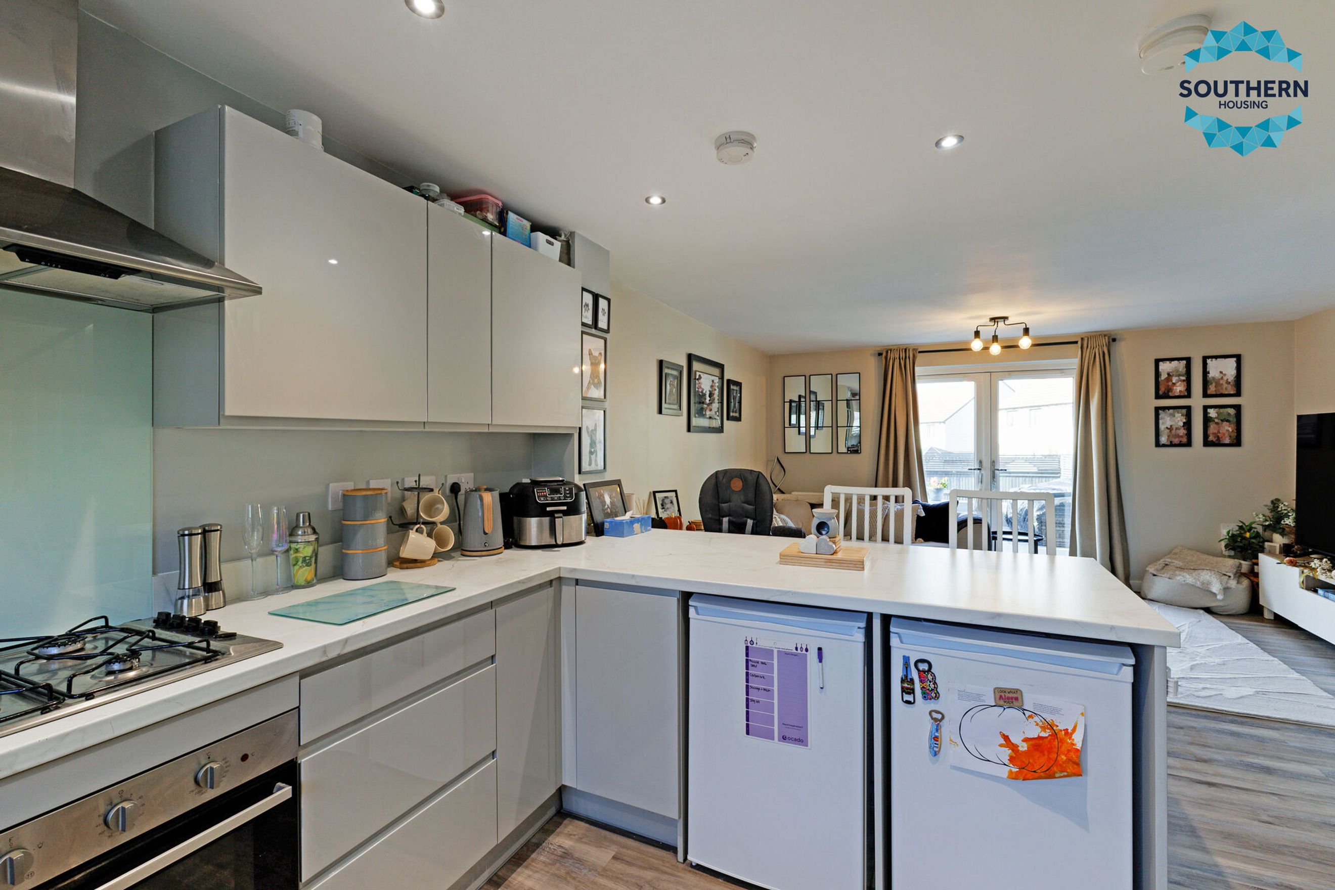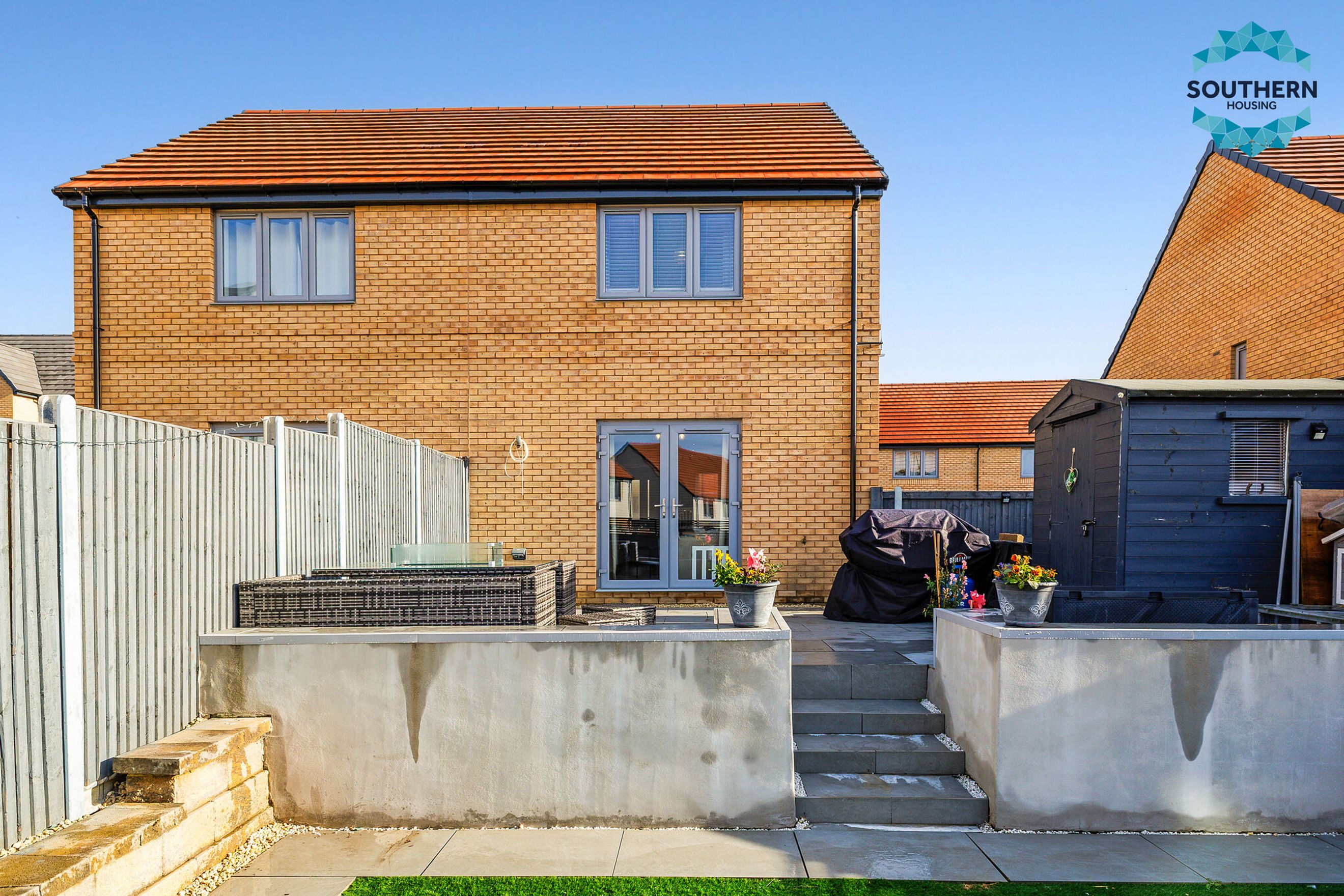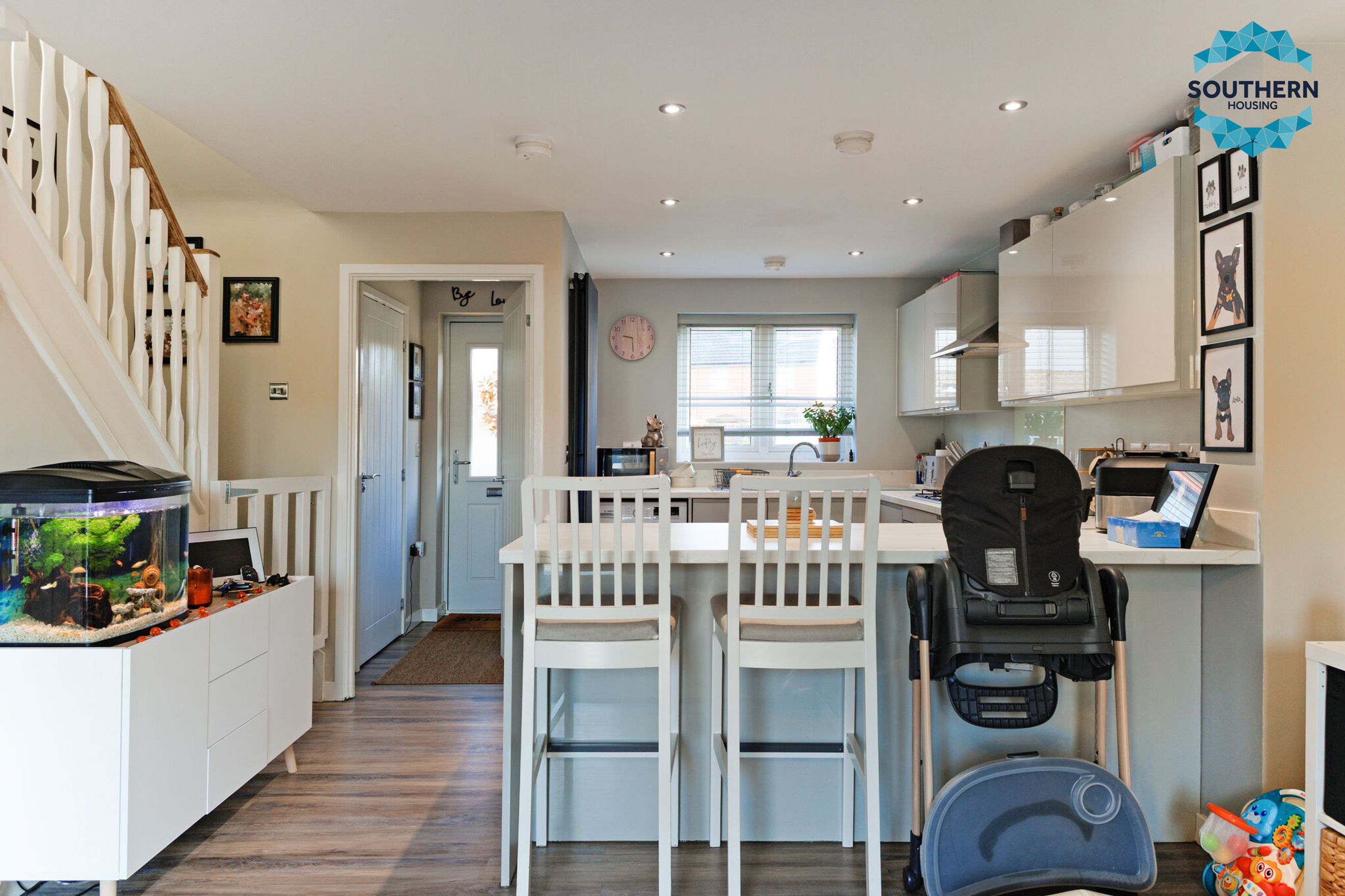 Situated in a quiet residential area of Wellingborough, this 2-bedroom semi-detached house offers modern comfort with practical convenience. The open-plan kitchen and living area features a stylish breakfast bar, creating a sociable hub for cooking and entertaining. A downstairs cloakroom adds everyday practicality. Double doors from the living area open onto a south-facing landscaped garden, providing a sunny outdoor space ideal for relaxation and al fresco dining. The garden also includes an insulated shed, currently used as an office, with electrical points accessible at both the lower and upper tiers for flexible use. Upstairs, you'll find two double bedrooms, each equipped with vented air conditioning for year-round comfort, and a family bathroom completes the accommodation. A side driveway accommodates parking for two cars. This home blends contemporary styling with the semi-detached charm you're looking for, in a peaceful, desirable neighbourhood.