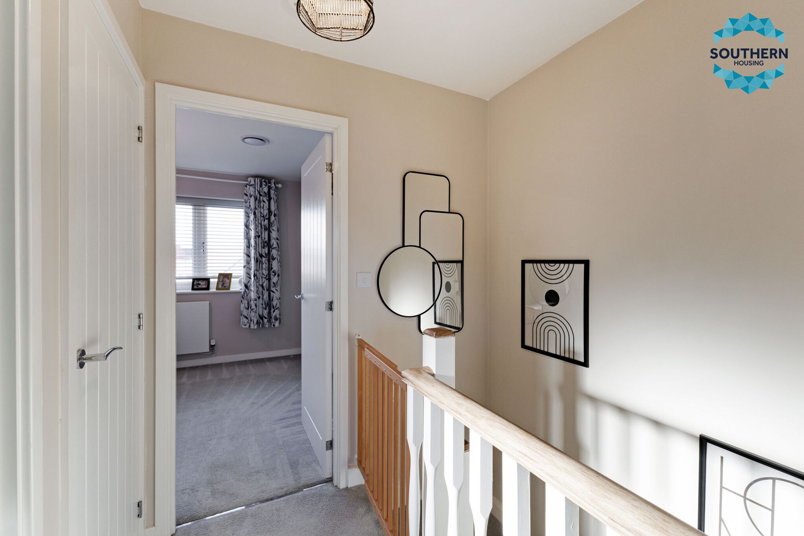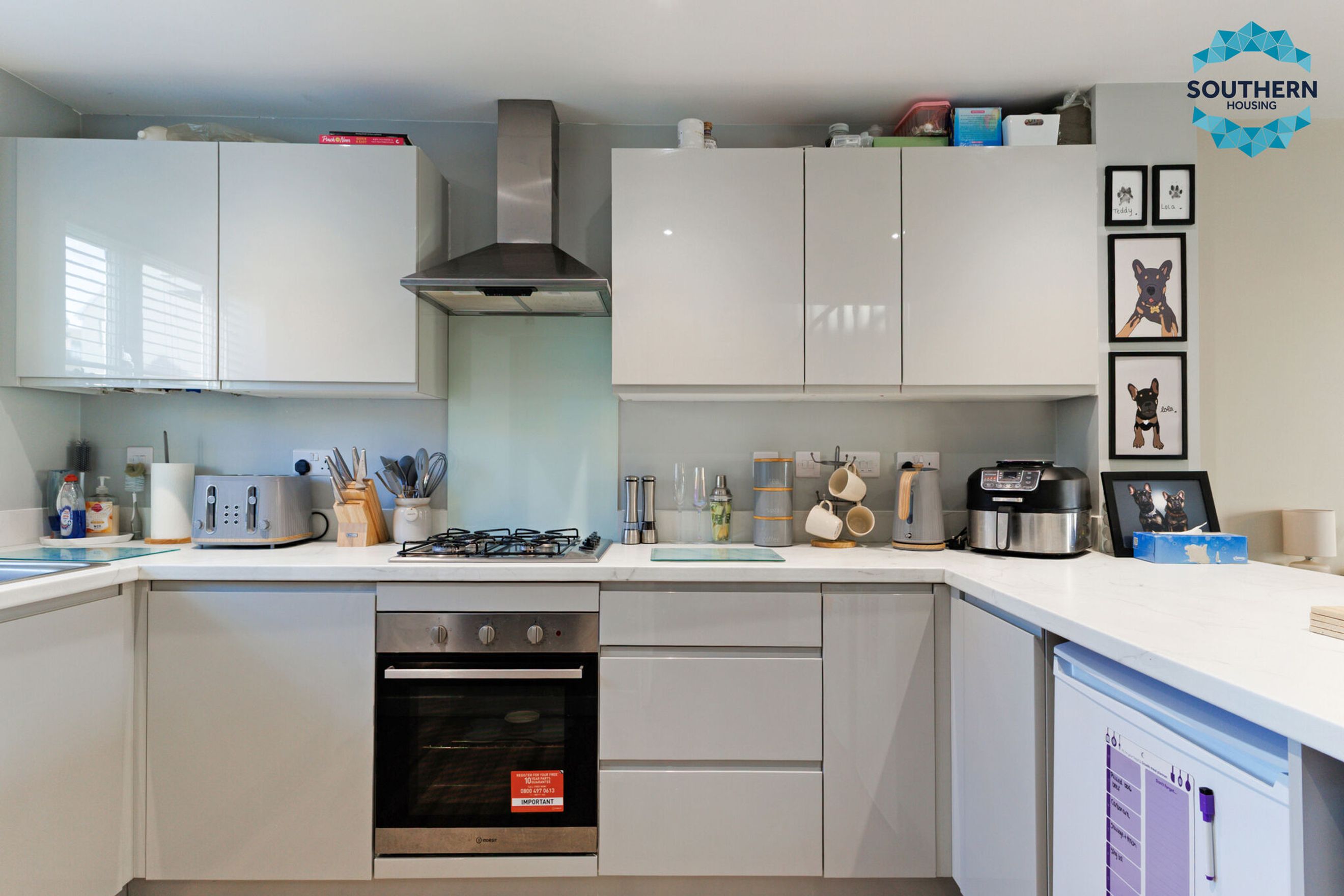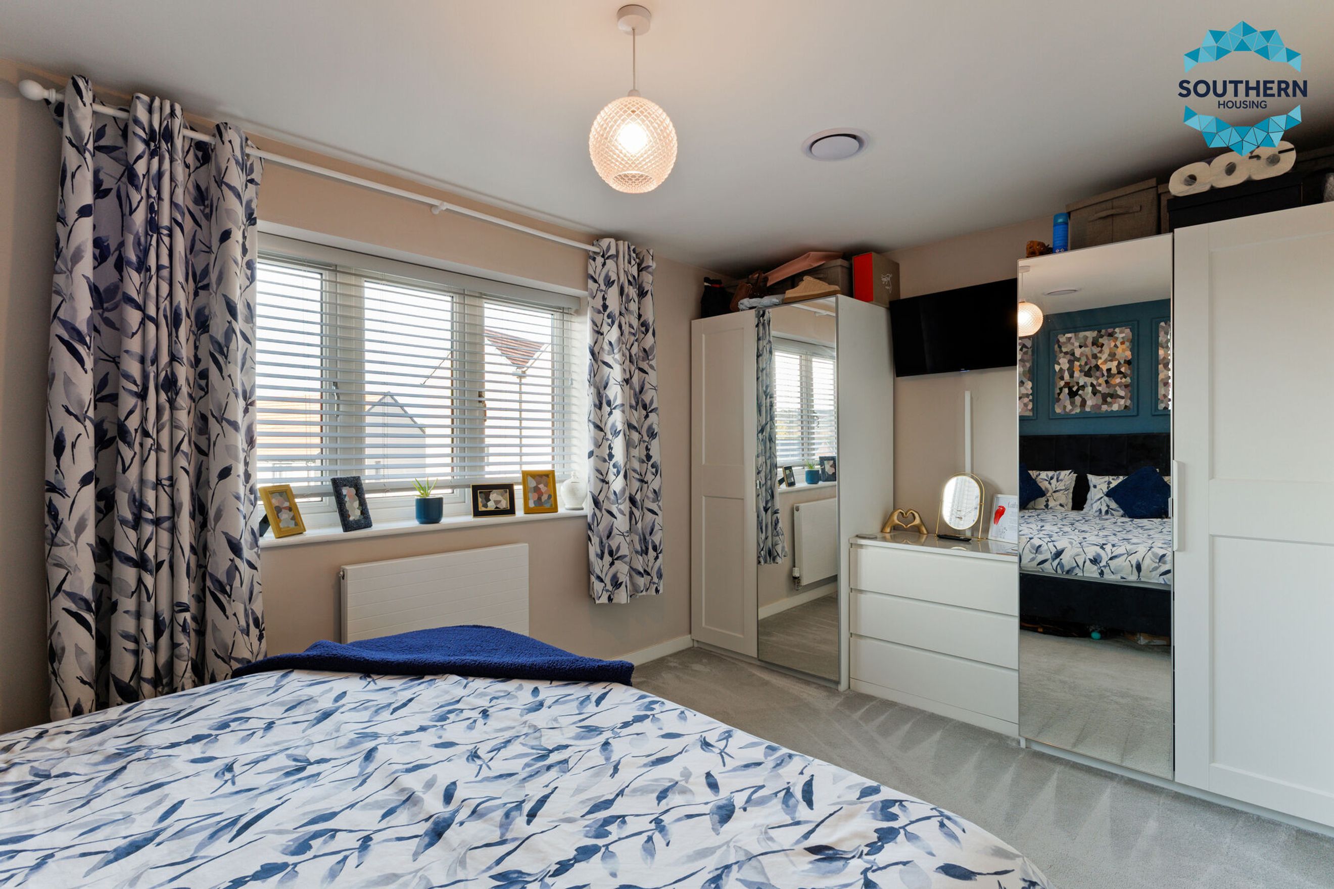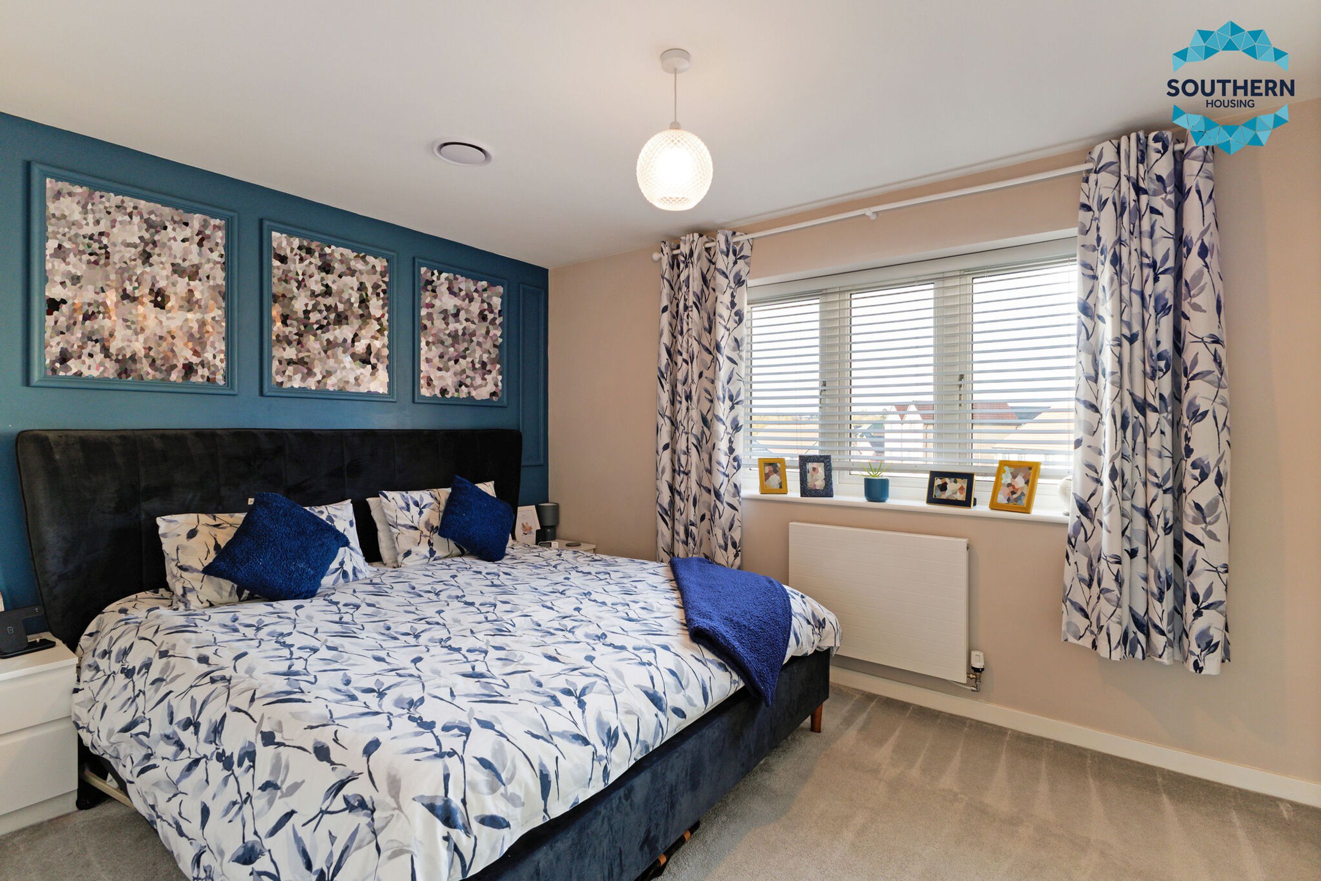 Situated in a quiet residential area of Wellingborough, this 2-bedroom semi-detached house offers modern comfort with practical convenience. The open-plan kitchen and living area features a stylish breakfast bar, creating a sociable hub for cooking and entertaining. A downstairs cloakroom adds everyday practicality. Double doors from the living area open onto a south-facing landscaped garden, providing a sunny outdoor space ideal for relaxation and al fresco dining. The garden also includes an insulated shed, currently used as an office, with electrical points accessible at both the lower and upper tiers for flexible use. Upstairs, you'll find two double bedrooms, each equipped with vented air conditioning for year-round comfort, and a family bathroom completes the accommodation. A side driveway accommodates parking for two cars. This home blends contemporary styling with the semi-detached charm you're looking for, in a peaceful, desirable neighbourhood.