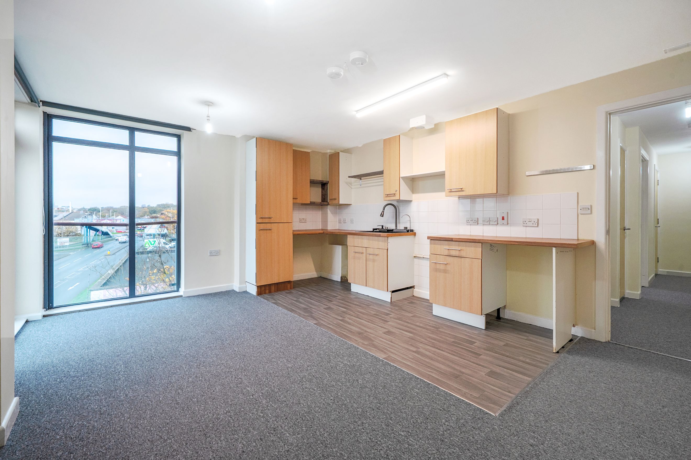 This spacious flat features an open-plan kitchen/dining area and living space and ample storage throughout. Alongside the two double bedrooms, there is a bathroom with bath tub and electric shower. The property has lots of light throughout with large double glazing windows in all of the rooms. The property has mains gas and electric with central heating.