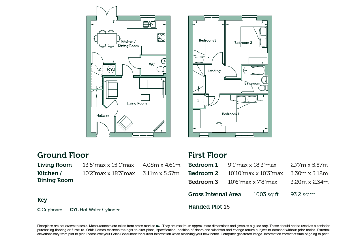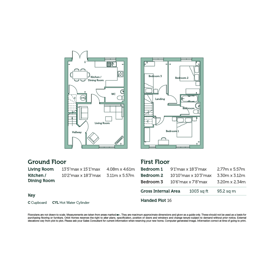 Computer Generated Image depicts the elevational treatments for plots 15 and 16. Actual plot positions are mid-terrace. Internal CGIs for illustrative purposes only and do not represent the layout and specification of this housetype. Please speak to a Sales Consultant.