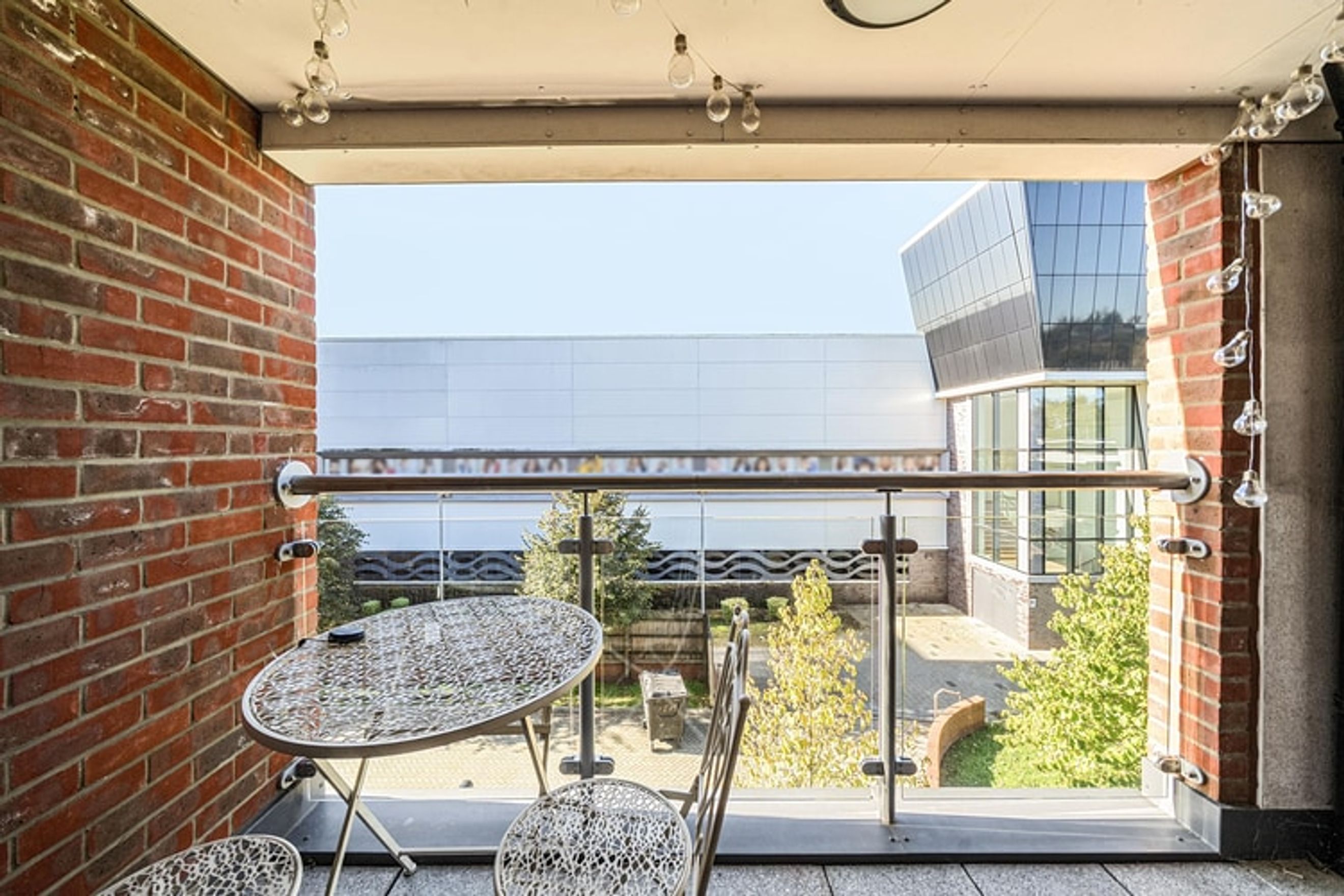 Outside, there is a private balcony, allocated parking, and a communal garden. Perfect for couples and small families.