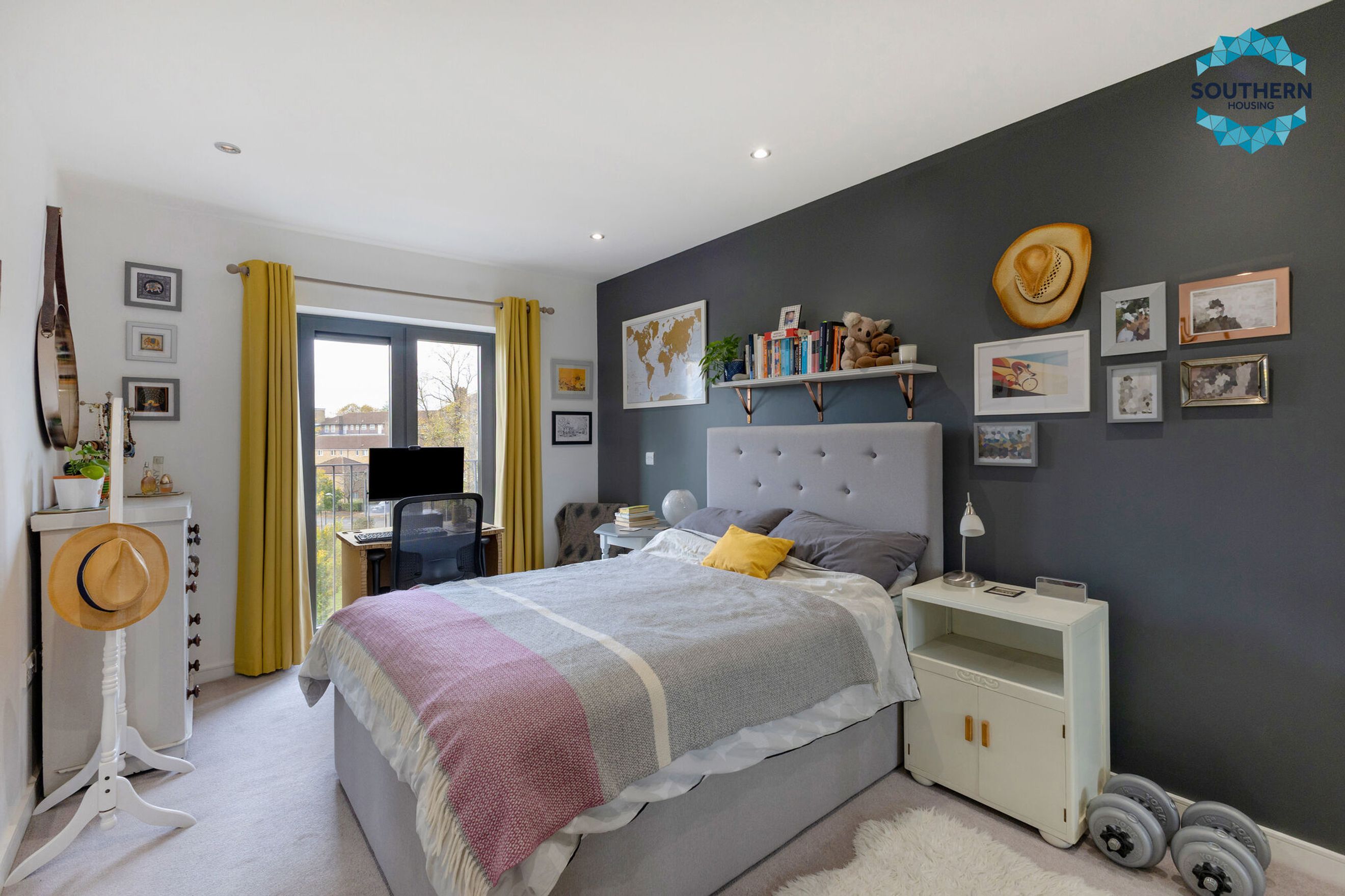 The spacious double bedroom offers a calm and comfortable retreat, complete with an integrated wardrobe to help maximise space and maintain a clean, uncluttered look. There's plenty of room for additional furnishings, and large windows ensure the space feels warm and inviting.