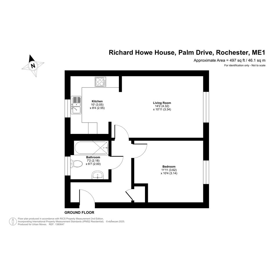A well-presented, ground-floor property which has a spacious reception room and a semi-open-plan kitchen with attractive units. There is a good-sized bedroom and a naturally-lit bathroom. Richard Howe House has a communal rear garden and energy-efficiency ratings are good, thanks to well insulated walls, double glazed windows and gas central heating. The flat comes with use of a parking space plus Rochester and Chatham town centres, for their railway stations, shopping facilities and other amenities, can also be reached via bicycle or local bus.