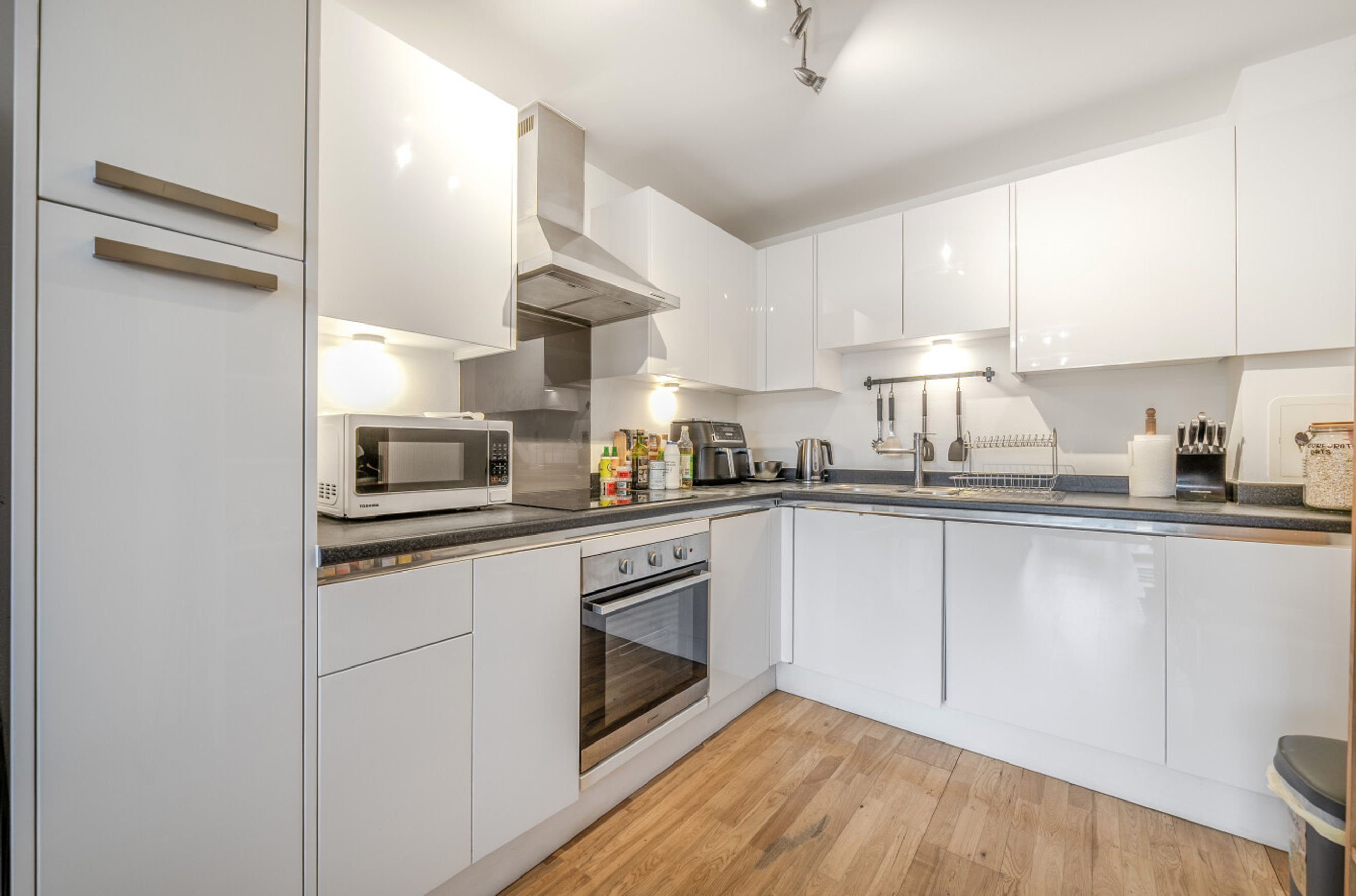 Located in the sought-after New Capital Quay development, this third-floor one-bedroom apartment offers a bright and spacious layout ideal for an individual or couple. The home features an open-plan kitchen and reception, complete with integrated appliances and ample storage. A modern four-piece bathroom suite, hallway storage cupboard housing the boiler, and a large private balcony create a perfect blend of comfort and practicality. The property benefits from a secure communal entrance with entry system, lift access with wheelchair-friendly design, and access to a well-maintained communal garden.