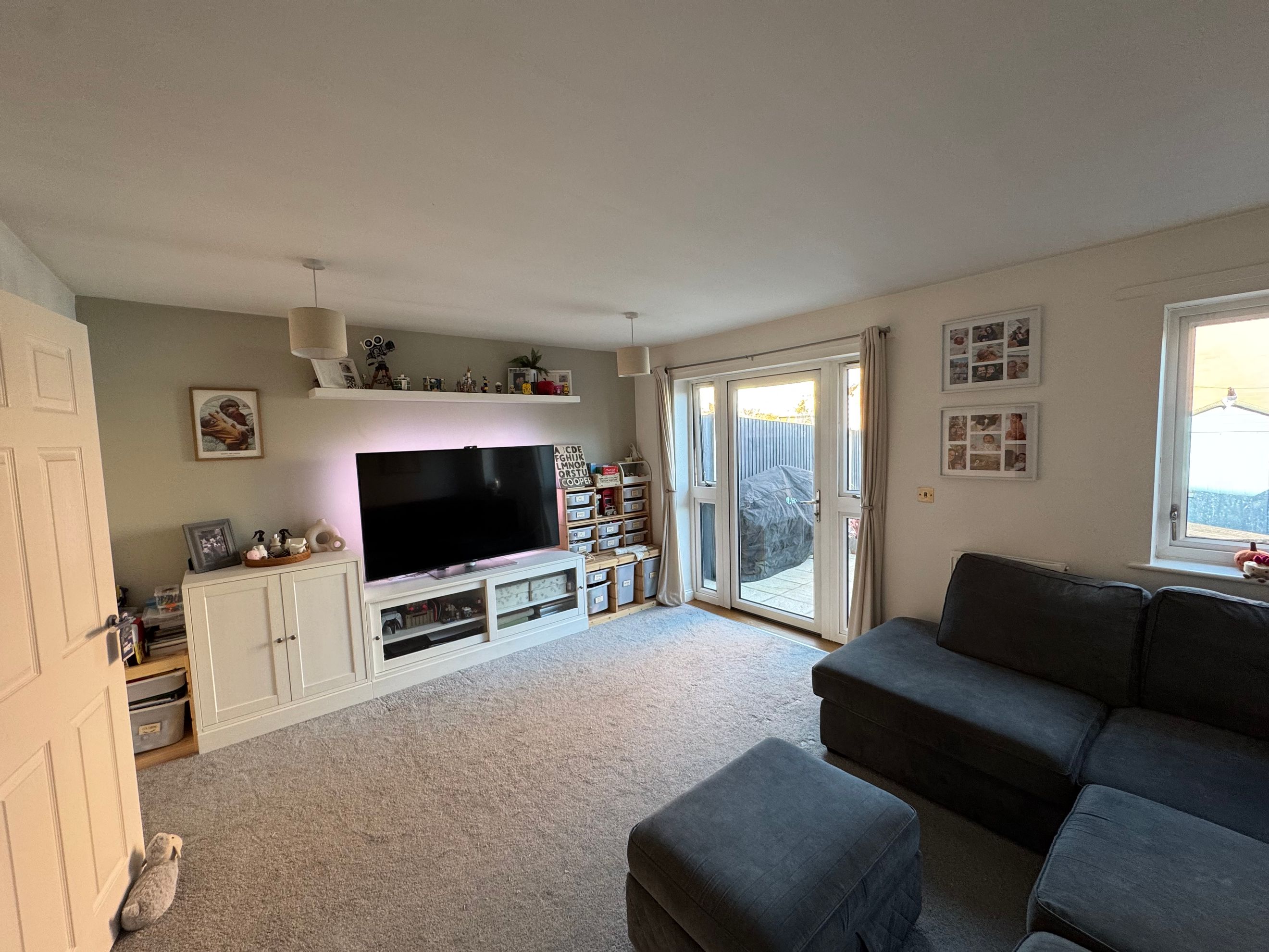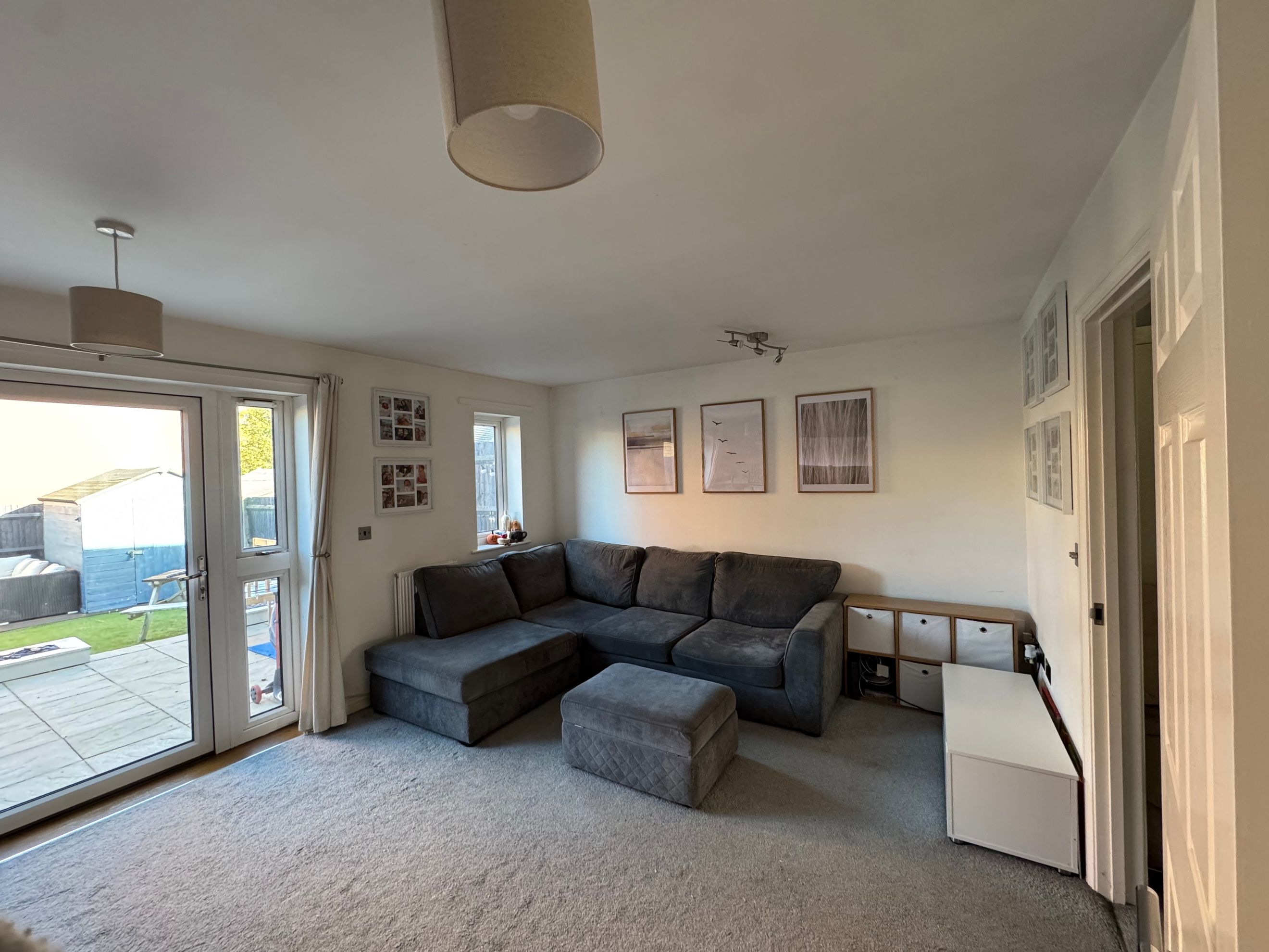 To the rear, a spacious living room opens onto the garden, providing room for both seating and dining.