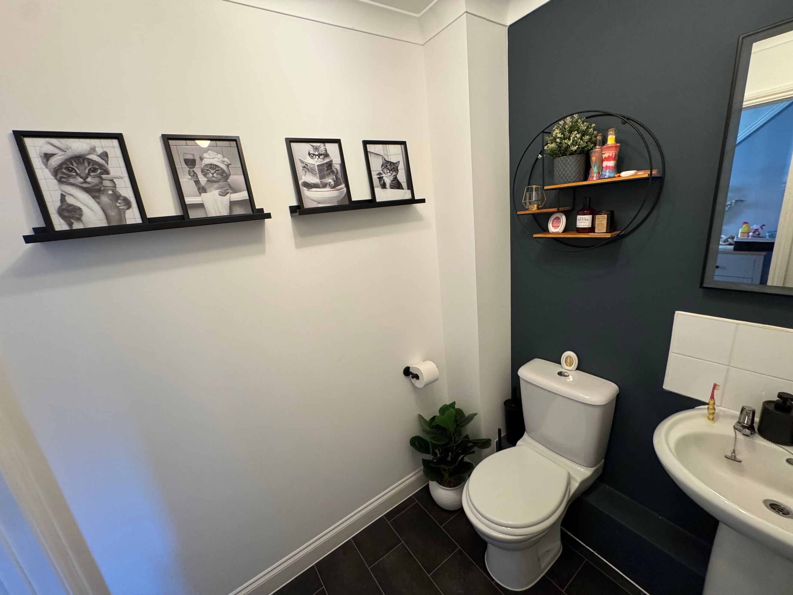 The ground floor features a modern fitted kitchen with space for a washing machine and dishwasher, a downstairs WC, and useful under-stair storage.