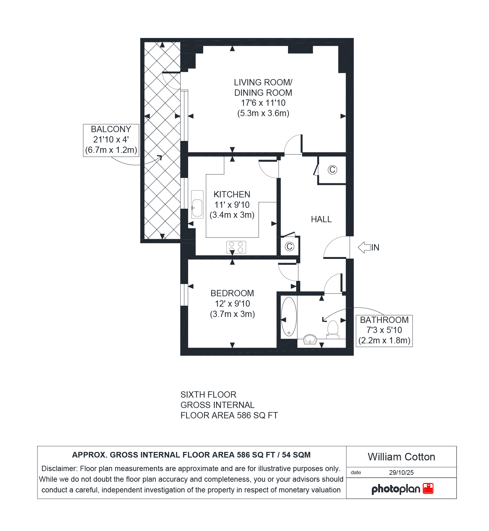 Stunning 6th floor one-bedroom flat with an exceptionally spacious private balcony offering amazing views, perfect for morning coffee, or simply enjoying the skyline. This bright and generously proportioned residence features an expansive living room area that flows seamlessly onto the balcony through large sliding doors, flooding the space with natural light and creating a versatile setting for relaxing or entertaining. A separate private kitchen space provides ample room for meal preparation and storage in a practical, well-designed layout. The tranquil bedroom serves as a peaceful retreat, complemented by a nice simple bathroom equipped with a full bathtub and overhead shower.