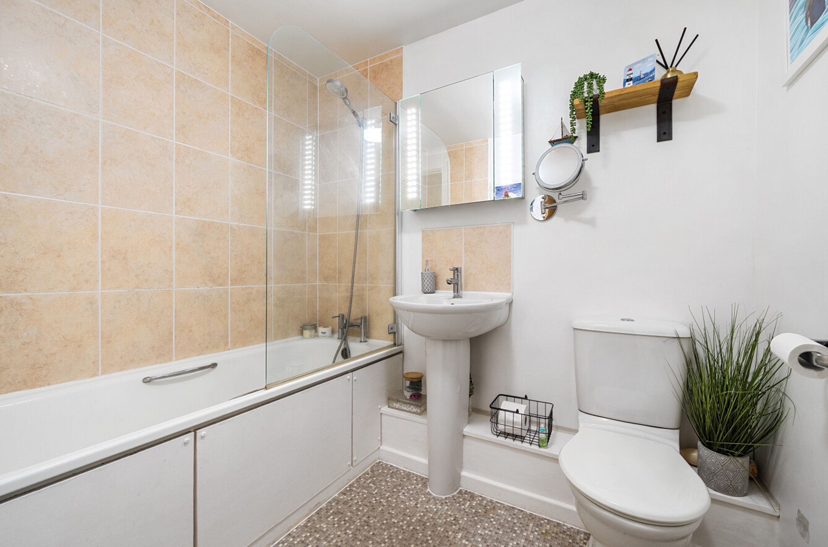 A great chance to buy a shared-ownership property in a desirable location close to the Thames. This spacious and smartly-presented, ground-floor apartment has a reception room with attractive flooring and a semi-open-plan kitchen. The bedroom includes two fitted, mirror-fronted wardrobes and there is a good-sized bathroom with limestone-style tiles. Pine House has a well-maintained roof terrace providing a view of the surrounding area plus the development also features a leafy communal courtyard. Imperial Wharf Station is just minutes away, as is the riverside Imperial Park and Chelsea Harbour Pier, for Thames Clipper services.