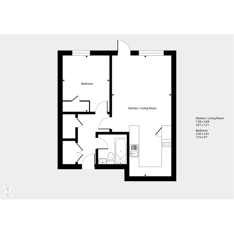 Featuring an open-plan kitchen / living area with doors leading out onto your patio. The kitchen is fitted with integrated appliances. There is one comfortable bedroom with a built-in wardrobe. The bathroom has a modern, white suite.