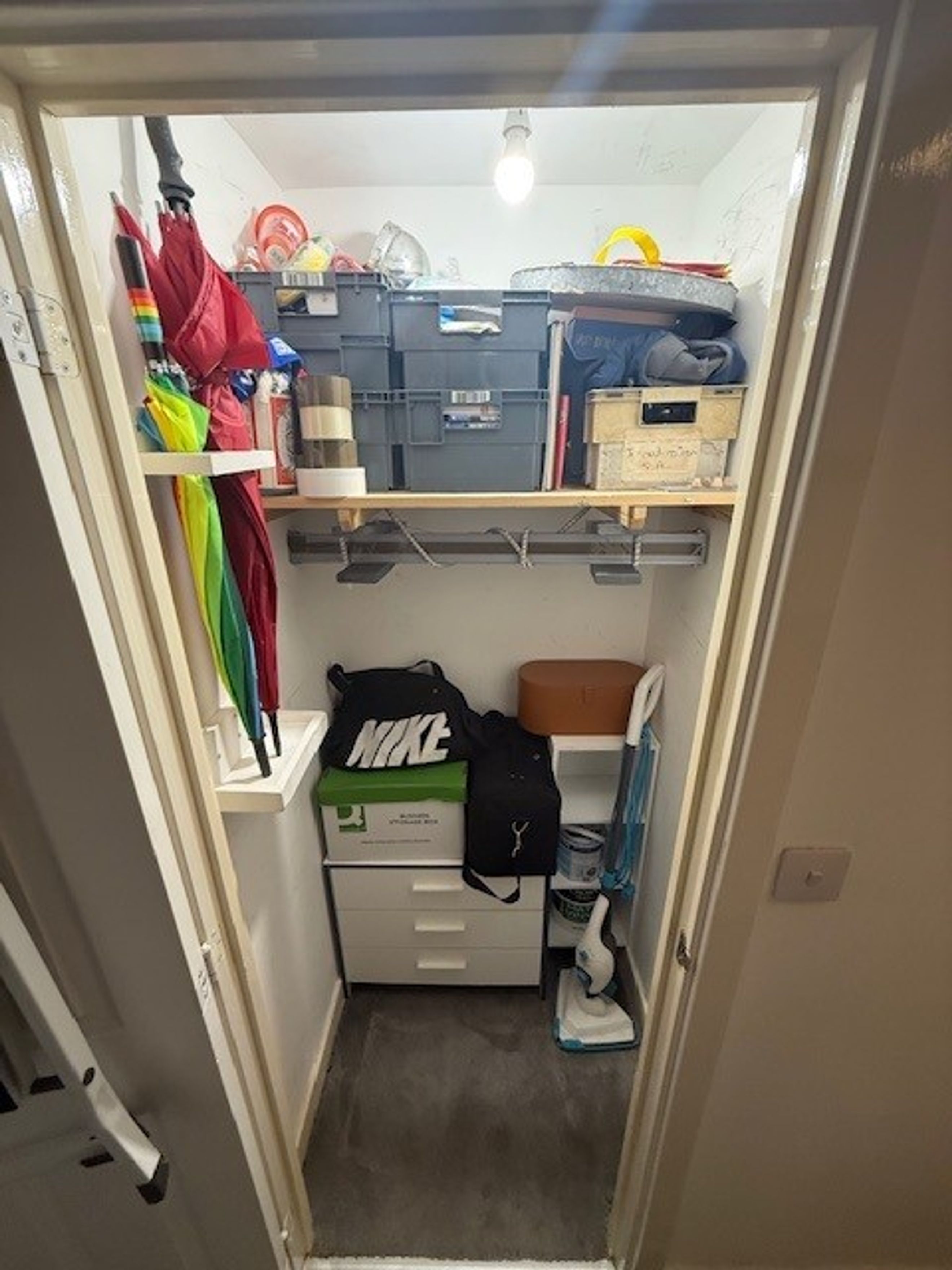 This large and spacious one bedroom apartment is located on the first floor and boasts a living room with big windows providing excellent interior light, kitchen, a large bathroom fitted with bath & shower, and a large bedroom which has been partitioned into 2, each side with a radiator, window, lighting and sockets, sharing the same access door. This property also benefits from excellent storage space including a walk-in wardrobe and a storage cupboard in the hallway.
