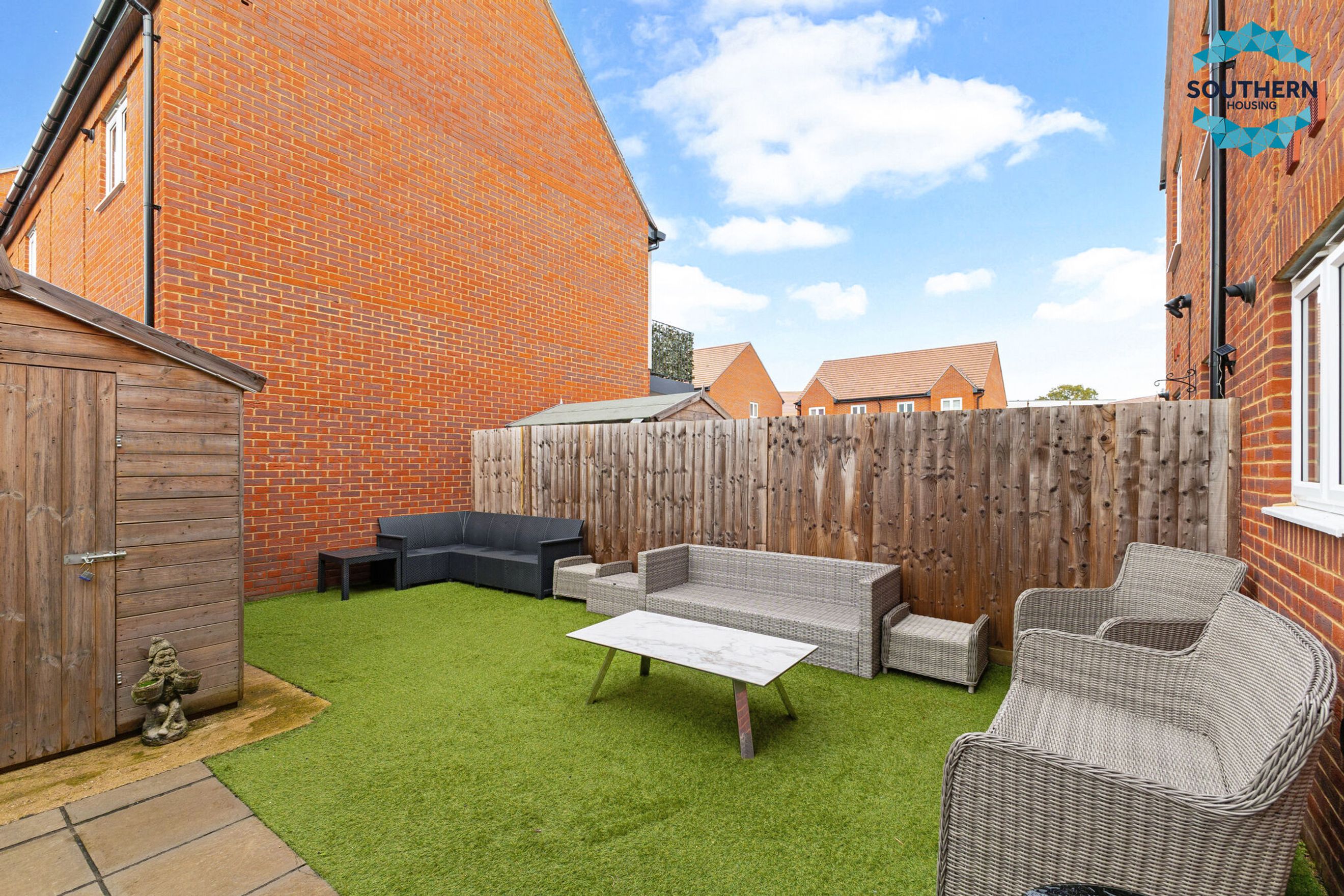 Externally, the property benefits from a private garden, allocated parking, and an outdoor shed for additional storage.