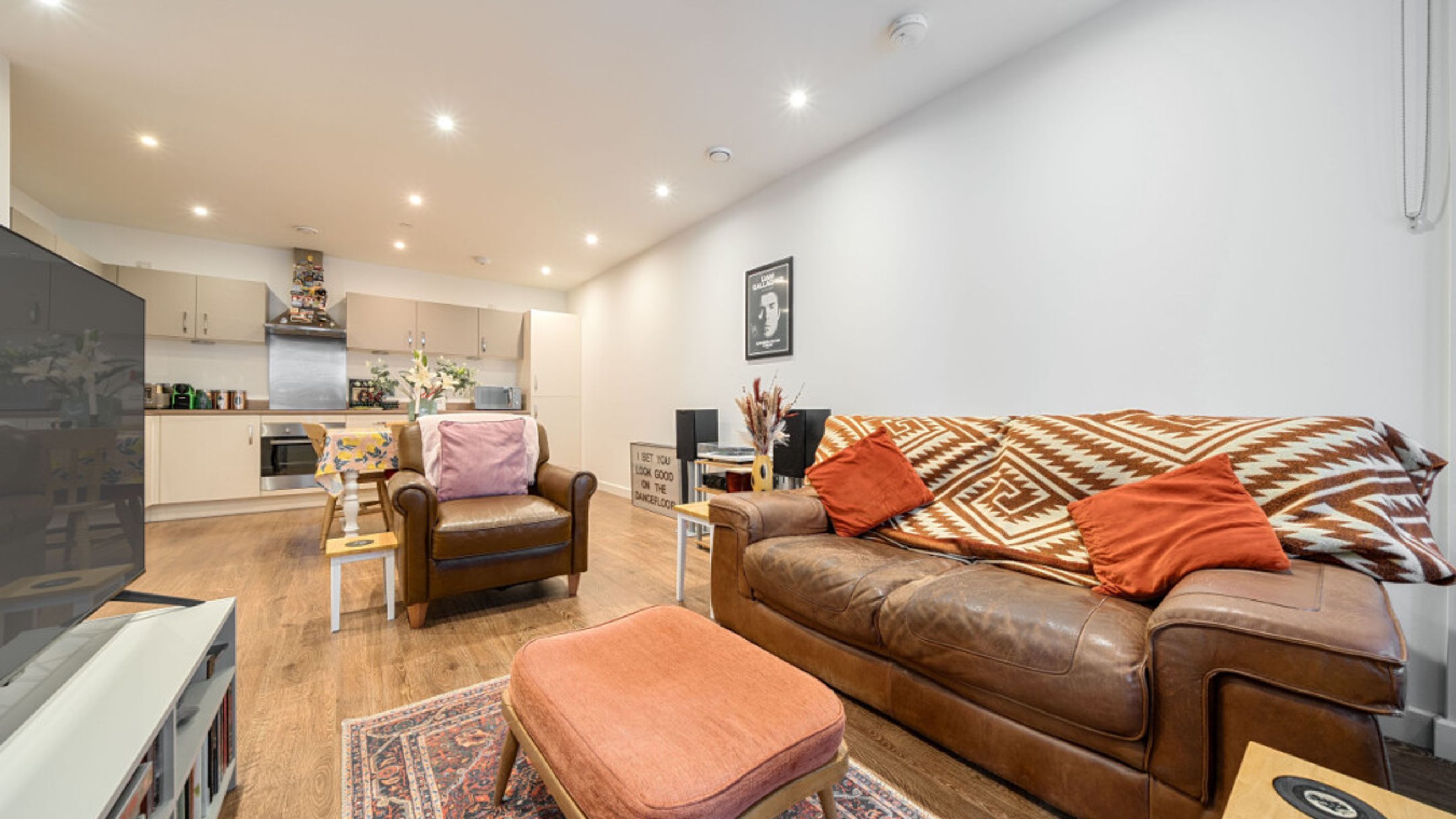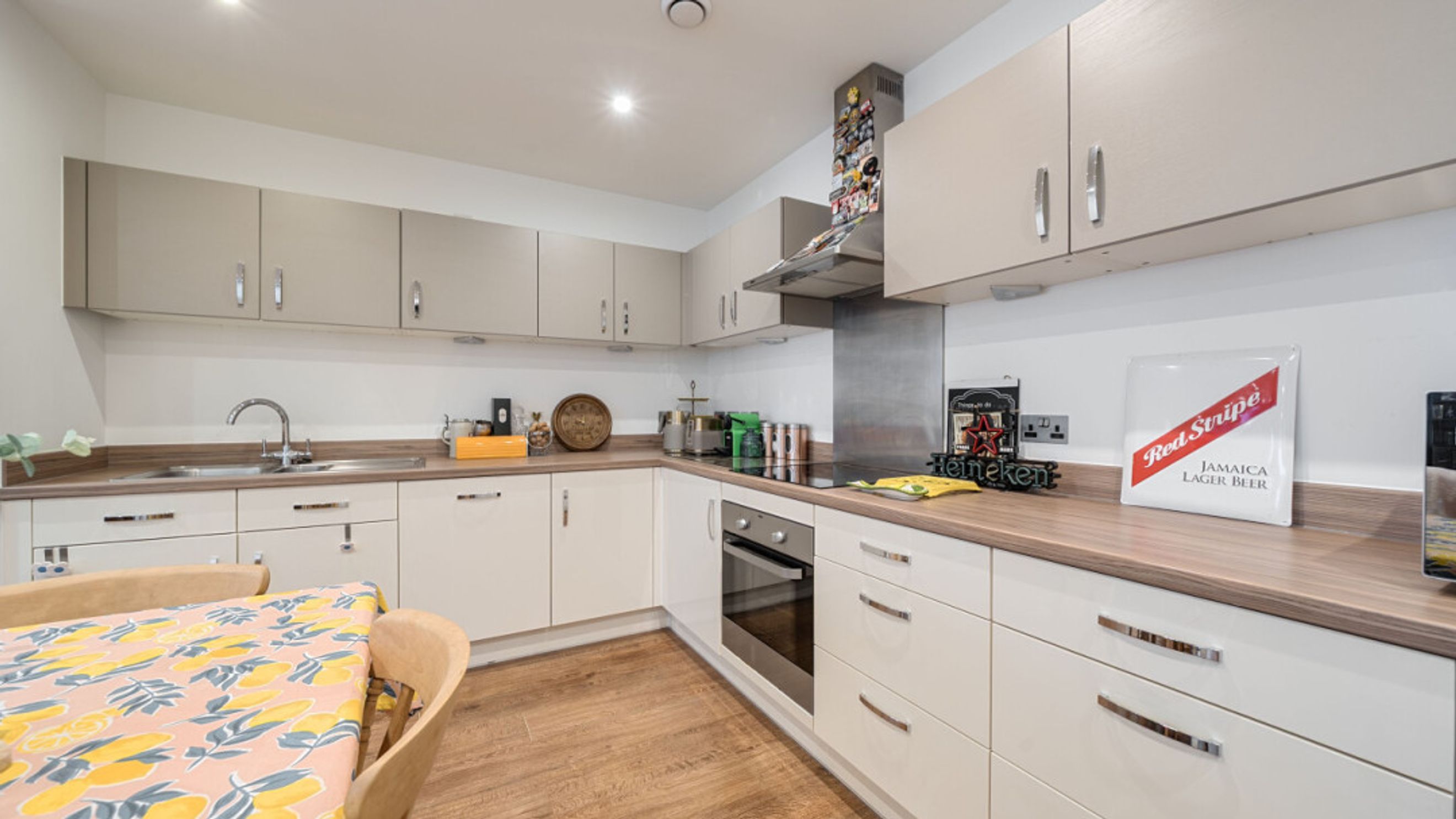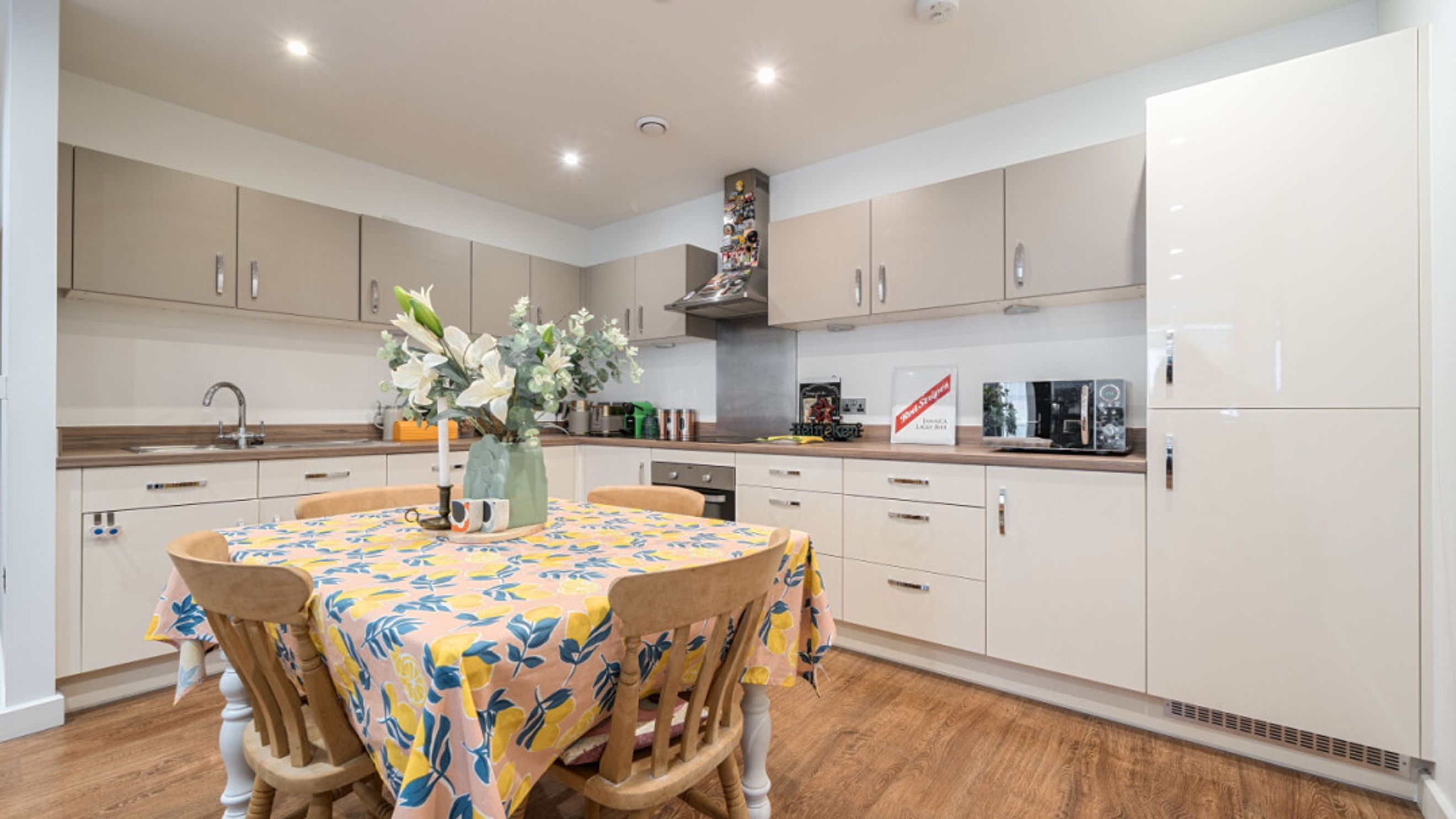 Enter this bright and spacious apartment through a hallway lined with storage/utility cupboards. The well proportioned open plan living area, incorporating a beautiful kitchen, leads to a south west winter garden overlooking the communal courtyard garden. Of the two spacious double bedrooms, one benefits from built-in storage cupboards and the other overlooks the winter garden. A contemporary bathroom completes the accommodation.