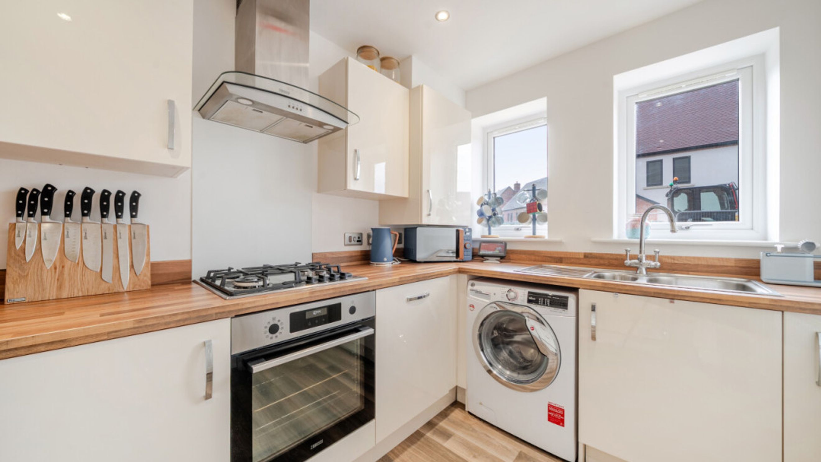 This bright and spacious semi detached house consists of a stylish kitchen and living area, flooded with natural light. The kitchen is fitted with brown wood effect worktop and benefits from integrated appliances including a fridge freezer, oven, hob, extractor fan and dishwasher. Spacious main double bedroom. Bright and airy second double bedroom. The bathroom comes complete with a shower over bath and a tile surround. Private driveway large enough for 2 vehicles