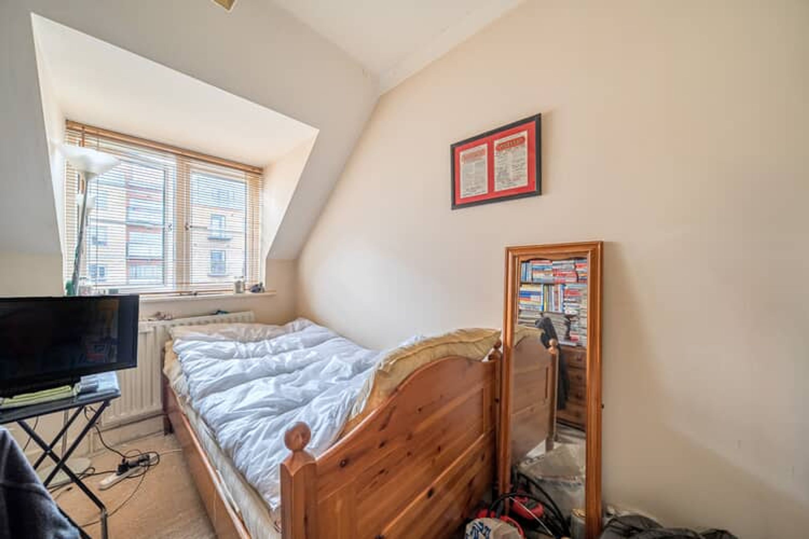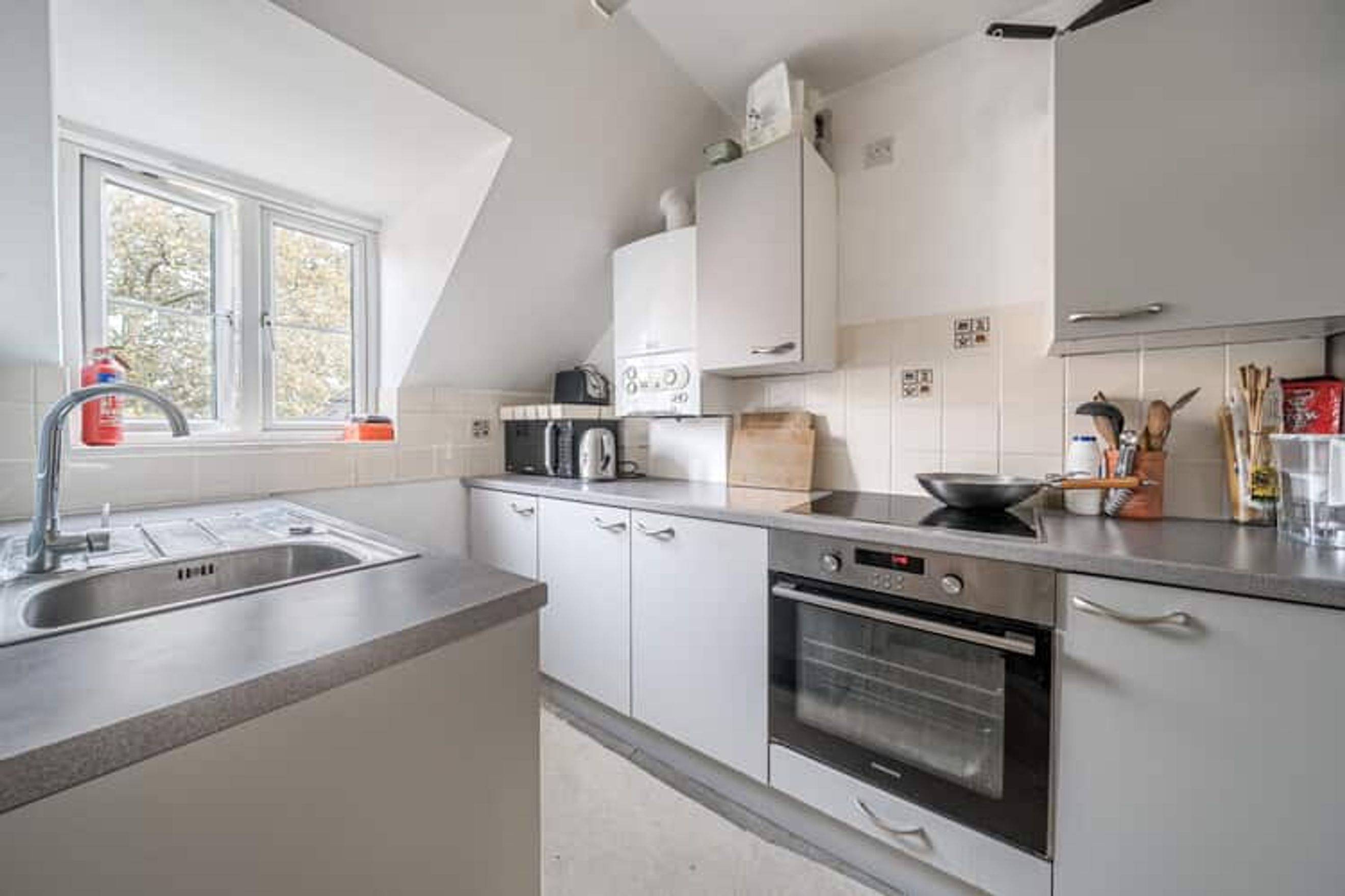 The property on the second floor comprises an entrance hall with a storage cupboard, a living room, a separate fitted kitchen, two bedrooms and a bathroom.