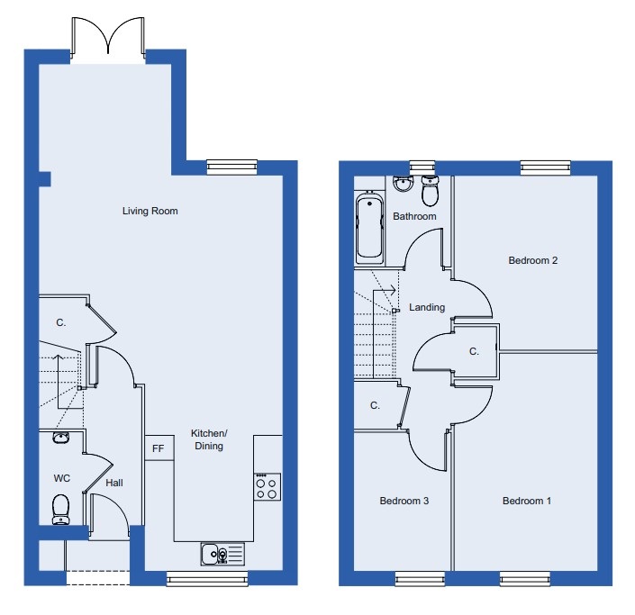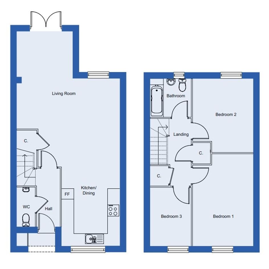The property itself is approximately 99m2 and comprises of an entrance hallway with a downstairs WC, open plan living / kitchen / dining area, family bathroom and three bedrooms. The property also benefits from a private garden with an outbuilding and two allocated parking spaces.
