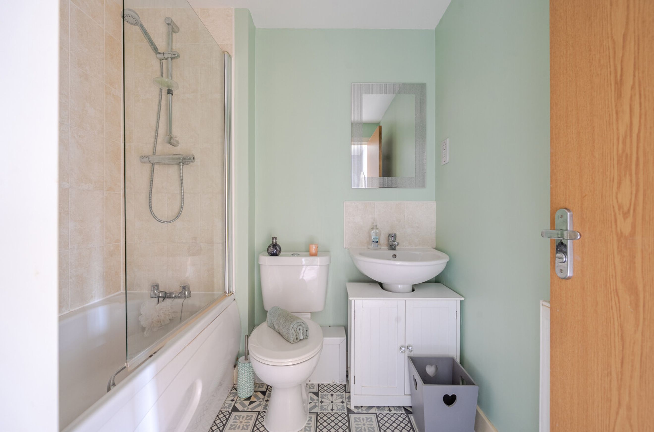 Upstairs, there are two comfortable bedrooms. The bathroom has a three-piece, white suite. You'll also have your own parking space.