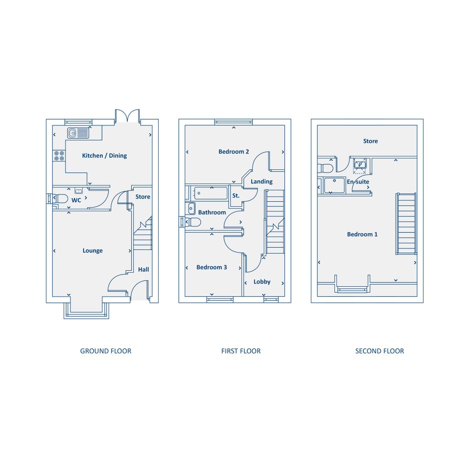 The Stanford homes have been designed to a very high specification and are perfect for growing families. These homes boast 2.5 floors - the ground floor has a contemporary kitchen/dining room with integrated cooking appliances to the rear with French doors leading out to the garden that flood the home with light, and a spacious separate lounge to the front . They also have a useful downstairs W/C, 2 well proportioned bedrooms on the first floor and a modern 3 piece bathroom, and a large master with en-suite on the second floor. There is extra storage on each level.