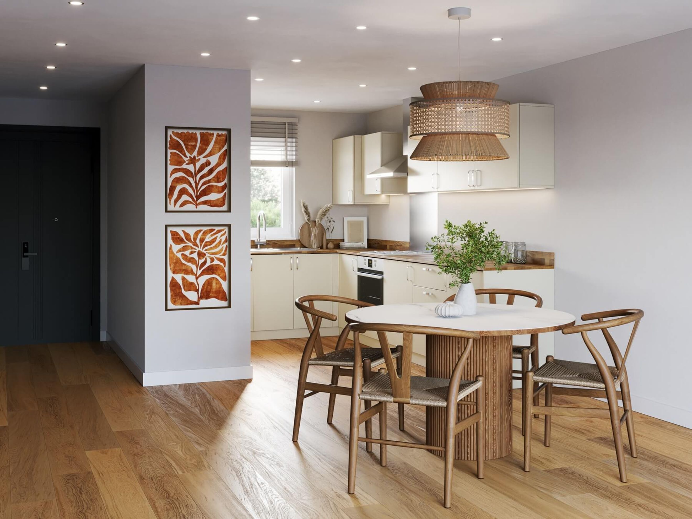 The three-bedroom home features an open plan living space on the ground floor with French doors out to the garden.