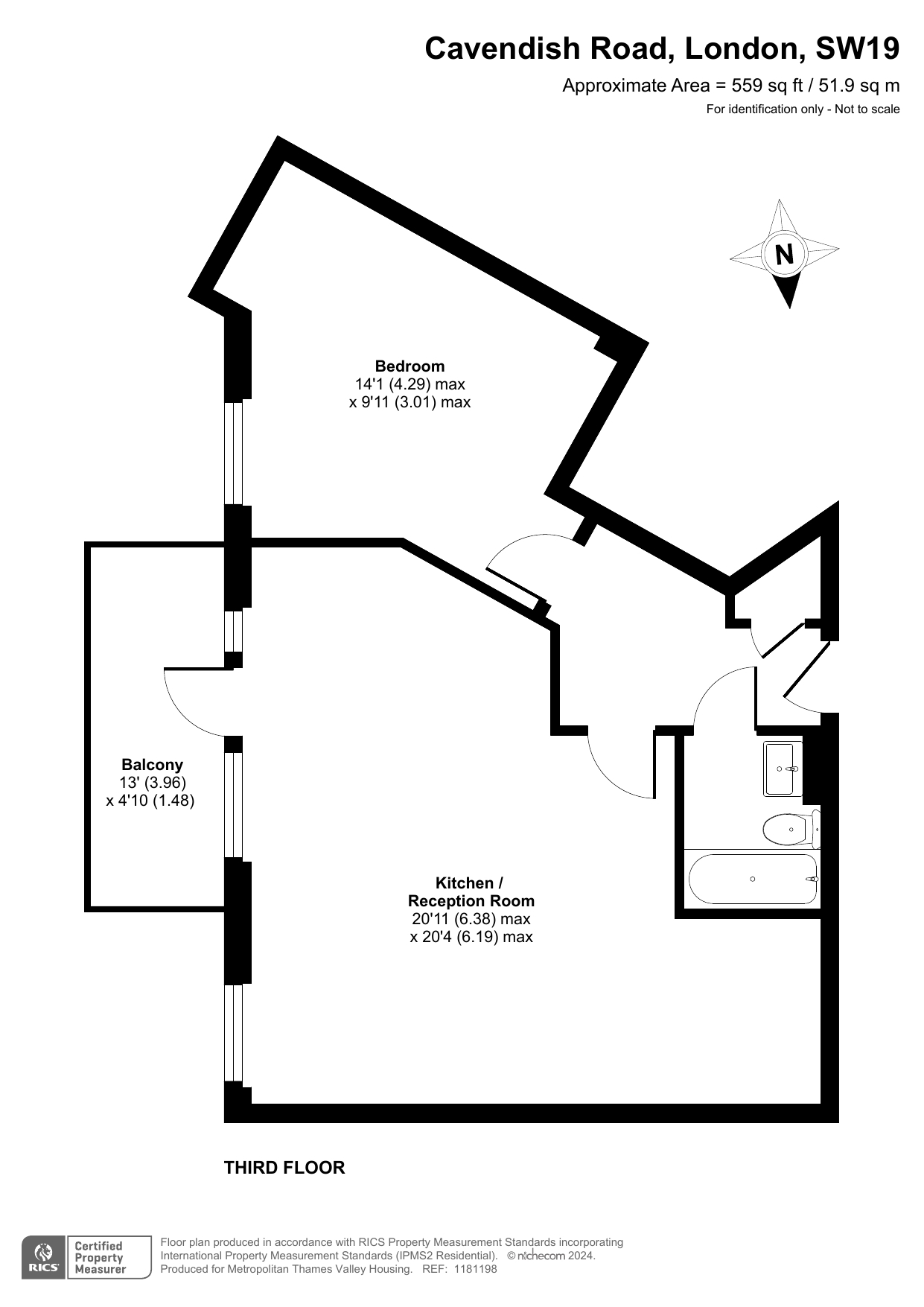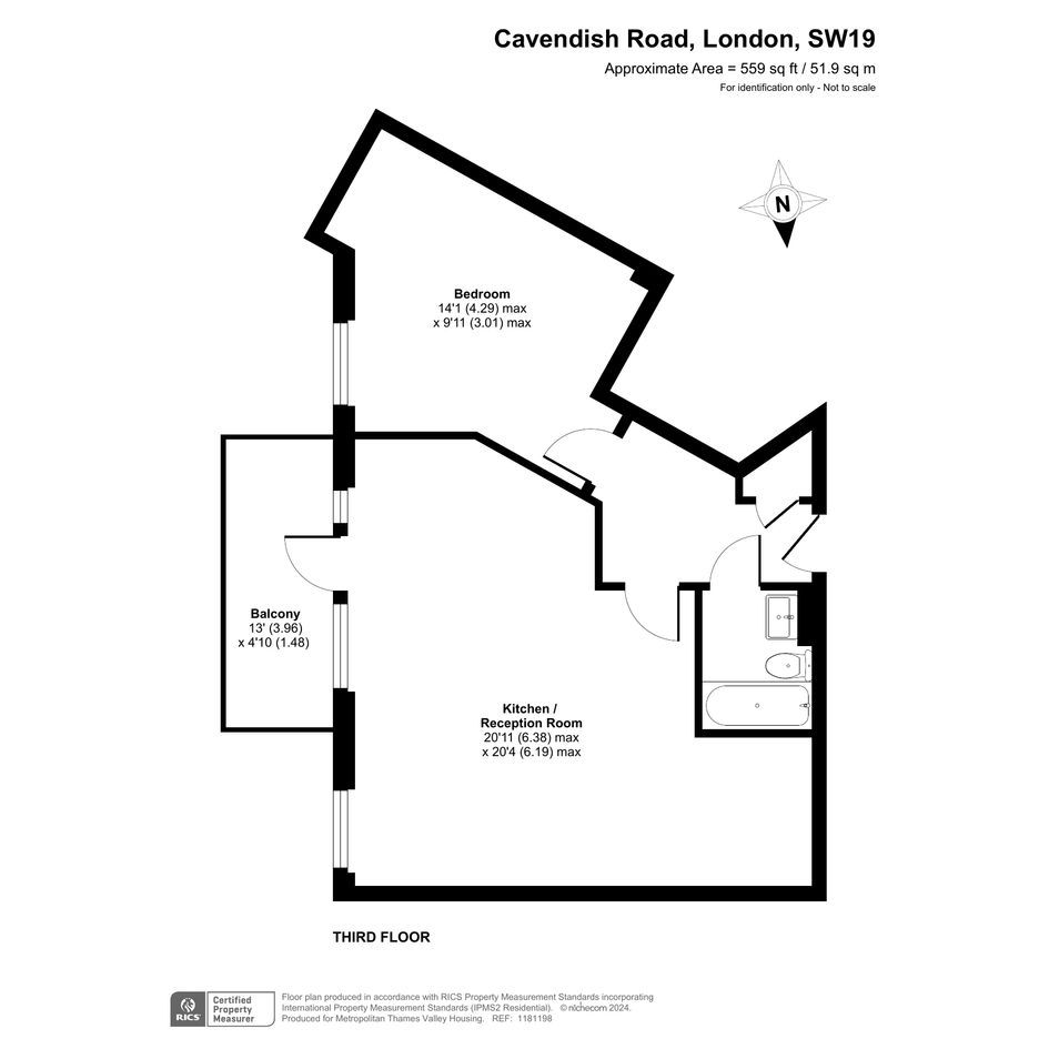 The property is located on the third floor, accessible by lift, and offers residents a private balcony.
