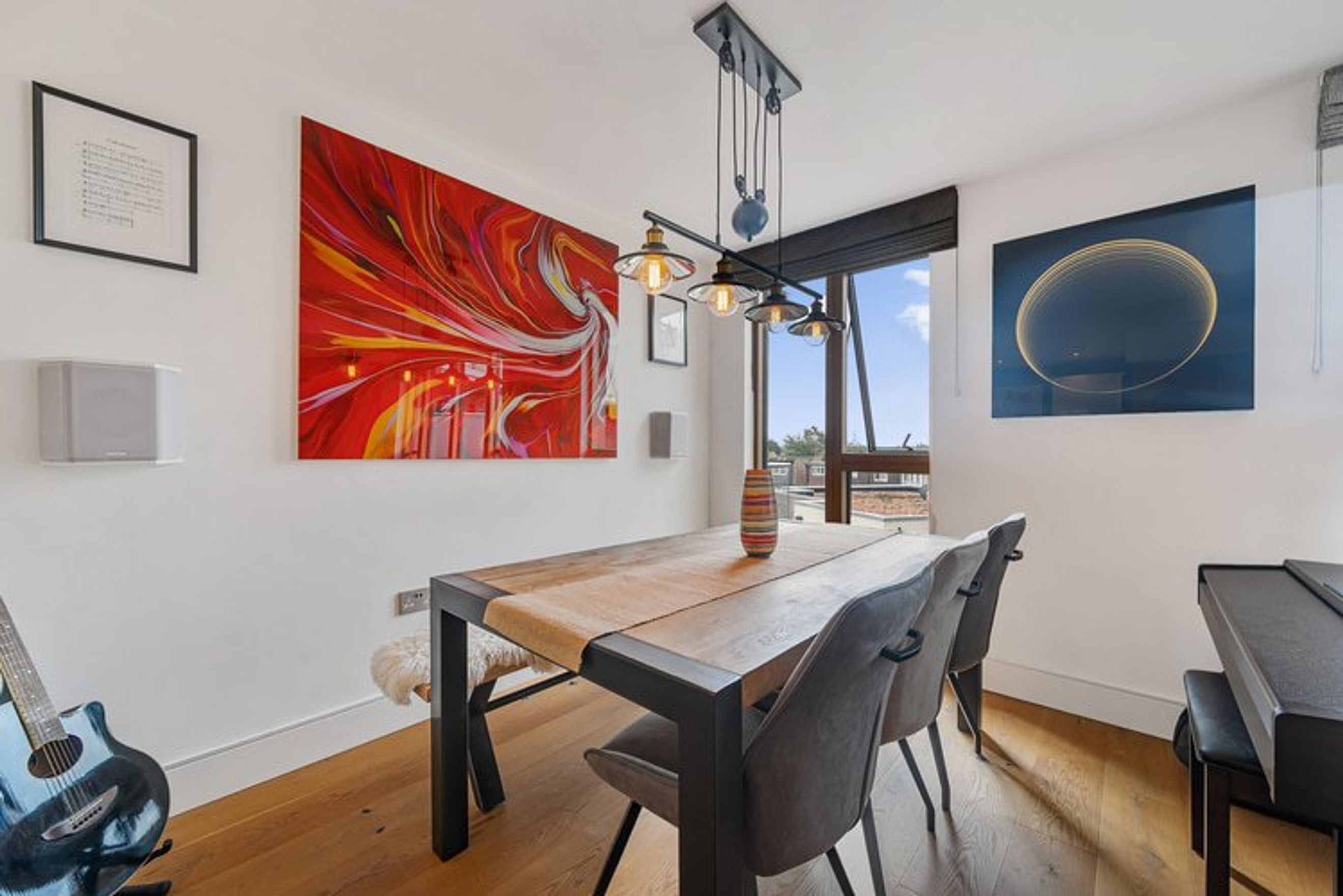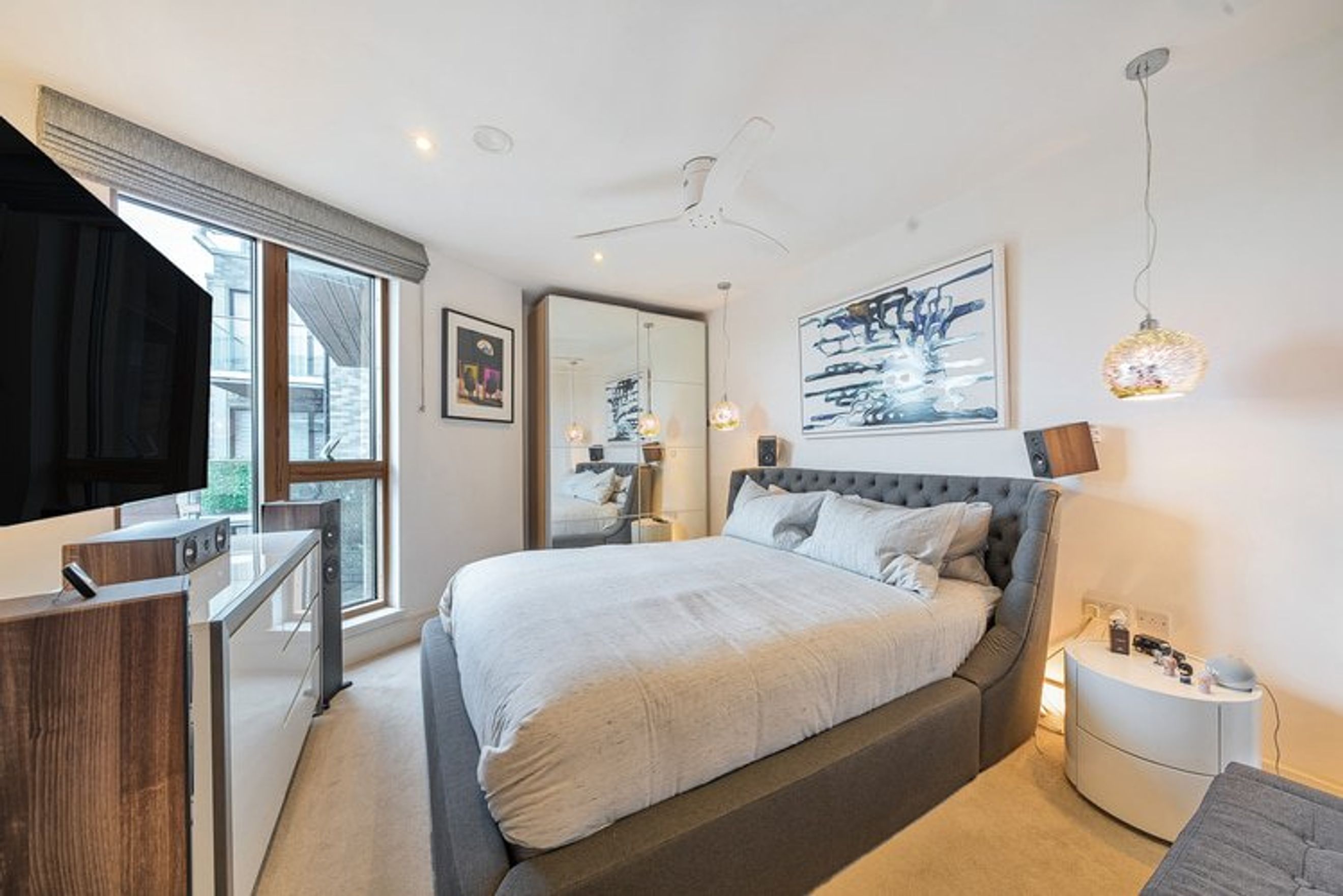 Heating and hot water are included in the service charge cost. Custom electric blinds and blackout blinds fitted in the bedroom and living area.