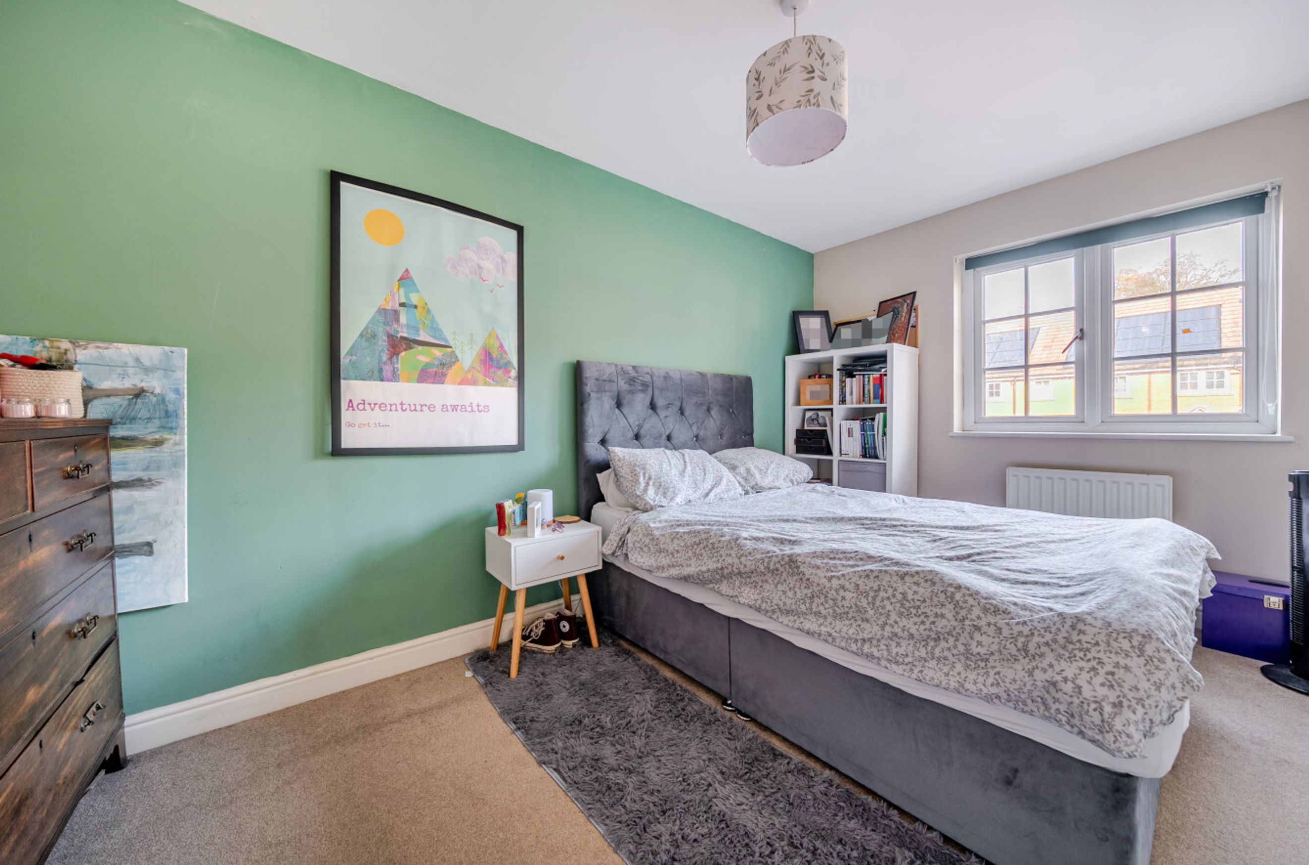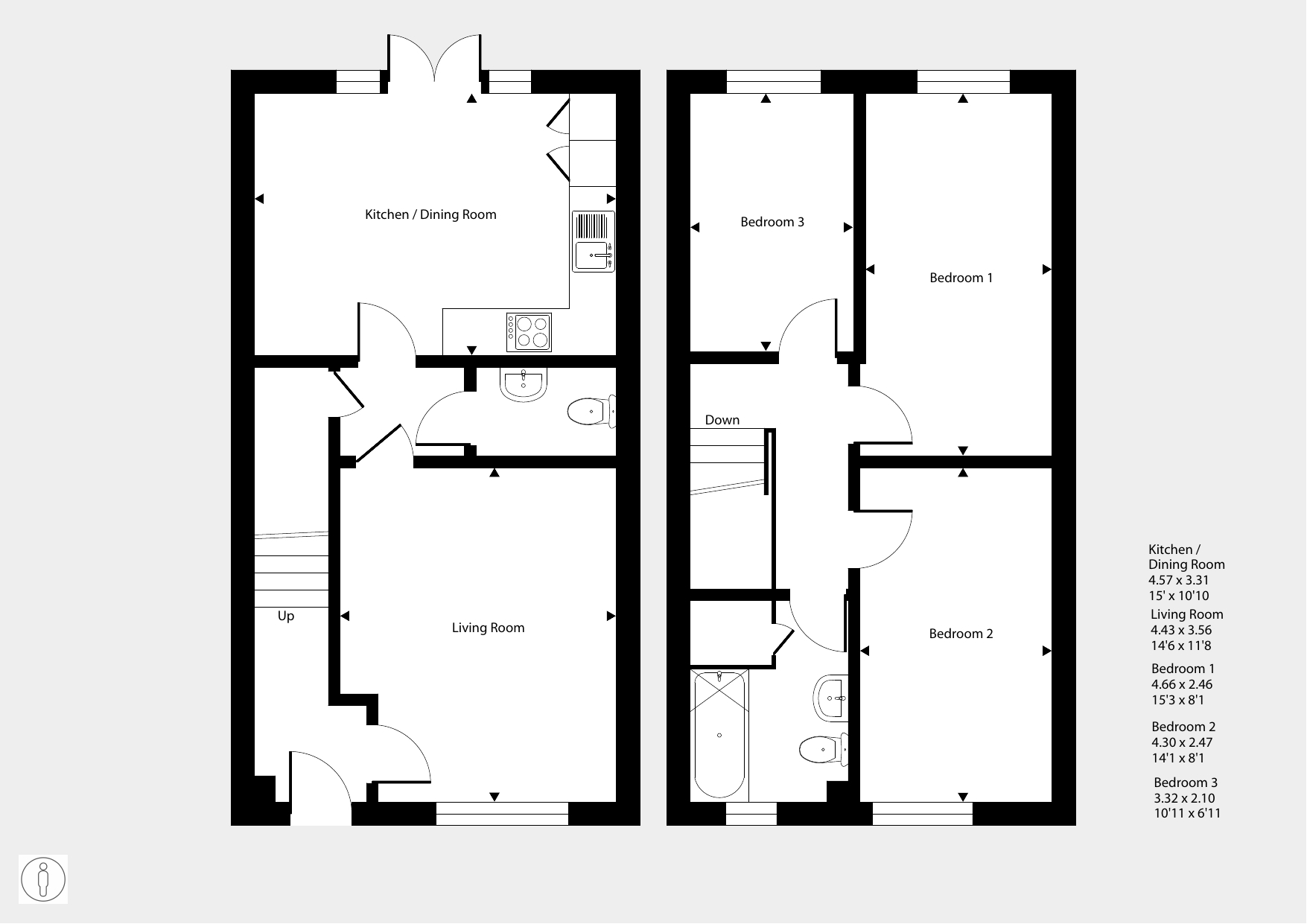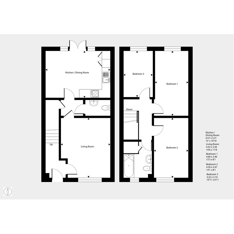 Upstairs, there are three comfortable bedrooms. The bathroom has a modern, white suite. Two parking spaces are provided, as well as your own back garden with a shed.