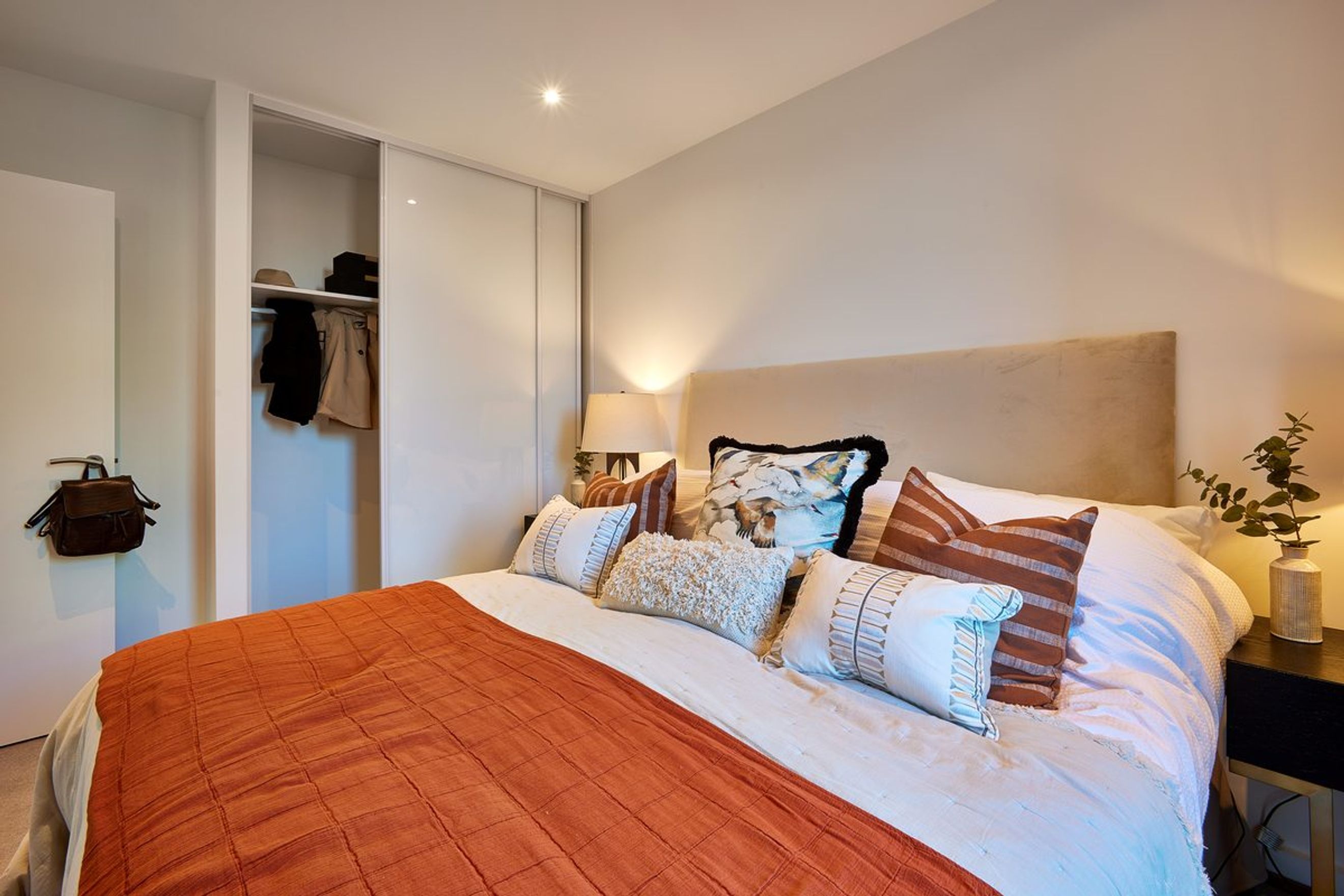 The bedroom is spacious and bright, and features a built-in sliding door wardrobe, providing plenty of storage.