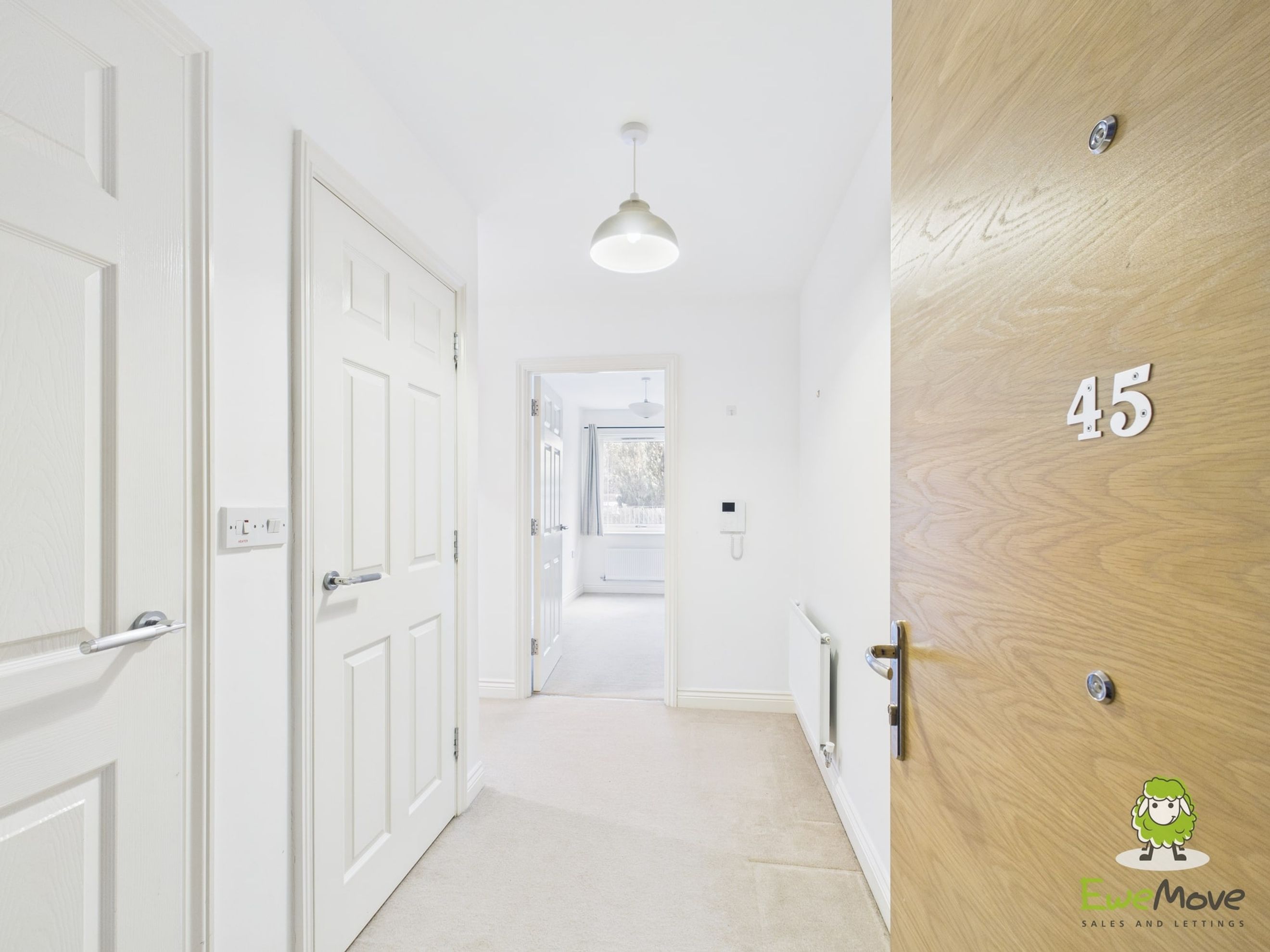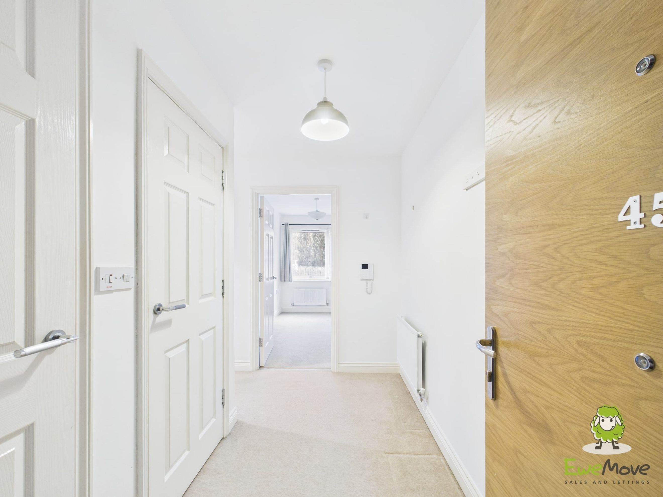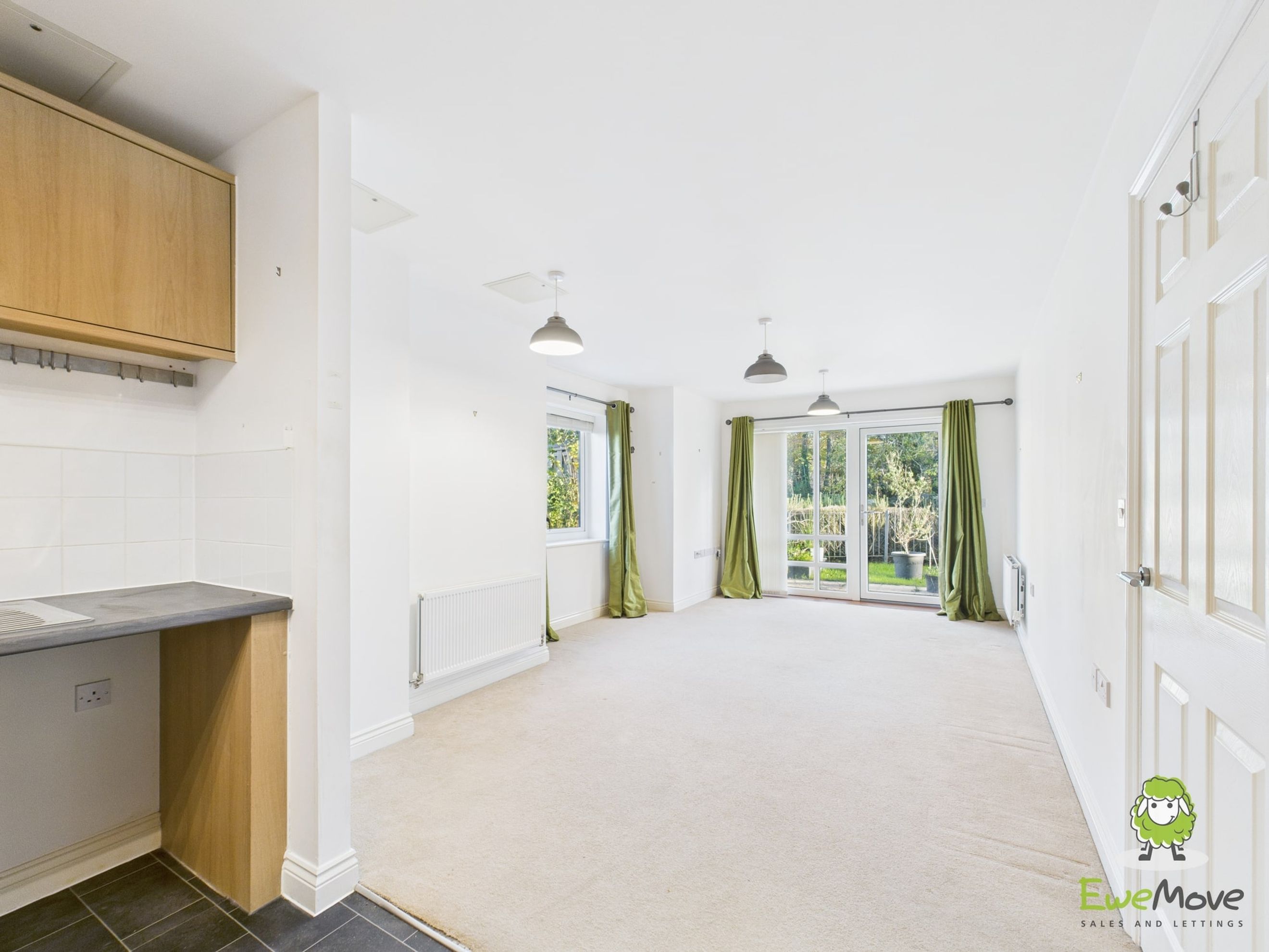 Natural light floods the interior through large windows and patio doors, creating a bright and welcoming atmosphere with views over the garden. The building benefits from a secure entry system and well-maintained communal facilities, including bin and bike stores. Externally, residents enjoy ample communal parking and landscaped shared grounds.