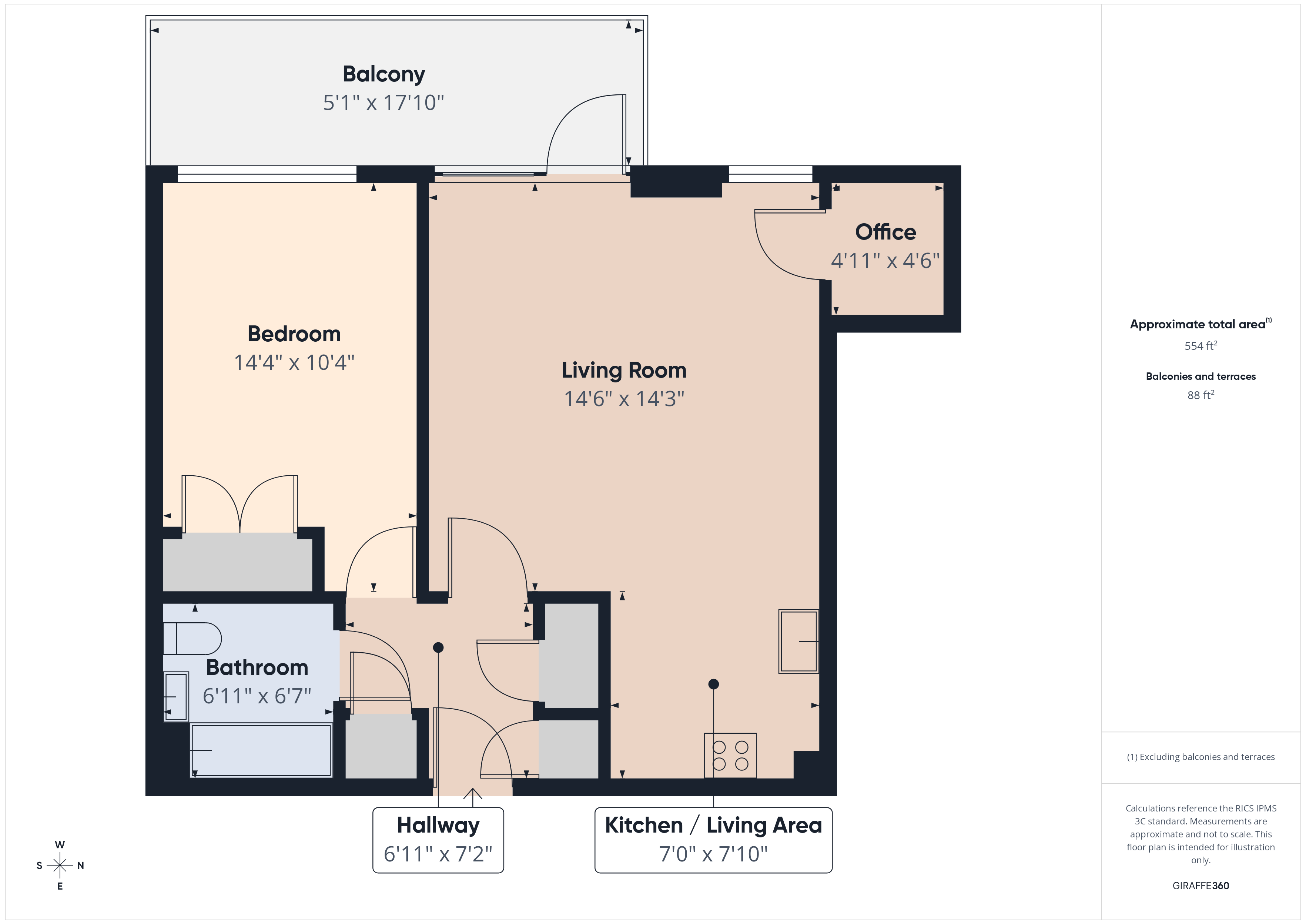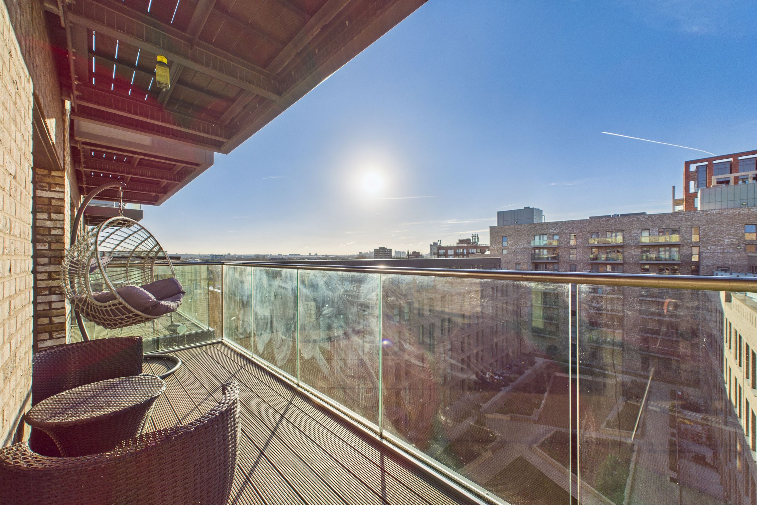 The property is located on the 7th floor of the building and has been tastefully decorated by the current owner. The apartment comprises a spacious open-plan living and kitchen area with access to the private balcony, which has far-reaching views.