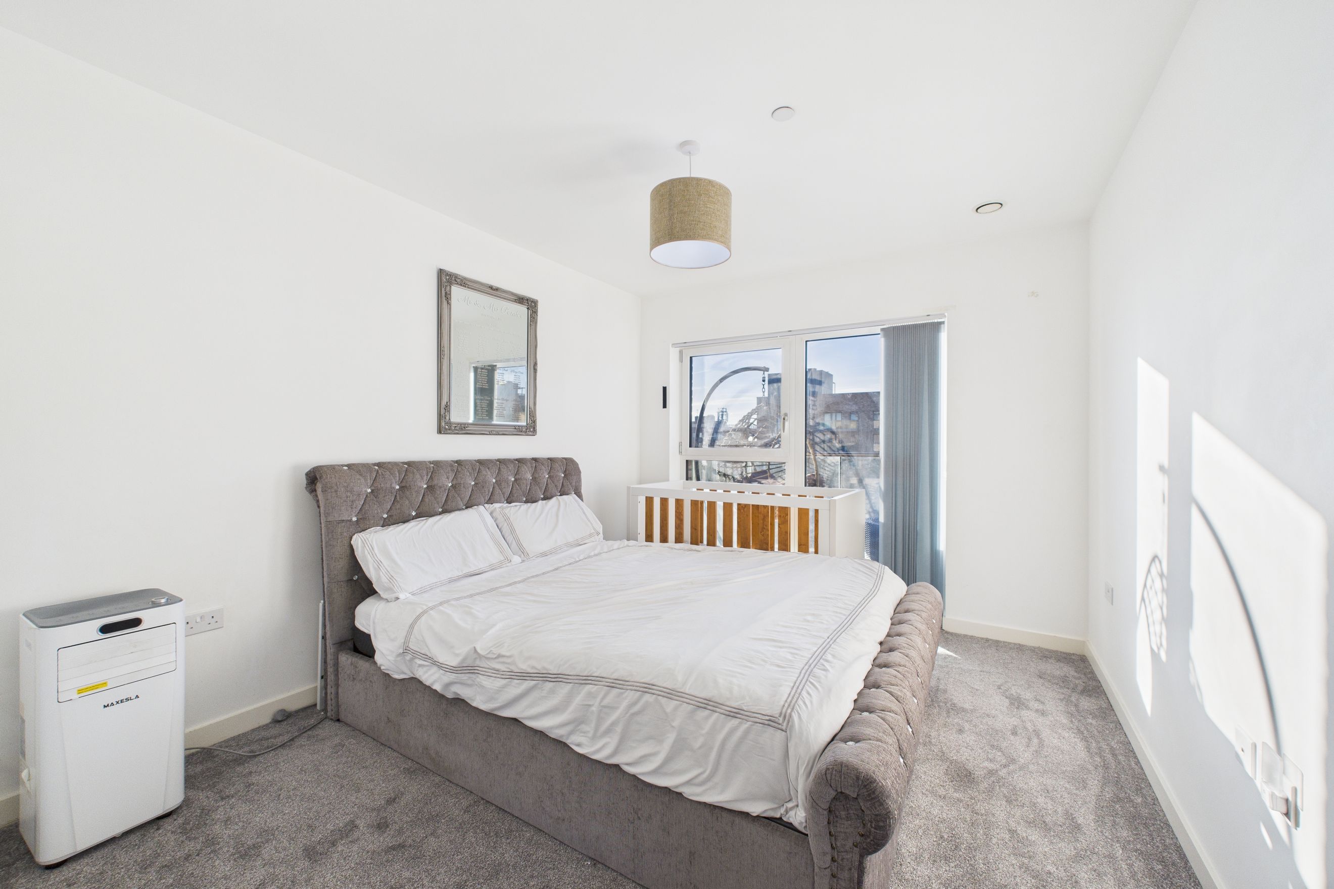 The bedroom is extremely spacious and has large windows to allow natural light in, plus the added benefit of a built-in wardrobe, which allows you to make the best use of the generous space that's available without worrying about wardrobe placement.